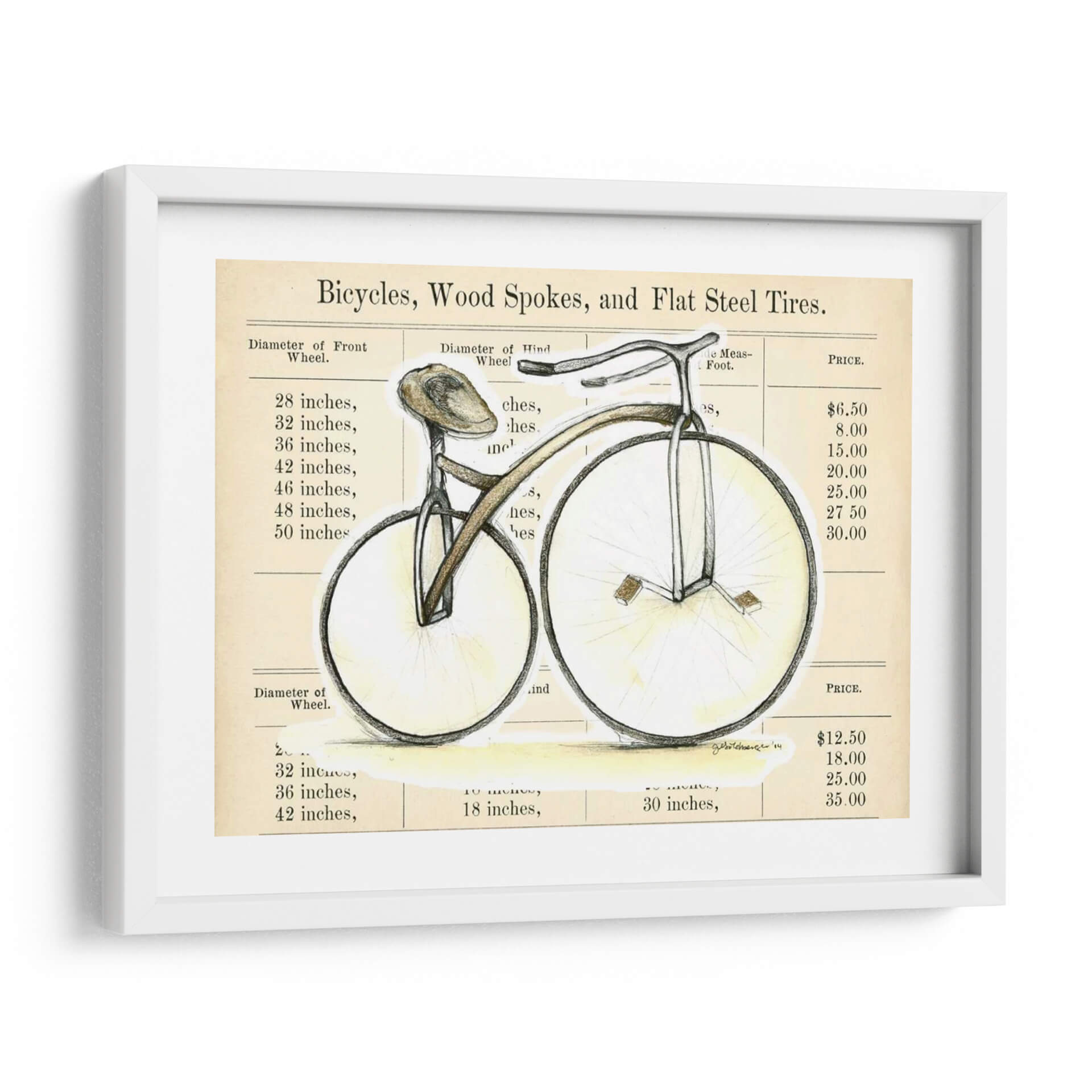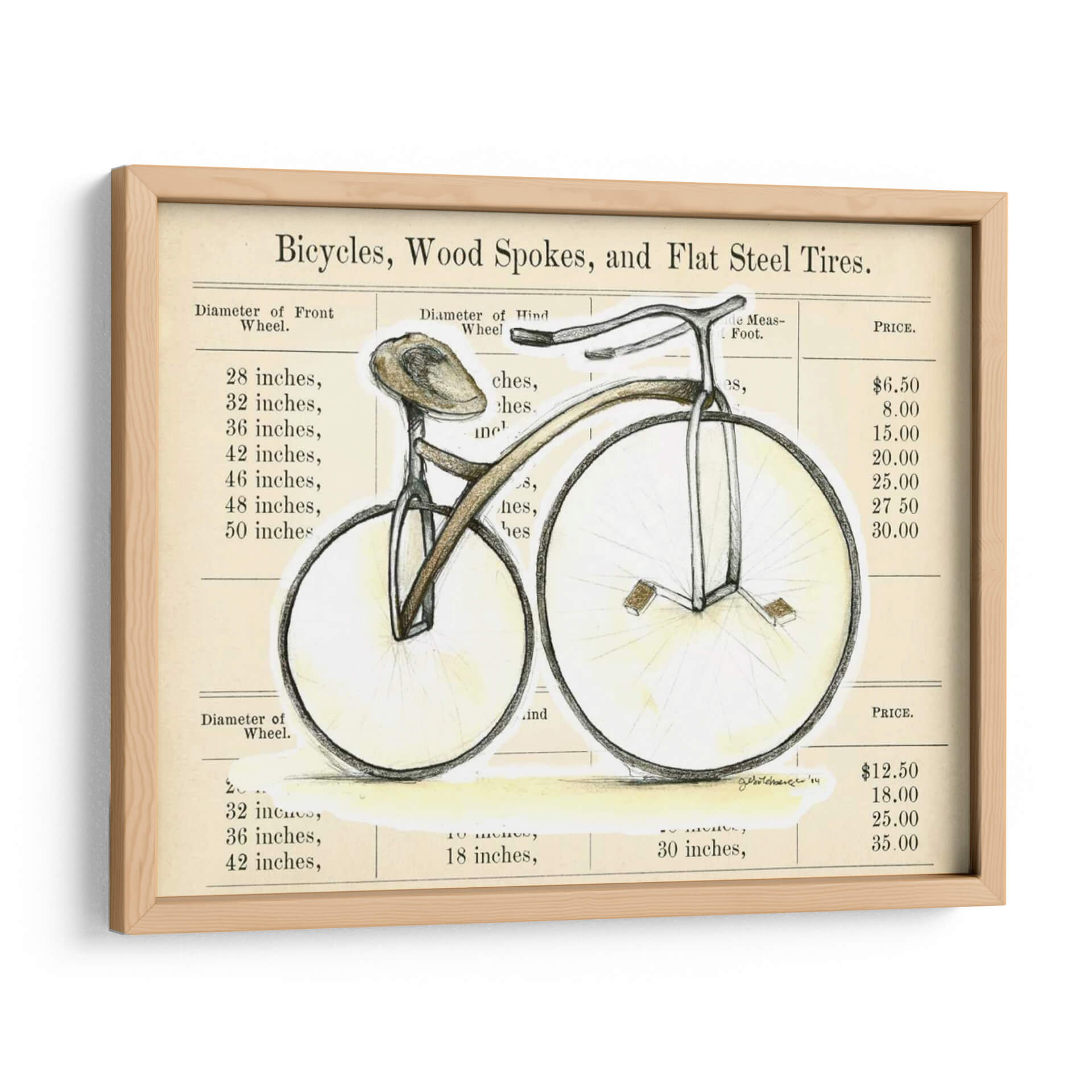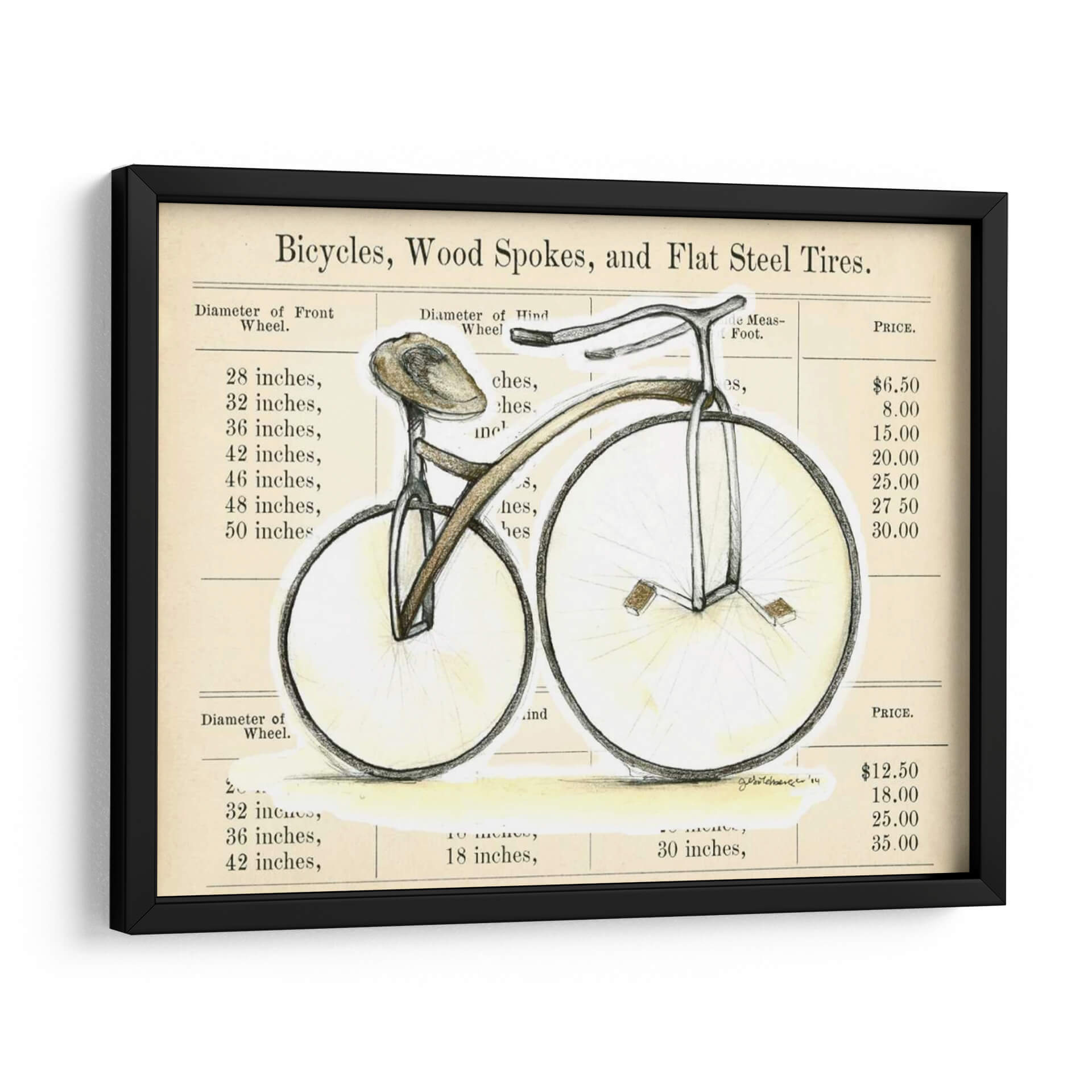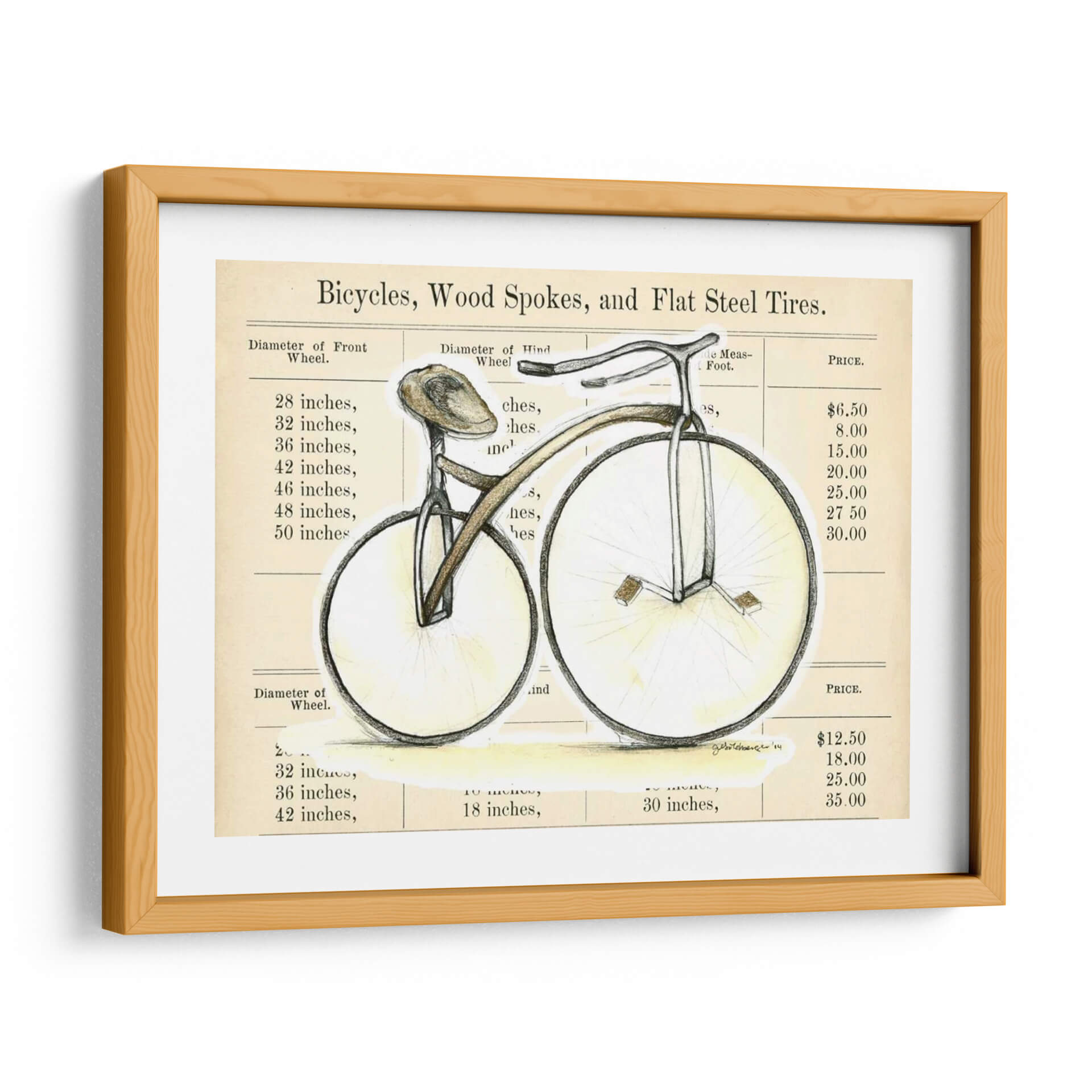 Revive la nostalgia y el encanto del pasado con "Vamos A Ir Por Un Giro Ii", una cautivadora obra de arte que celebra la historia de la bicicleta. Esta pieza, creada por Jennifer Goldberger, presenta una ilustración detallada de una bicicleta antigua sobre un fondo que imita páginas de catálogo vintage, completas con tablas de especificaciones y precios. La paleta de colores se centra en tonos sepia y ocres, aportando una calidez y autenticidad únicas a la composición. El estilo del dibujo, con trazos a mano alzada y sombreados sutiles, evoca una sensación de artesanía y atención al detalle. La obra transmite una atmósfera de sencillez, aventura y un toque de melancolía nostálgica. Es ideal para espacios que buscan un elemento de carácter histórico y un guiño a la ingeniería clásica, como una oficina en casa, un estudio o un salón con decoración retro o ecléctica. "Vamos A Ir Por Un Giro Ii" no es solo una imagen, sino una invitación a recordar tiempos más sencillos y la libertad que representaba el ciclismo. Añade un toque de historia y estilo a tu decoración con este cuadro decorativo único.