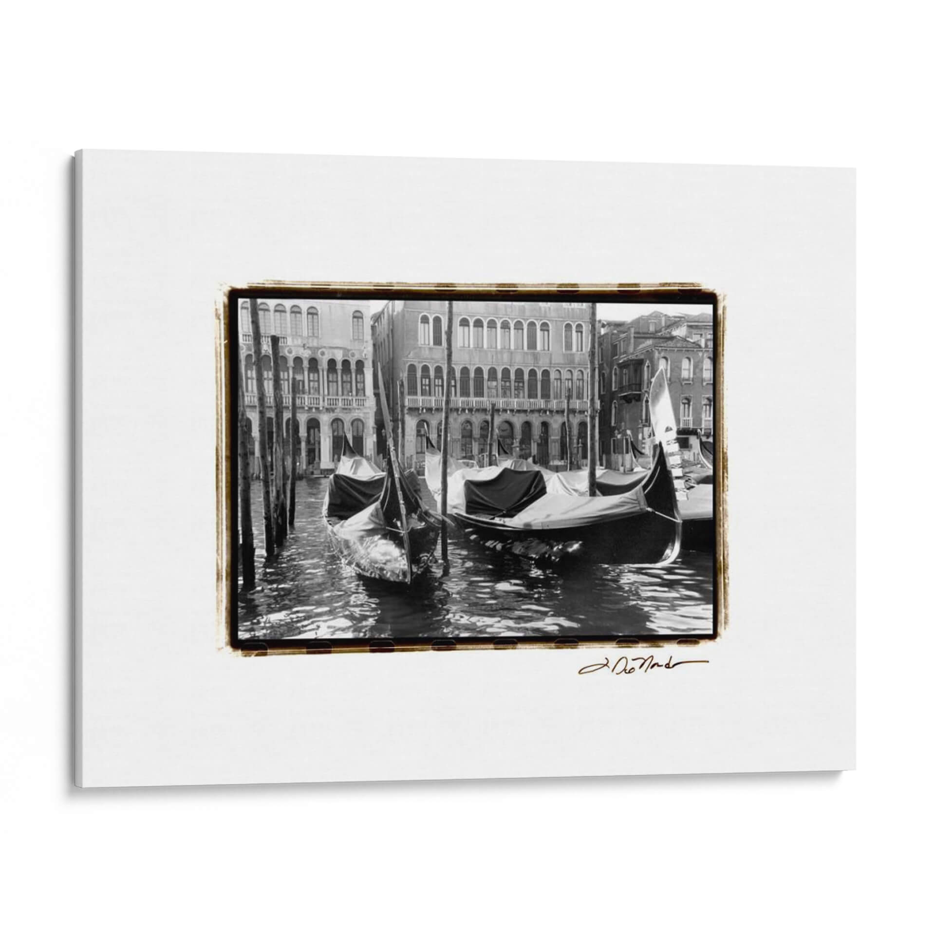 Sumérgete en la elegancia atemporal de Venecia con este evocador cuadro decorativo 'Vías Navegables De Venecia Xiv', una obra maestra capturada por la talentosa artista Laura DeNardo. Esta pieza en blanco y negro transporta al espectador a los icónicos canales de la ciudad, donde las góndolas reposan serenas junto a edificios históricos. La fotografía, con su estilo clásico y composición cuidada, resalta las texturas del agua, las estructuras arquitectónicas y la atmósfera melancólica y romántica que define a Venecia. Los tonos grises y negros crean un ambiente sofisticado y tranquilo, ideal para aquellos que buscan añadir un toque de serenidad y un guiño a la cultura italiana en sus hogares u oficinas. La presencia de las góndolas ancladas evoca una sensación de pausa y contemplación, invitando a soñar con paseos al atardecer. Este cuadro decorativo es perfecto para salones, estudios o recibidores que busquen un punto focal elegante y lleno de historia. Decora tu espacio con la magia inmutable de Venecia y permite que esta obra aporte una dosis de arte clásico y profundidad a tu decoración.