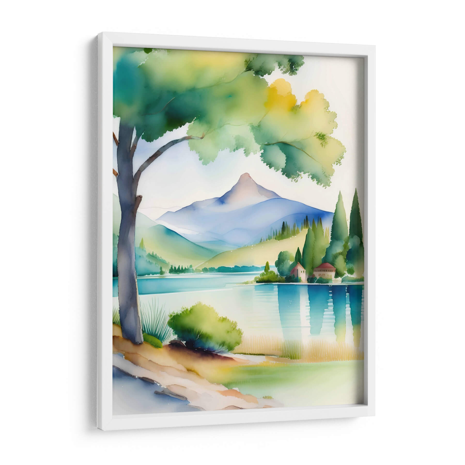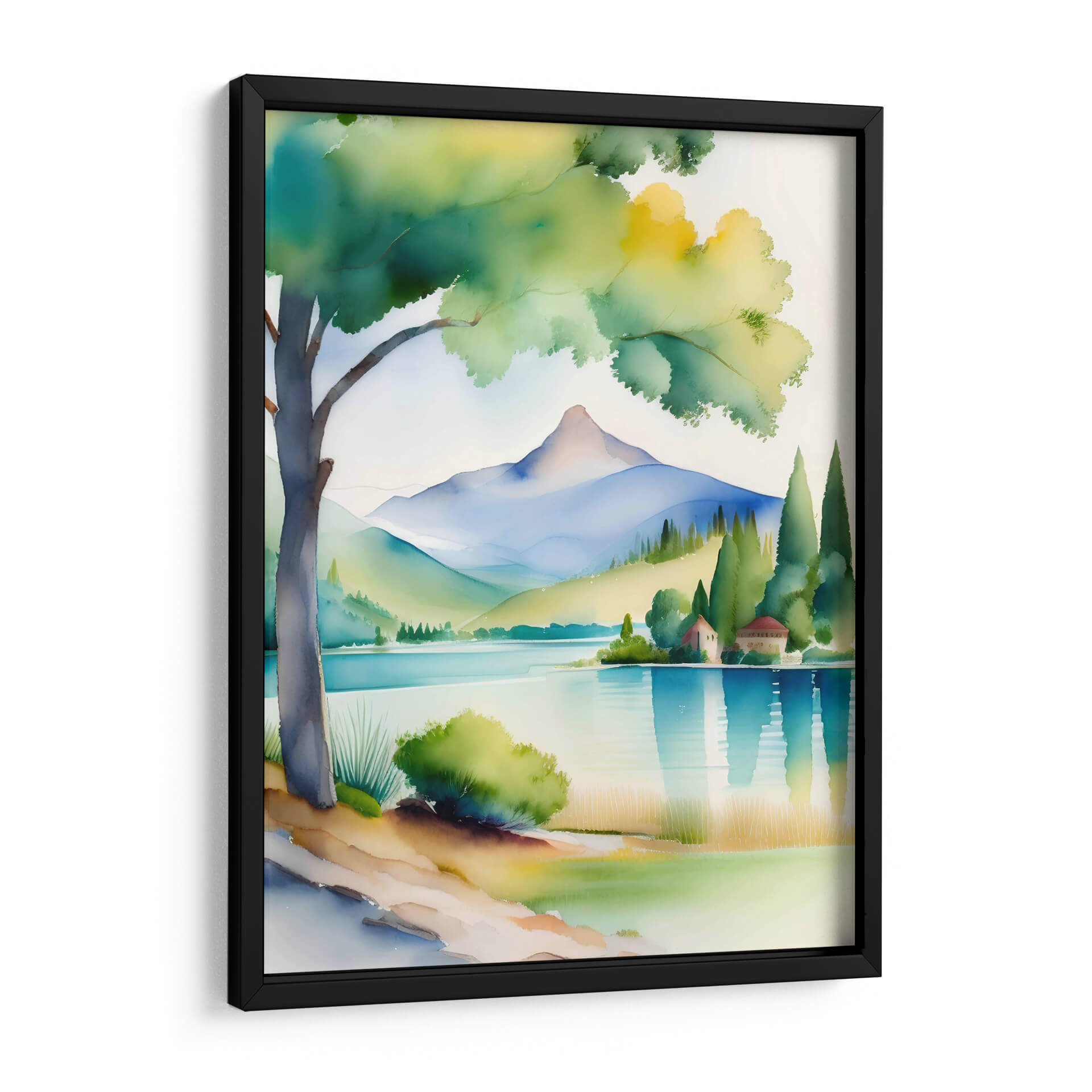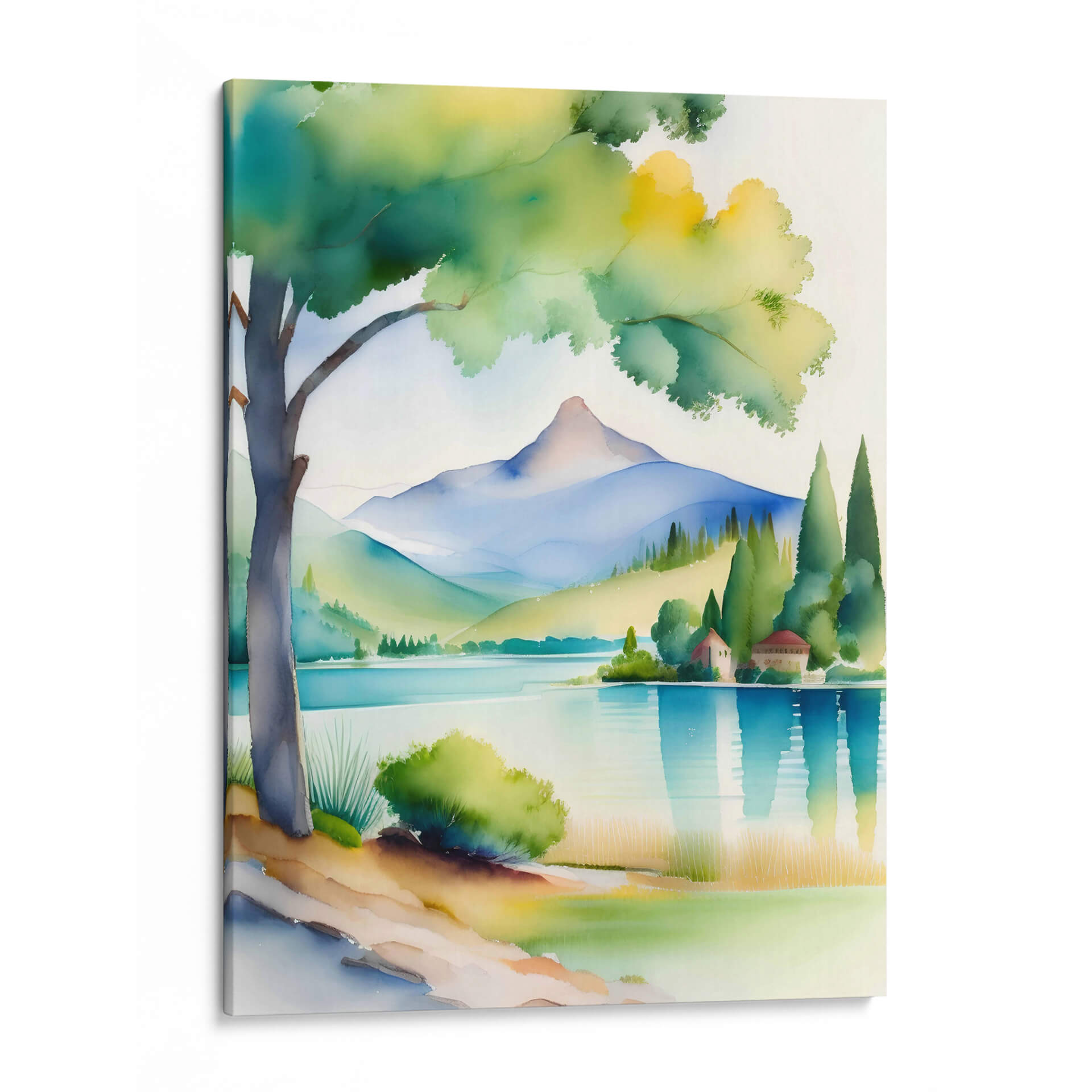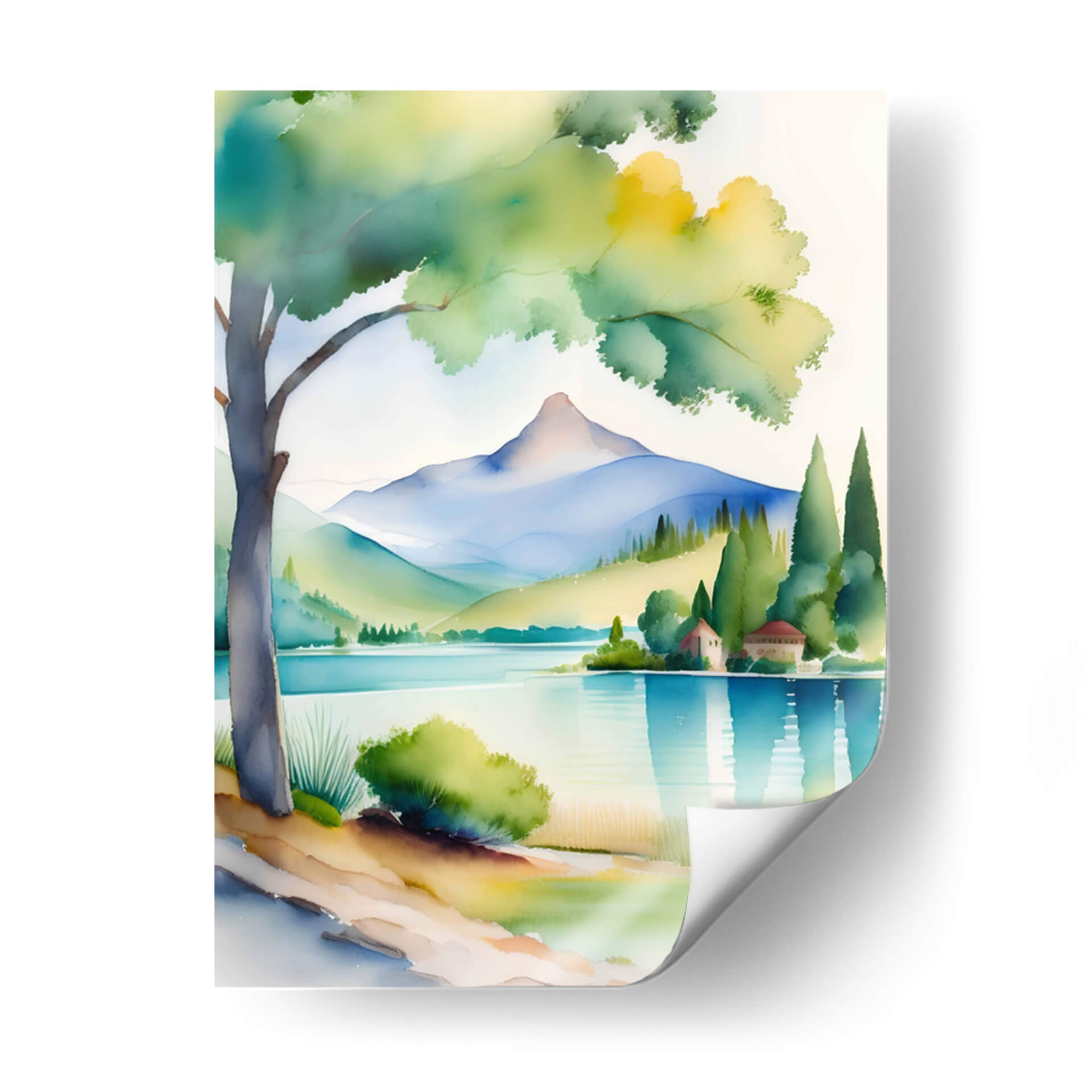Sumérgete en la serenidad de "Acuarela CAT 1105", una obra de arte digital que captura la esencia de un paisaje montañoso bañado por la luz. Con una paleta de colores vibrantes que va desde los tonos tierra cálidos hasta los azules profundos del agua, esta pieza evoca una sensación de calma y asombro. Las formas estilizadas de las montañas y el árbol solitario crean una composición armoniosa y moderna, que invita a la contemplación. Es un cuadro decorativo ideal para añadir un toque de naturaleza y arte contemporáneo a tu hogar u oficina, transformando cualquier espacio en un refugio de paz y belleza. La técnica, que simula la delicadeza de la acuarela con un toque digital, aporta una textura visual única, haciendo que cada detalle resalte. "Acuarela CAT 1105" no es solo una decoración, es una ventana a un mundo de tranquilidad y color, perfecta para quienes buscan piezas que inspiren y armonicen su entorno. Añade esta joya artística a tu colección y siente la energía revitalizante de un paisaje onírico en tus paredes.