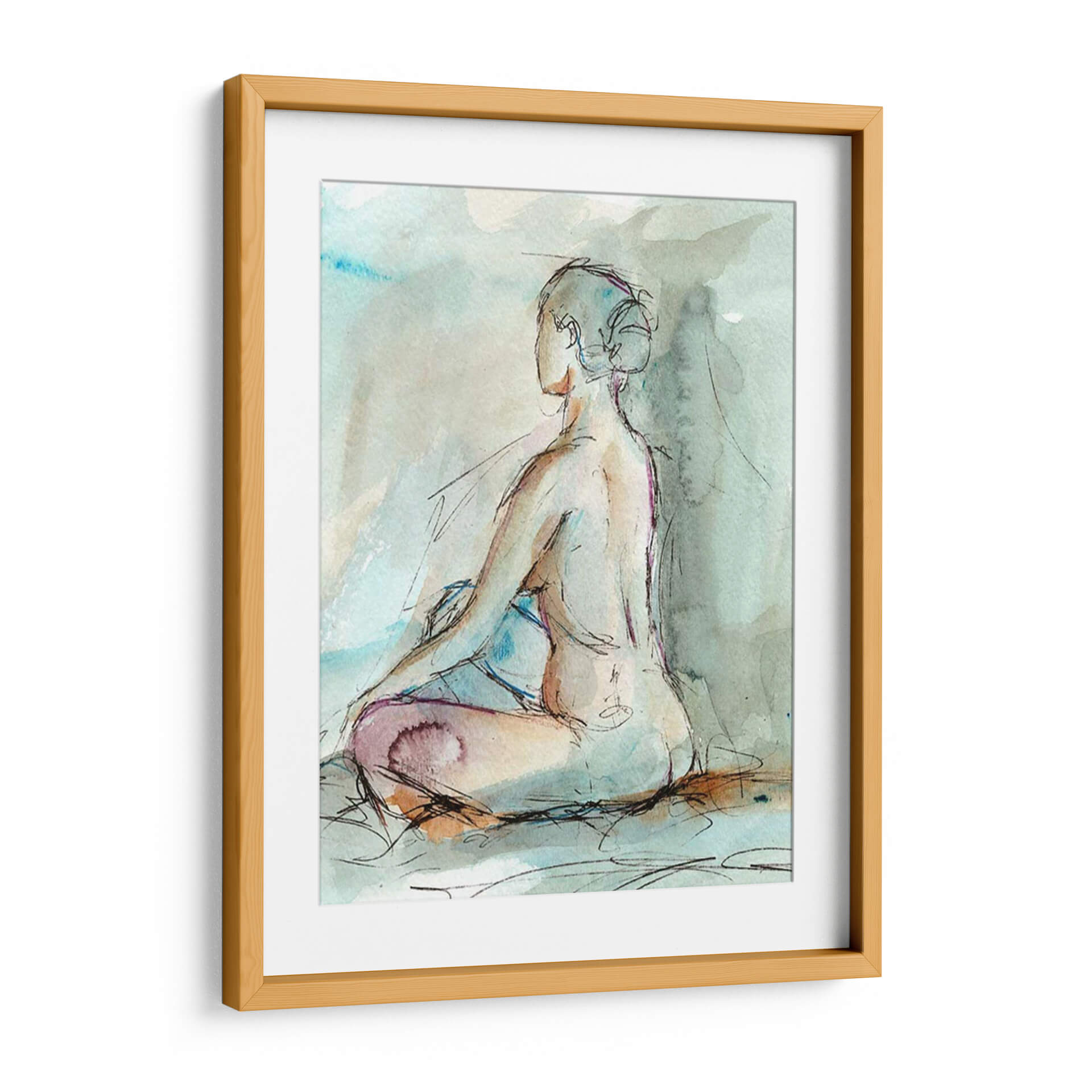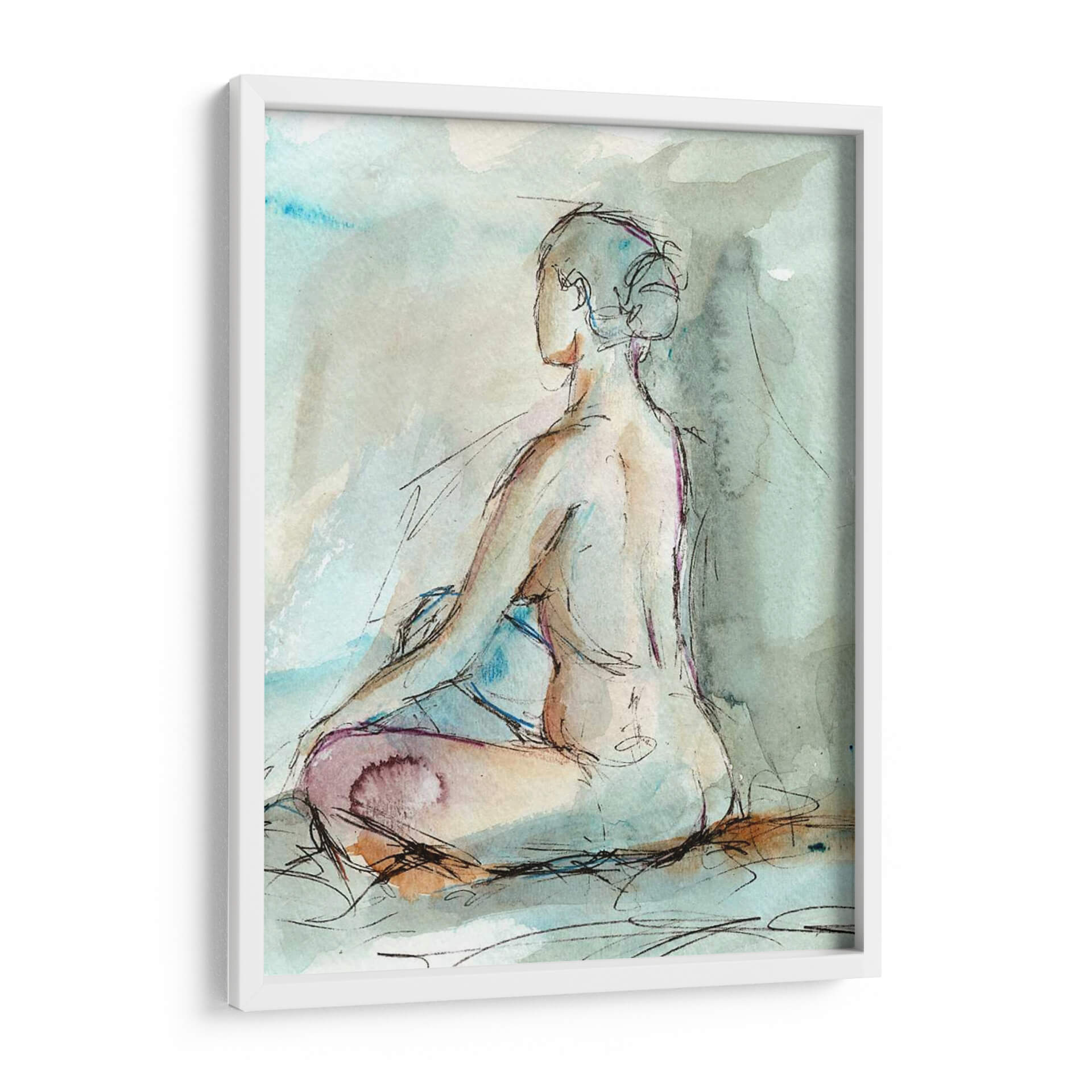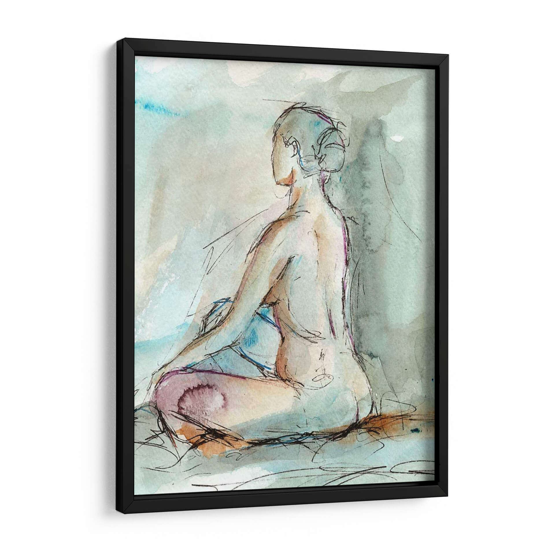 Sumérgete en la serenidad y la introspección con "Acuarela Gesto Estudio II", una obra de arte contemporáneo de Ethan Harper. Este cuadro decorativo captura la delicadeza de la figura humana en una pose meditativa, utilizando trazos de acuarela fluidos y expresivos que evocan una sensación de calma y contemplación. La paleta de colores suaves, dominada por tonos aguamarina, tierra y toques de púrpura, crea una atmósfera etérea y relajante, ideal para cualquier espacio que busque un refugio de paz. Las líneas de boceto, finas y precisas, añaden un toque dinámico y moderno, contrastando maravillosamente con la suavidad de la acuarela. Perfecto para tu dormitorio, estudio o cualquier rincón donde desees fomentar la tranquilidad y la reflexión, este cuadro decorativo es una invitación a la pausa y al autoconocimiento. Añade una pieza de arte que no solo embellezca tu hogar, sino que también inspire momentos de serenidad en tu día a día.
