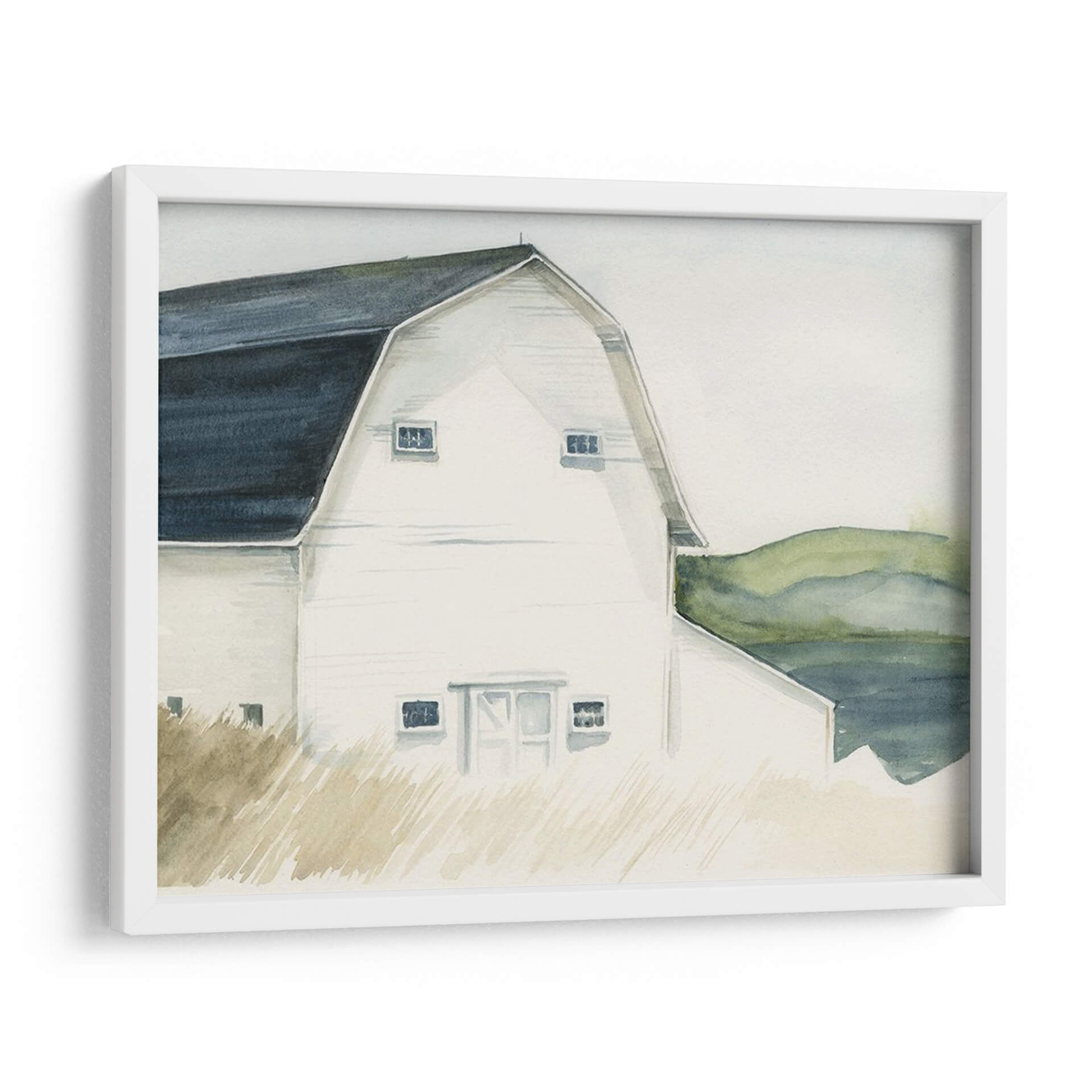 Este cuadro decorativo "Acuarela Granero IV" de Jennifer Paxton Parker captura la serenidad de un paisaje rural con un estilo impresionista suave y evocador. La obra presenta un granero blanco como elemento central, destacando su arquitectura sencilla contra un fondo de colinas verdes y un cielo despejado. La paleta de colores, dominada por blancos, azules tenues, verdes apagados y toques de ocre, crea una atmósfera de tranquilidad y nostalgia. Las pinceladas sueltas y la técnica de acuarela aportan una ligereza etérea a la composición, invitando a la contemplación. Es una pieza ideal para añadir un toque de calma y belleza natural a salones, dormitorios o estudios, combinando perfectamente con decoraciones rústicas, costeras o contemporáneas que buscan un aire de sencillez y armonía. Descubre la belleza atemporal del campo y la maestría de Parker en esta cautivadora obra de arte.