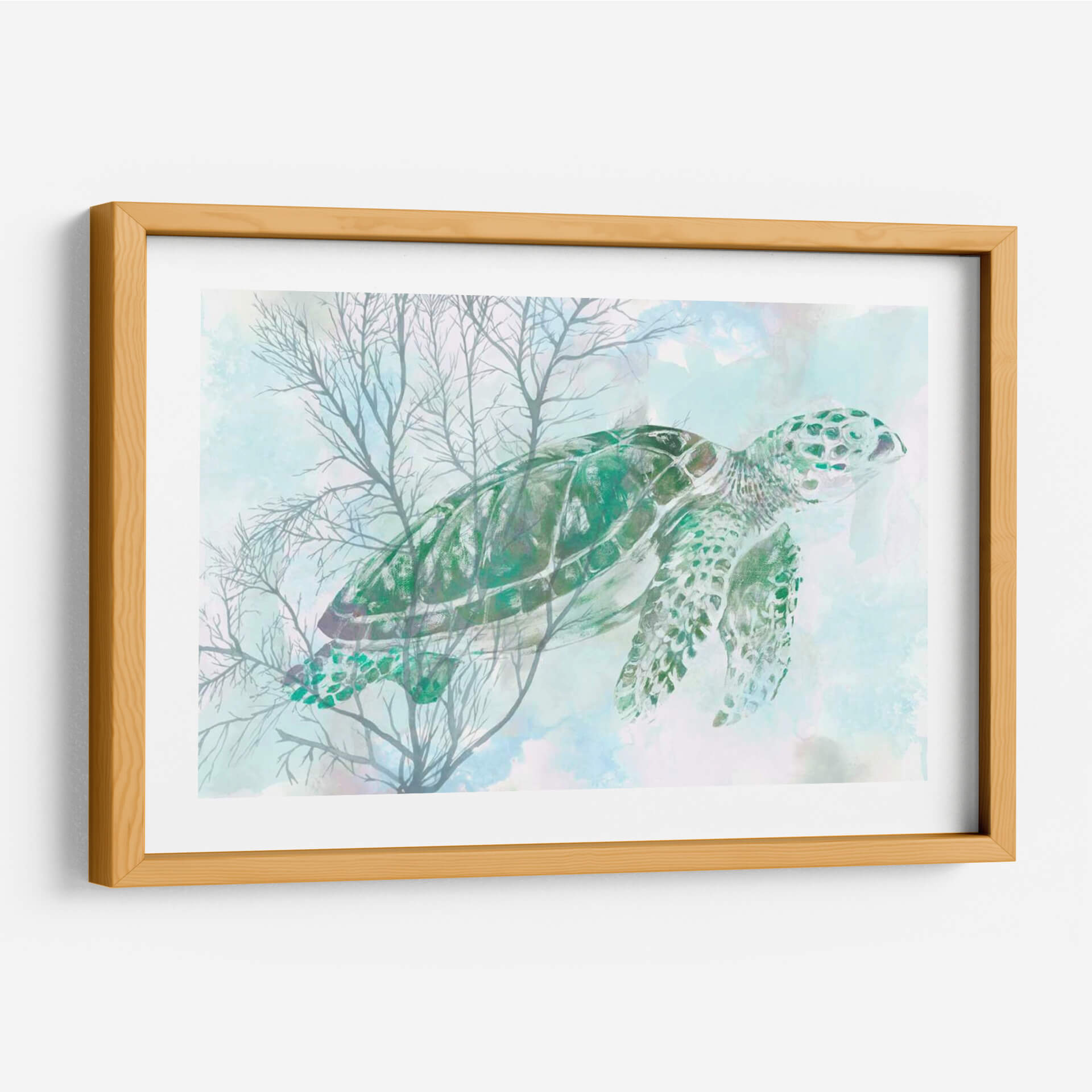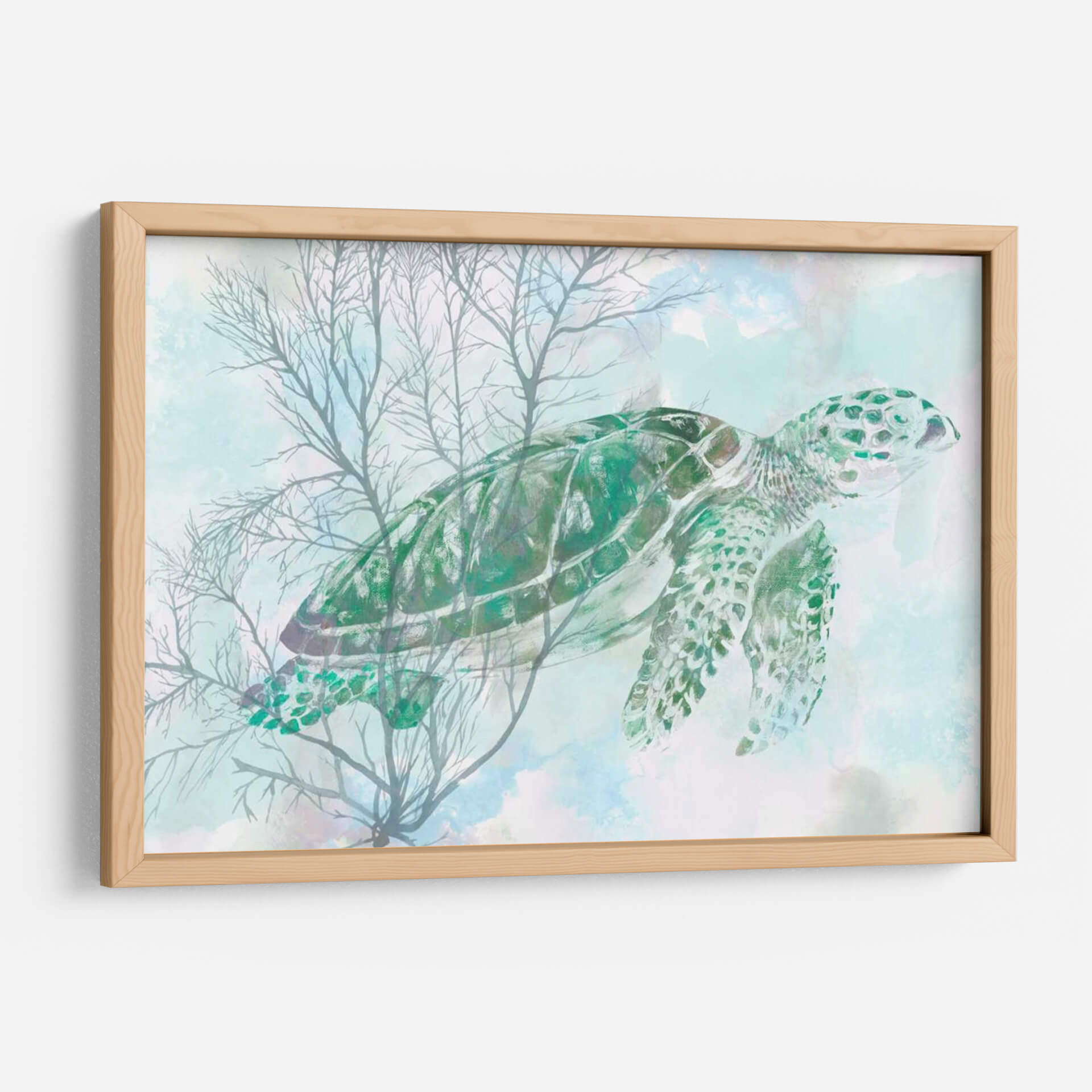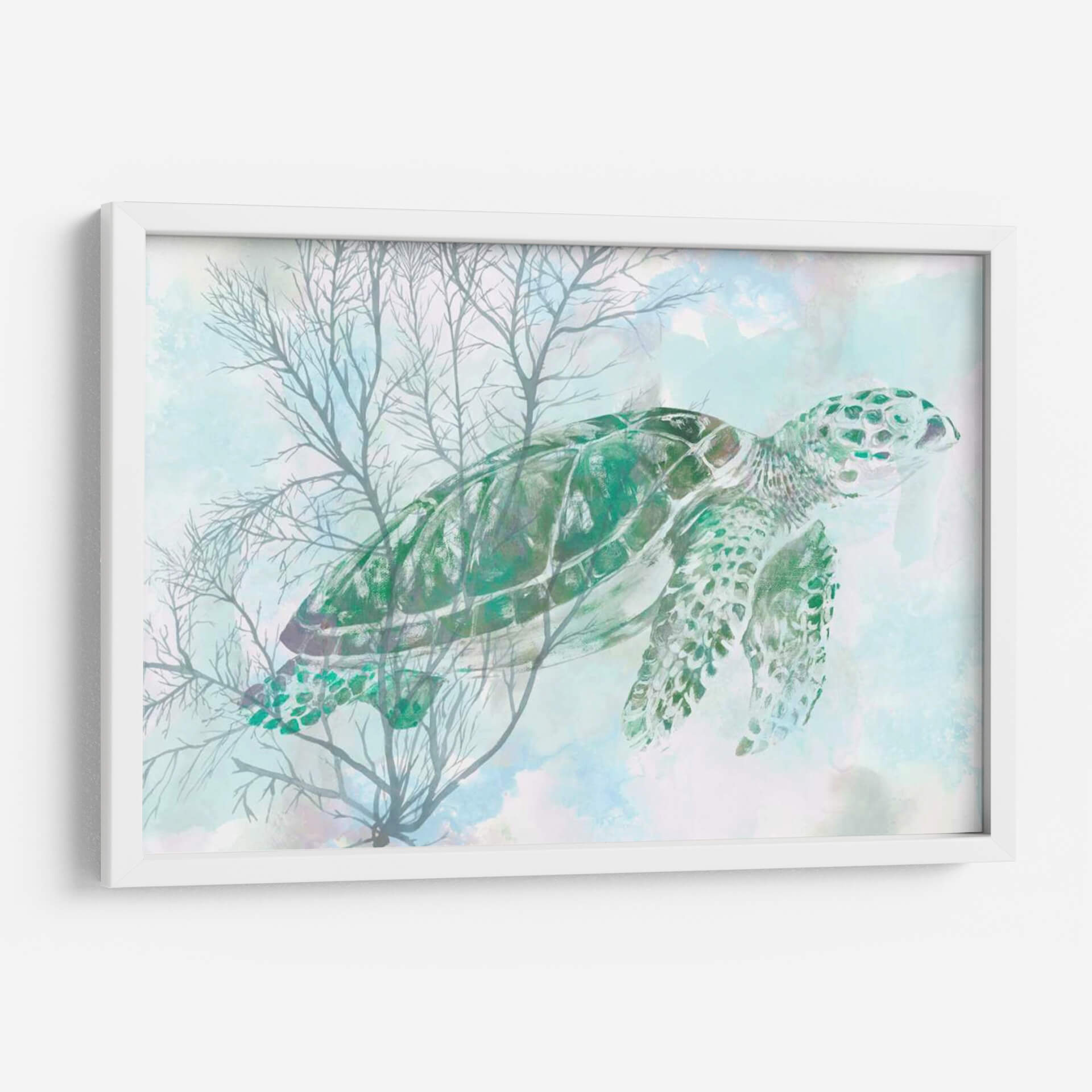Sumérgete en la serenidad del océano con "Acuarela Tortuga Mari I", una obra de arte de Studio W que captura la majestuosidad de una tortuga marina navegando a través de delicadas algas marinas. La paleta de colores, dominada por tonos etéreos de azul y verde aguamarina, evoca una sensación de calma y tranquilidad, transportando al espectador a las profundidades pacíficas del mar. El estilo acuarela aporta una suavidad y fluidez únicas a la composición, con pinceladas que sugieren movimiento y la transparencia del agua. Las ramas de coral o algas, representadas en un gris suave y translúcido, crean un contraste sutil pero efectivo con la vibrante tortuga verde. Esta pieza es ideal para añadir un toque de naturaleza inspirada en el mar a tu hogar u oficina, perfecta para crear un ambiente relajante en dormitorios, baños o salones. "Acuarela Tortuga Mari I" no es solo una decoración, sino una ventana a la paz submarina, un recordatorio visual de la belleza y la calma que ofrece el mundo marino. Su diseño contemporáneo y evocador la convierte en una adición versátil y hermosa para cualquier espacio que busque un refugio de serenidad y estilo.