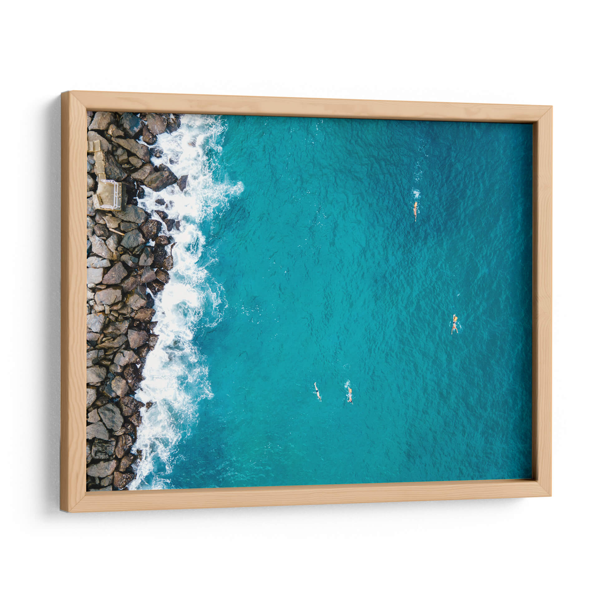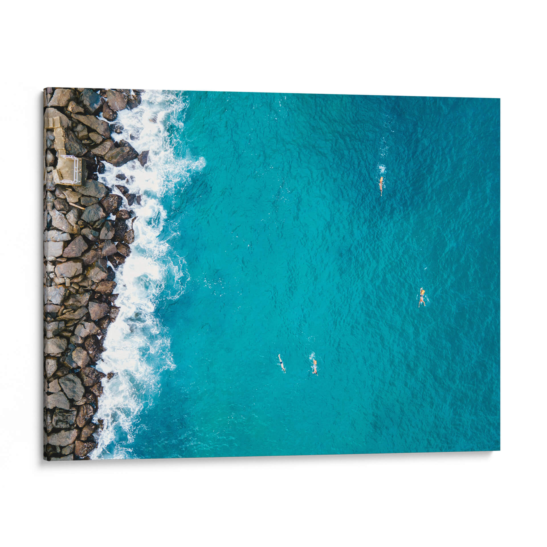 Sumérgete en la serenidad y la inmensidad del océano con "Aguas Abiertas", una obra de arte que captura la esencia de la libertad y la conexión con la naturaleza. Desde una perspectiva aérea que revela el vasto y vibrante azul turquesa del mar, este cuadro decorativo transporta al espectador a un estado de calma y contemplación. Las olas rompen suavemente contra una formación rocosa texturizada, añadiendo un contraste dinámico y natural que evoca la fuerza y la belleza del litoral. La presencia de nadadores solitarios en la distancia sugiere una profunda introspección y un espíritu aventurero, invitando a la reflexión sobre los propios desafíos y la búsqueda de paz interior. La paleta de colores, dominada por el azul profundo y los tonos terrosos de las rocas, crea una atmósfera relajante y sofisticada, ideal para cualquier espacio que busque un toque de tranquilidad y elegancia. "Aguas Abiertas" no es solo una pieza decorativa, sino una invitación a desconectar del bullicio diario y encontrar tu propio espacio de paz. Perfecta para salas de estar, dormitorios o cualquier rincón que desees transformar en un oasis de serenidad, esta obra resonará con amantes del mar, la aventura y el arte contemporáneo que busca la armonía.