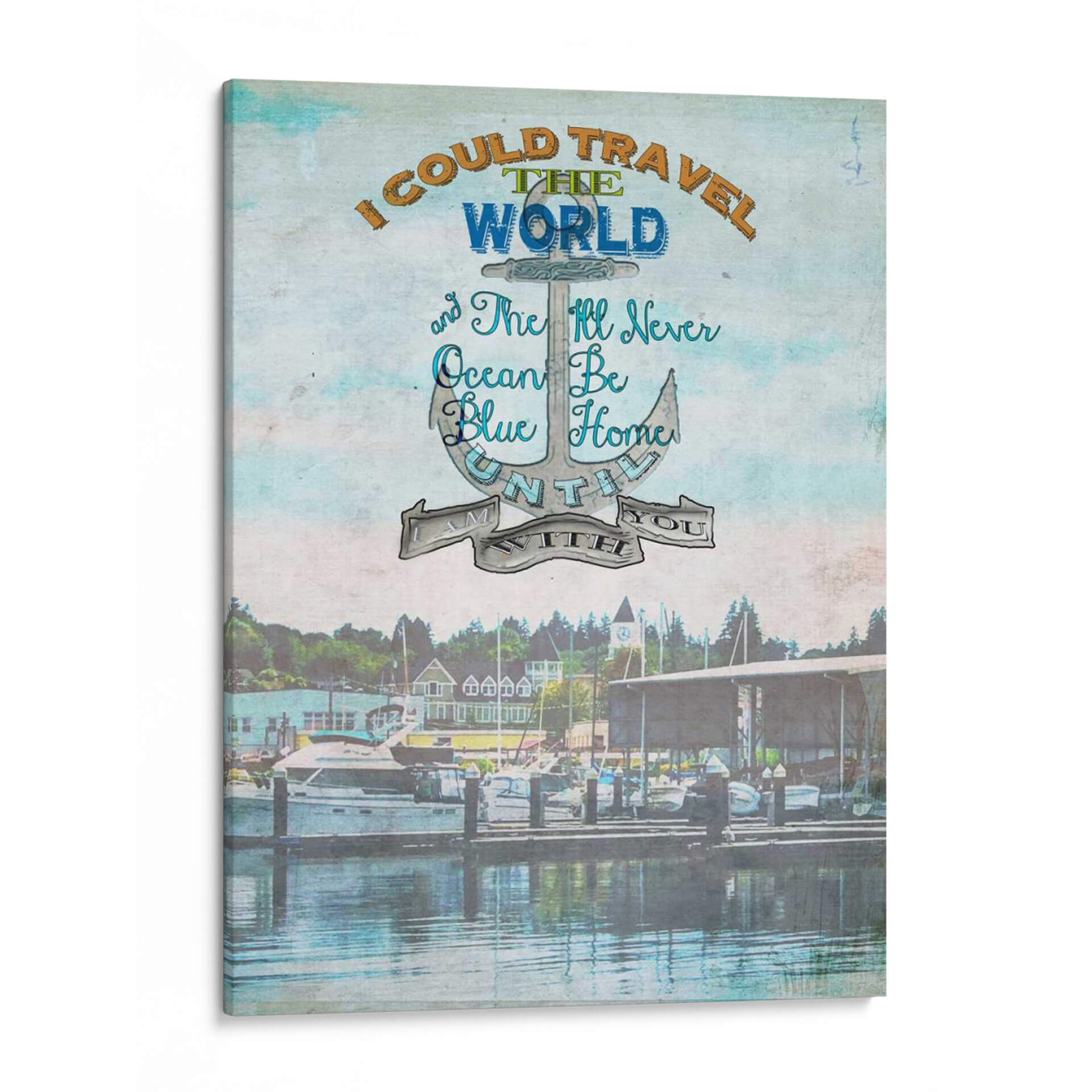 Sumérgete en la serenidad y el espíritu aventurero con "Anclado", una obra de arte de Sandy Lloyd que captura la esencia del viaje y el regreso al hogar. Esta pieza evoca una profunda sensación de anhelo y pertenencia, combinando una escena portuaria vibrante con un mensaje inspirador. Los tonos celestes y azules profundos del océano se fusionan con los detalles cálidos de las edificaciones costeras y los barcos atracados, creando una atmósfera nostálgica y a la vez esperanzadora. El ancla, símbolo de estabilidad y seguridad, se entrelaza con la frase "I Could Travel the World and the Il Never Ocean Be Blue Home Until I Am With You", invitando a la reflexión sobre la dualidad entre la exploración y la conexión. Ideal para espacios que buscan un toque de calma marítima y un recordatorio de los lazos que nos unen, este cuadro decorativo se convierte en un punto focal que despierta conversaciones y emociones. Añade un aire de sofisticación costera y un mensaje de amor duradero a tu sala de estar, dormitorio u oficina con este lienzo único que combina arte visual y resonancia emocional.
