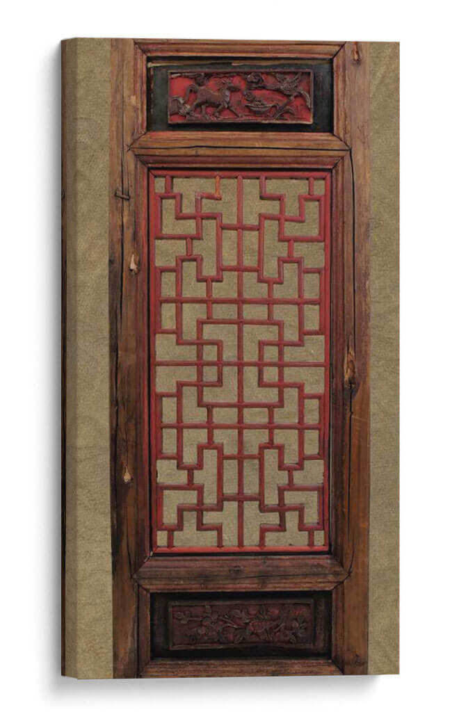 Sumérgete en la elegancia atemporal con "Antique Shoji Screen III", una obra de arte que evoca la sofisticación de las pantallas tradicionales japonesas. Este cuadro decorativo presenta un intrincado diseño de celosía en tonos rojos vibrantes, enmarcado por la rica textura de madera envejecida. La composición geométrica y simétrica invita a la contemplación, creando una atmósfera de serenidad y orden en cualquier espacio. El fondo sutilmente texturizado añade profundidad, mientras que los detalles tallados en la madera, sutiles pero expresivos, sugieren una historia ancestral. Ideal para quienes buscan infundir un toque de tradición y refinamiento oriental en su hogar u oficina, esta pieza es perfecta para salones, comedores o estudios que desean un punto focal distintivo. Transforma tu ambiente con la belleza serena y el diseño cautivador de esta pieza única, que combina elementos clásicos con un atractivo contemporáneo, aportando calidez y carácter a tu decoración.