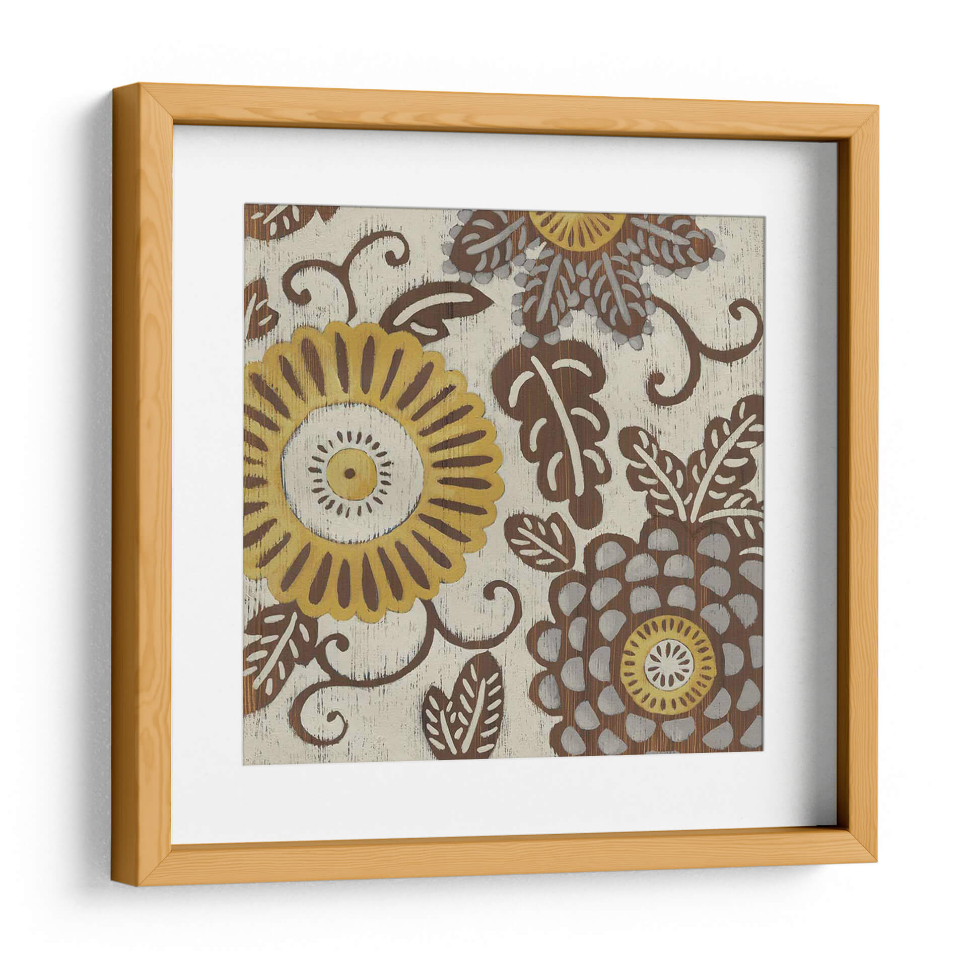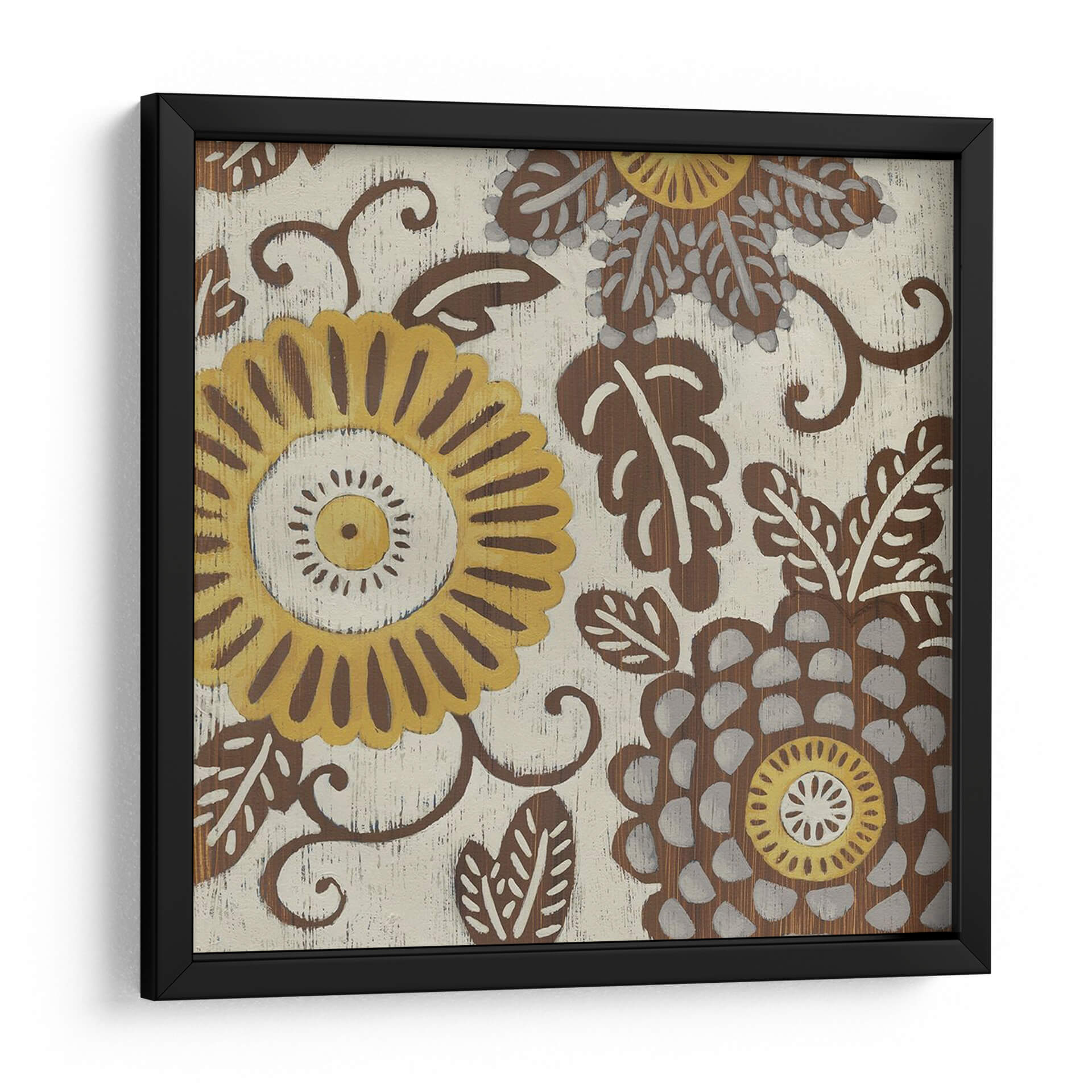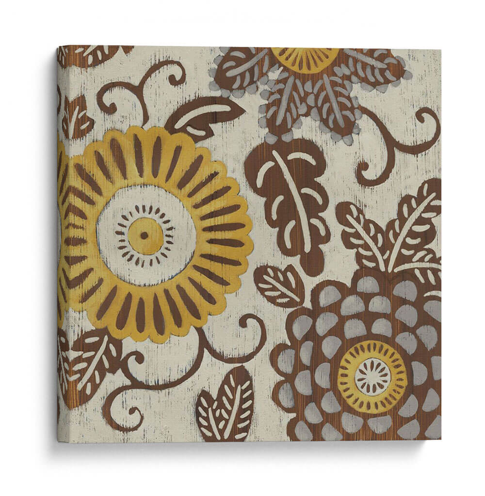 Embellece tu espacio con el cautivador cuadro decorativo 'Array De Oro I', una obra maestra de Chariklia Zarris. Esta pieza evoca una sensación de calidez y sofisticación con su vibrante paleta de colores tierra y dorados, magistralmente aplicados sobre un fondo texturizado que recuerda a la madera rústica. La composición presenta un patrón floral estilizado y abstracto, donde las formas orgánicas de las flores y las hojas se entrelazan con delicados zarcillos, creando un diseño dinámico y a la vez armonioso. Los tonos ocres, marrones profundos y grises suaves se combinan para generar una atmósfera acogedora y elegante, perfecta para añadir un toque de naturaleza y arte contemporáneo a cualquier habitación. Ideal para salones, comedores o incluso espacios de oficina que busquen un acento decorativo único y con carácter. Este cuadro decorativo no solo es una adición estética, sino también una expresión de arte que invita a la contemplación y al disfrute visual, transformando cualquier pared en un punto focal de interés. Descubre la belleza atemporal de 'Array De Oro I' y dale vida a tu hogar.