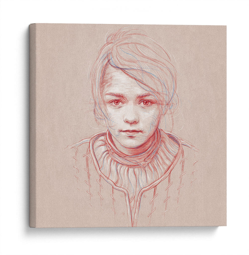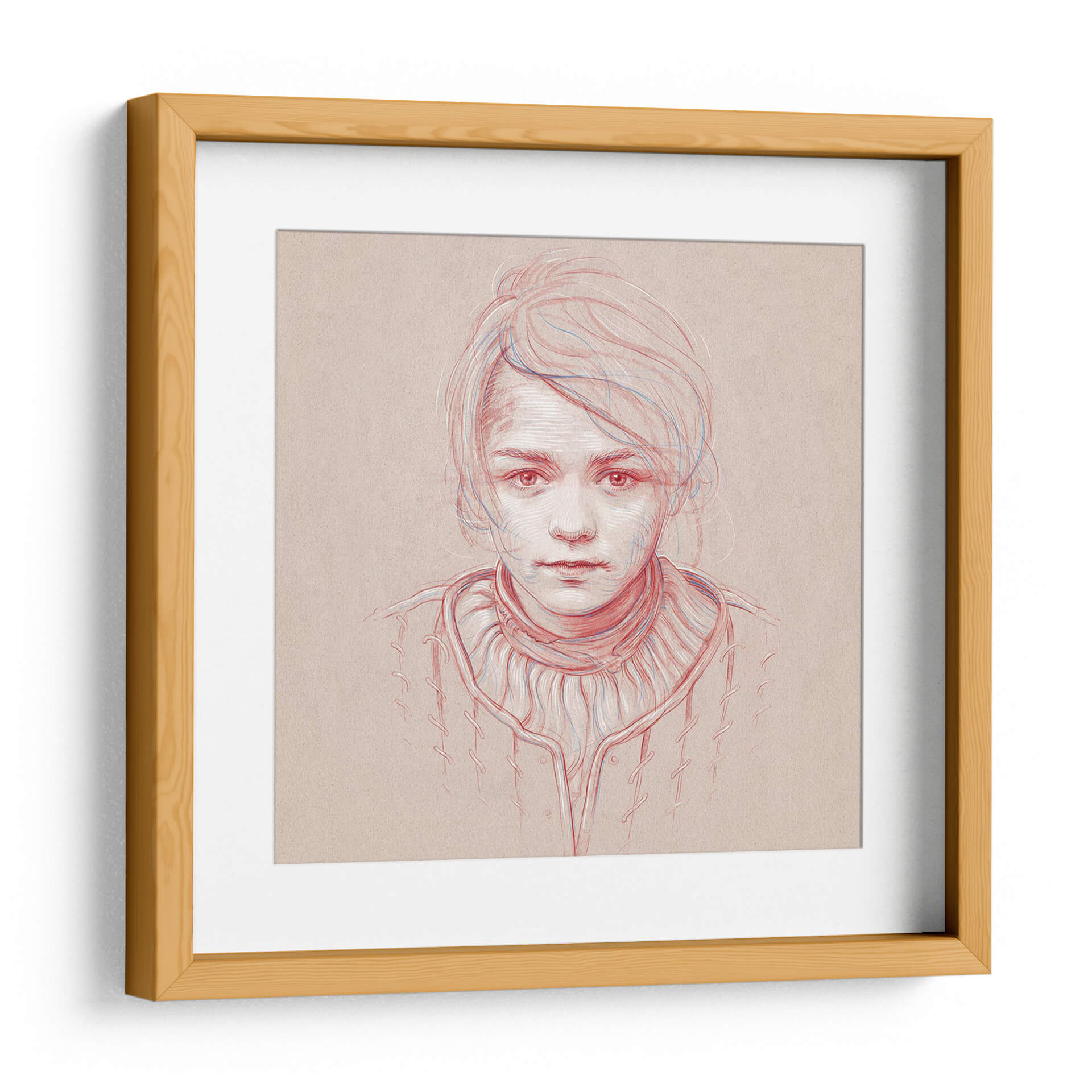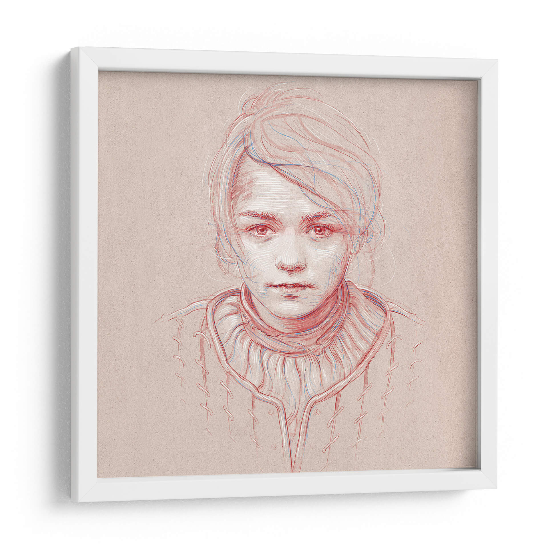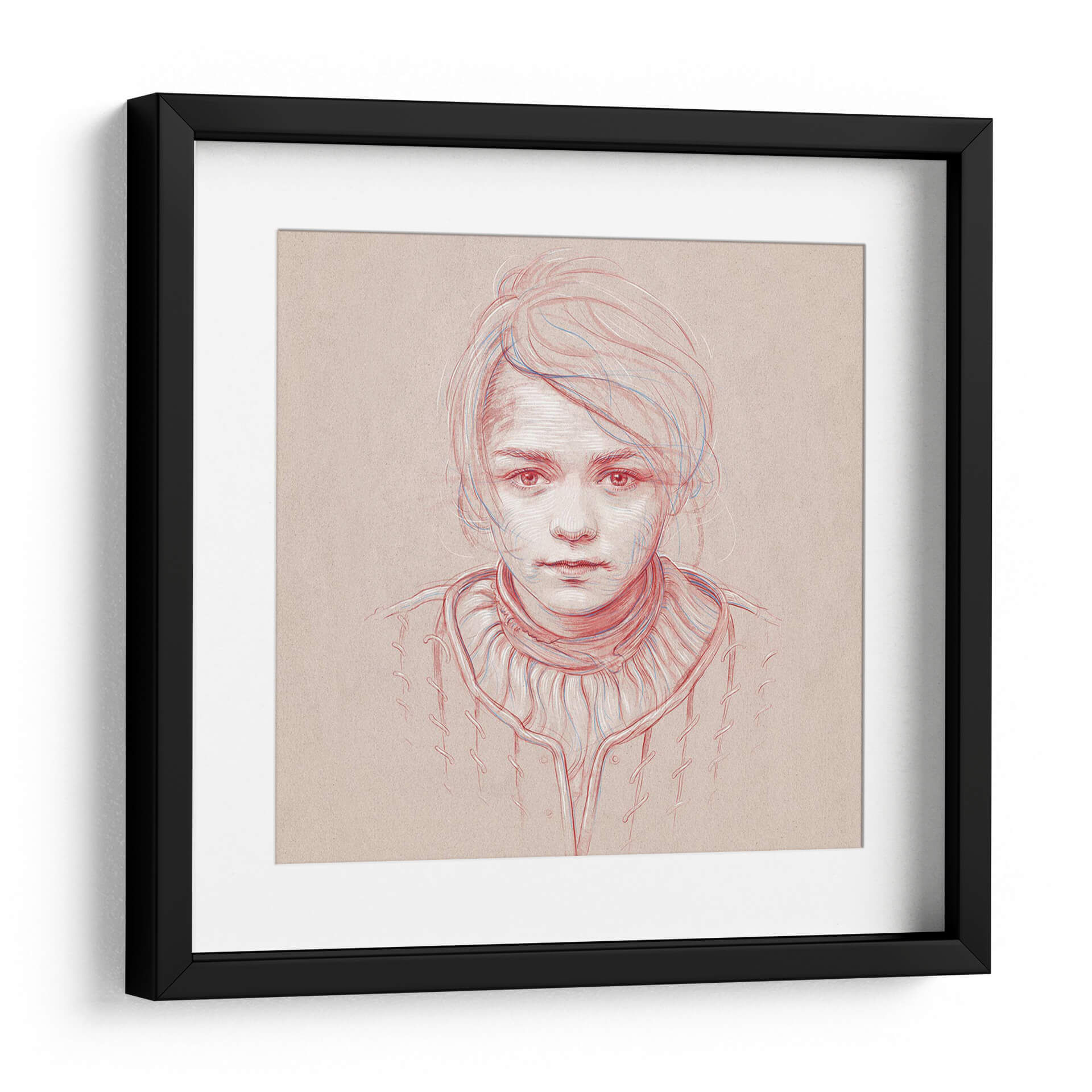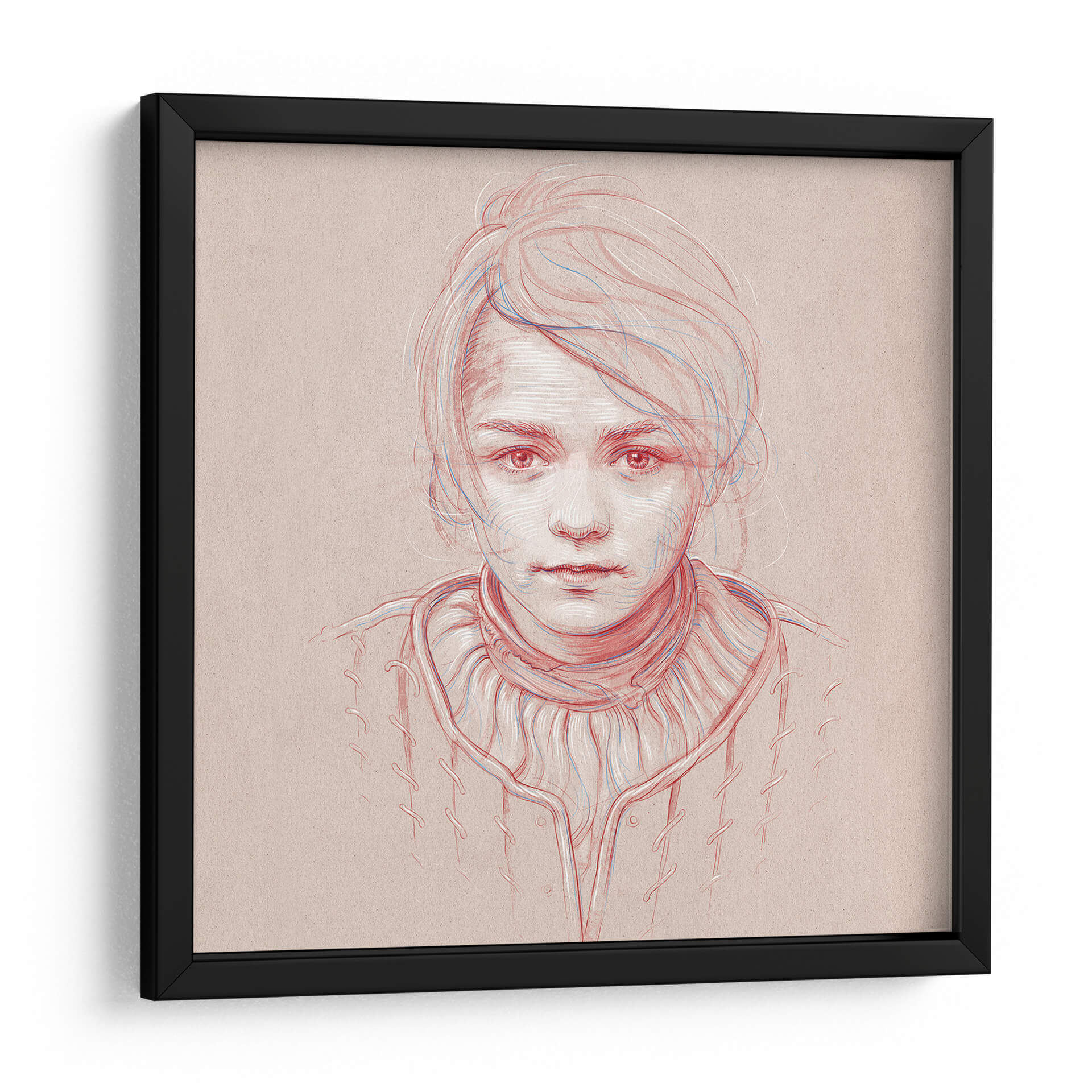 Sumérgete en la intensidad y la mirada penetrante de este evocador retrato de Arya Stark, capturado con un trazo magistral que combina delicadeza y fuerza. La obra, realizada en un estilo de boceto esquemático, utiliza una paleta de colores limitada pero impactante, dominada por el rojo y el azul sobre un fondo neutro, creando un contraste cautivador. Cada línea parece contar una historia, transmitiendo la resiliencia y el espíritu indomable del personaje. El juego de luces y sombras, sutilmente sugerido, añade profundidad y realismo al rostro, invitando a una conexión emocional profunda. Este cuadro decorativo es perfecto para aquellos que buscan añadir un toque de carácter y narrativa a sus espacios, ya sea una sala de estar moderna, un estudio personal o incluso una habitación temática. Su composición centrada en el rostro, con un ligero enfoque en la expresión, lo convierte en un punto focal poderoso que inspira conversaciones y admiración. Aporta una atmósfera de introspección y determinación a cualquier ambiente, ideal para coleccionistas de arte o fans que aprecian la maestría del dibujo y la complejidad de los personajes.