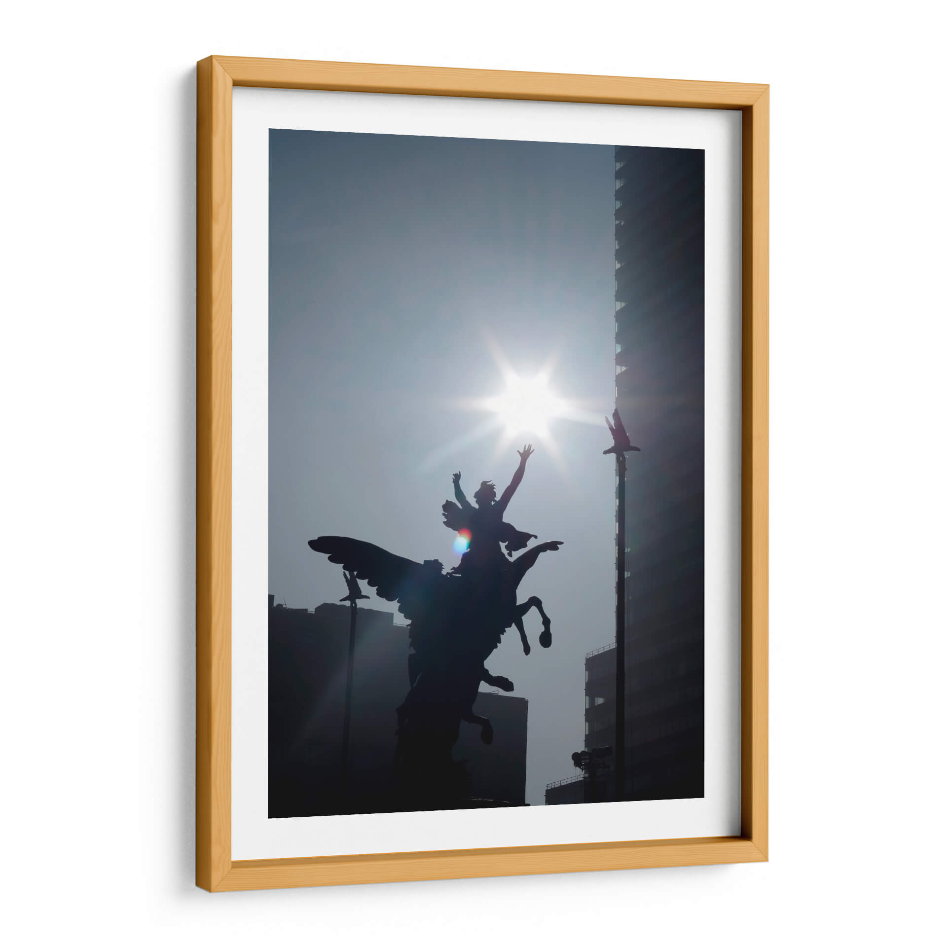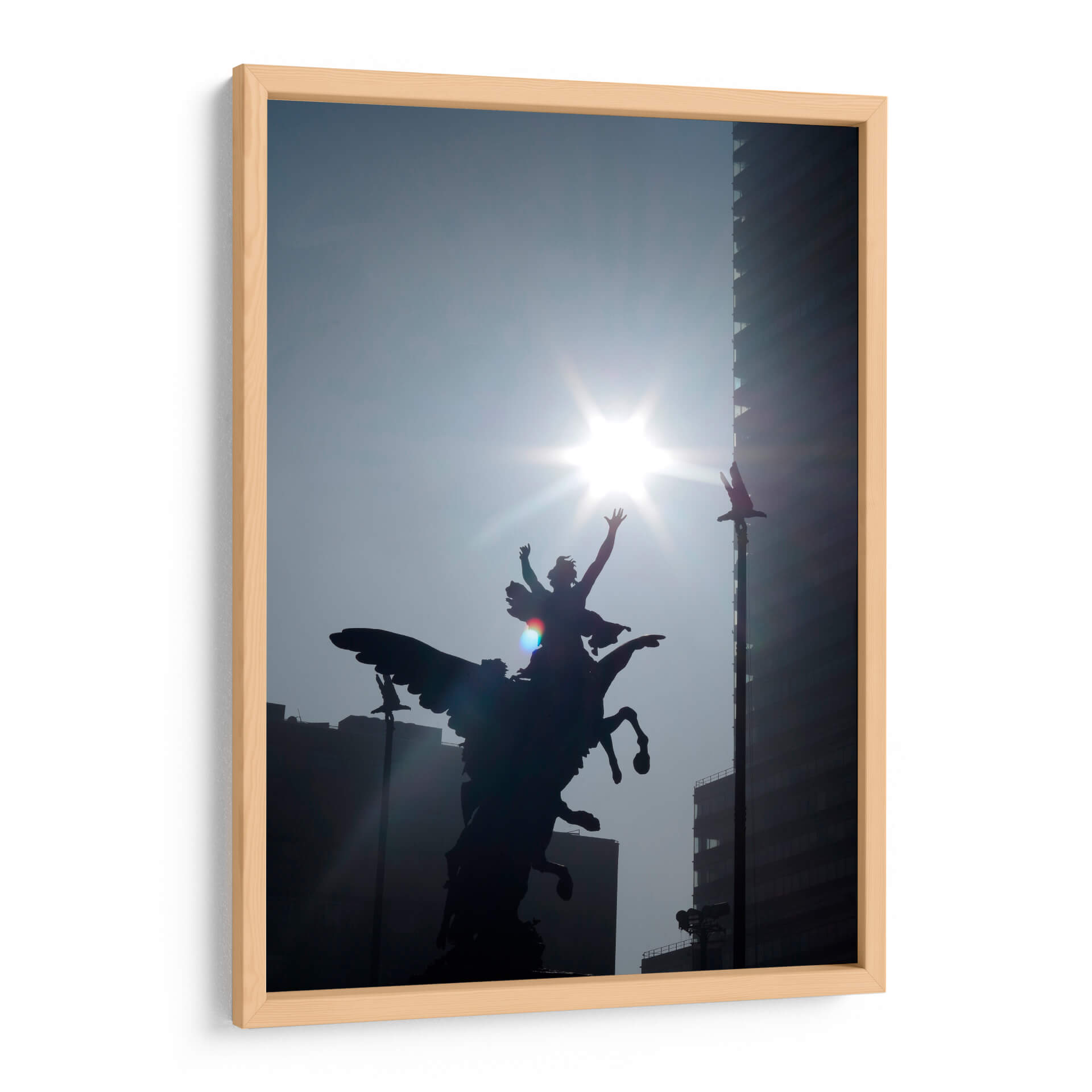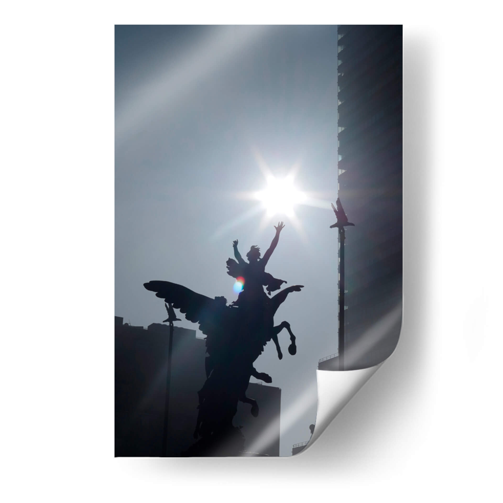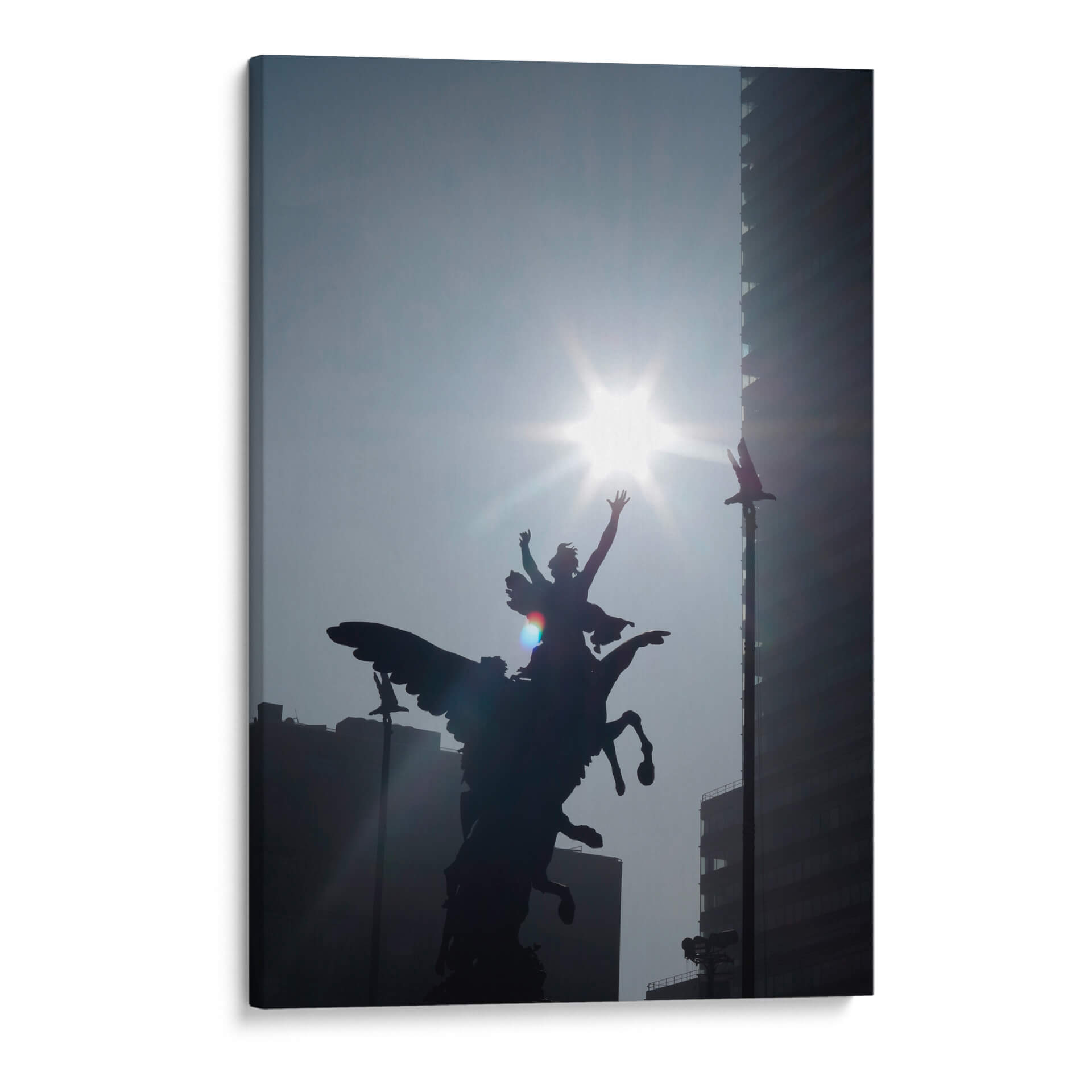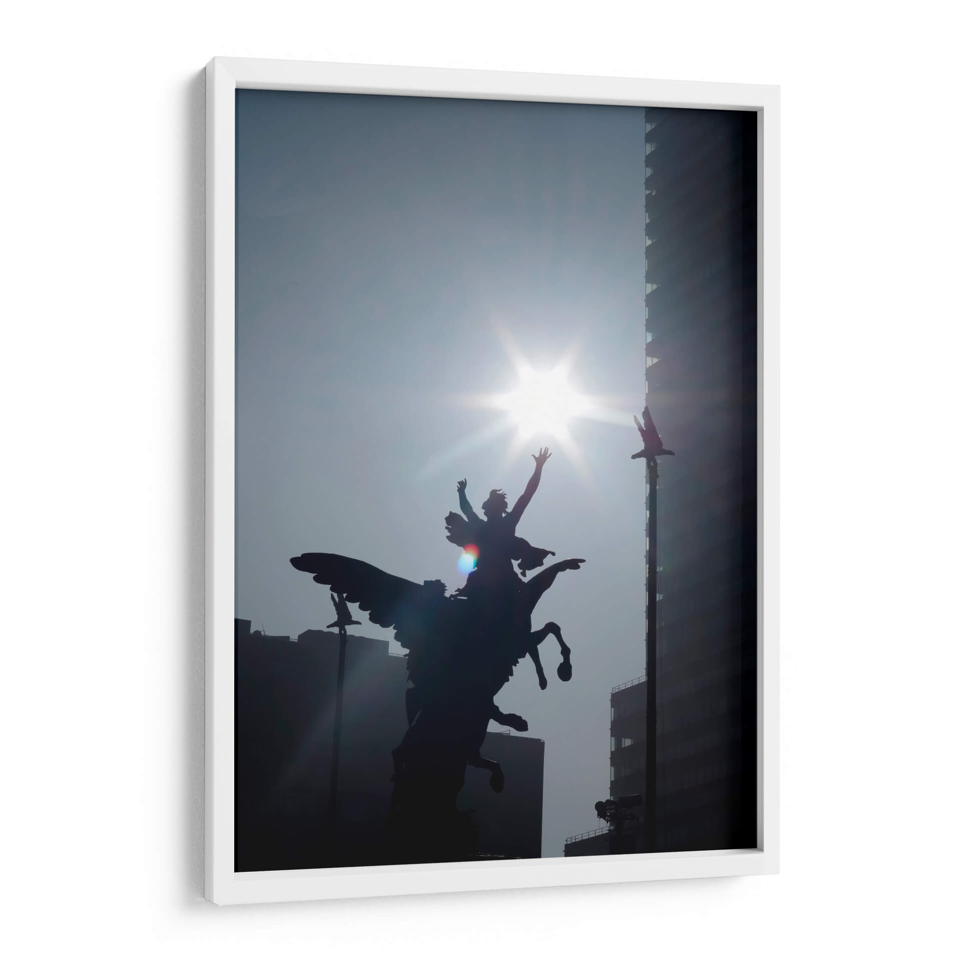 Captura la majestuosidad y el dinamismo con este impresionante cuadro decorativo, titulado "Avidez". La obra presenta una figura icónica, silueteada contra un cielo bañado por el sol, evocando una sensación de triunfo y aspiración. La composición, dominada por la silueta oscura de una estatua alada que monta un corcel, se alza desafiante contra el brillo intenso del sol y la presencia imponente de edificios urbanos. Los tonos grises y celestes del cielo contrastan con las sombras profundas de la escultura, creando un ambiente de misterio y poder. Este cuadro es perfecto para añadir un toque de carácter y sofisticación a cualquier espacio, ya sea una sala de estar moderna, un estudio profesional o un recibidor que busca impresionar. Su estilo evocador y su temática de superación lo convierten en una pieza de arte contemporáneo que inspira y eleva, transformando las paredes en lienzos de historias y emociones. Ideal para quienes aprecian el arte con fuerza narrativa y un diseño impactante que dialoga con la arquitectura y la luz.
