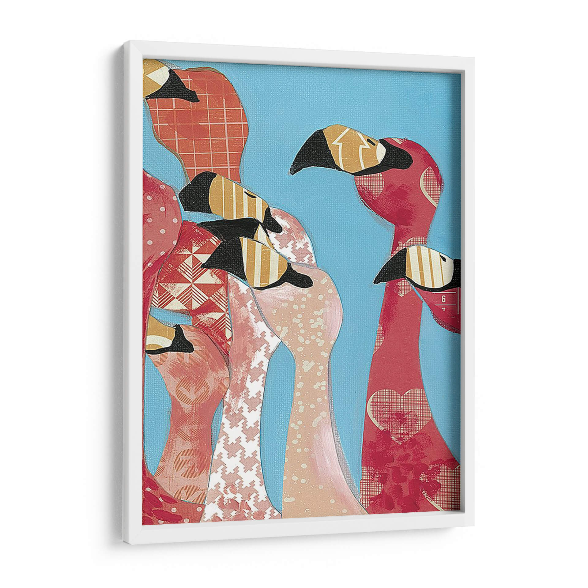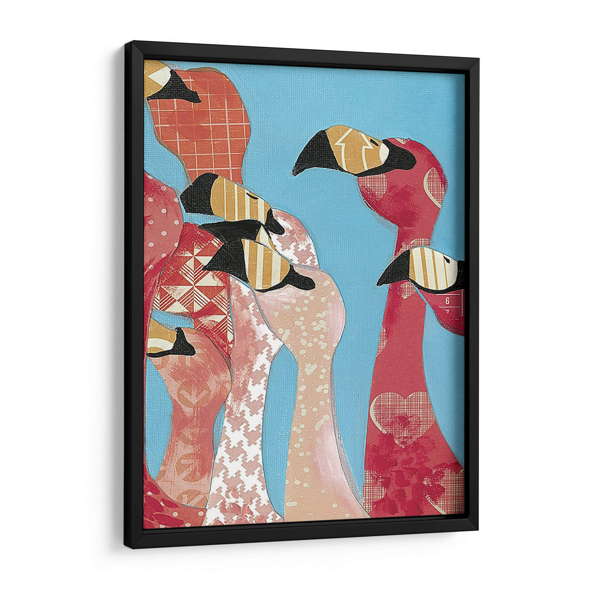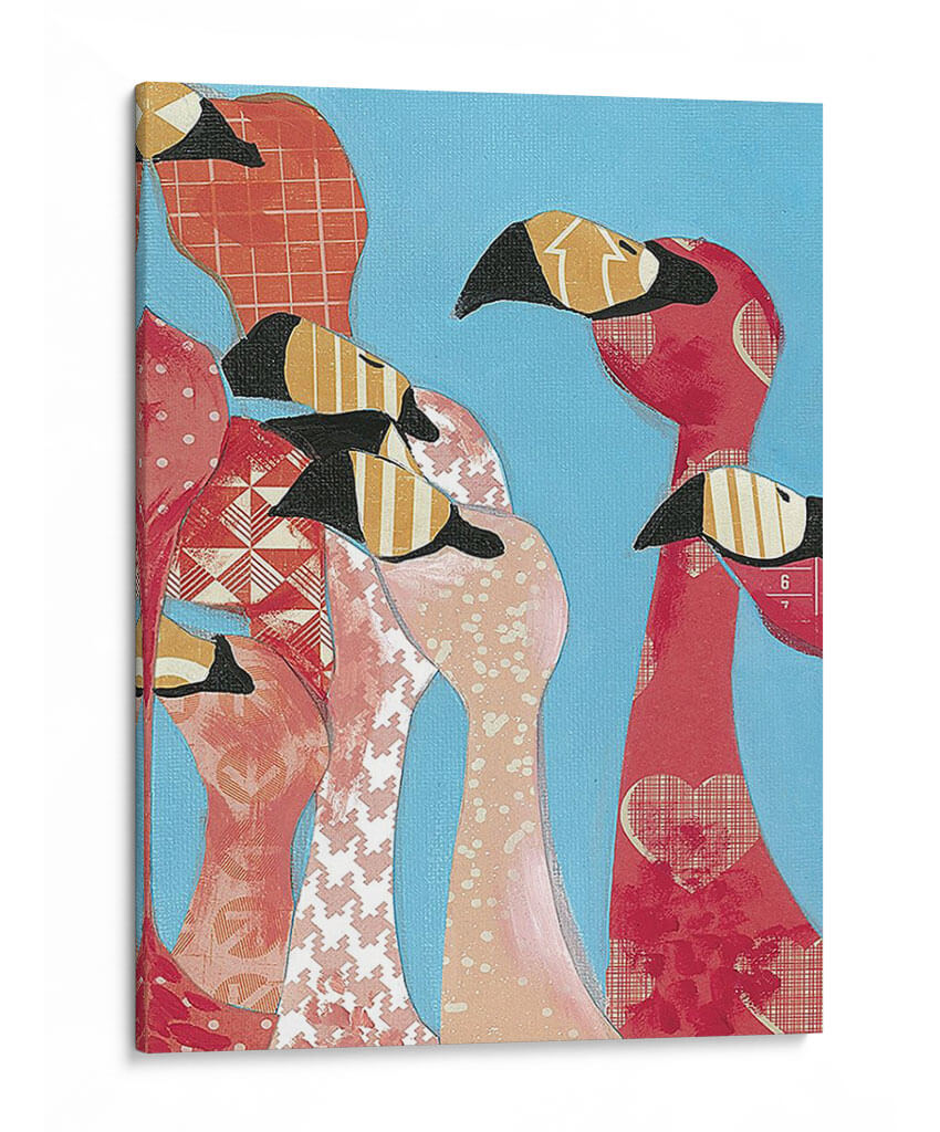Sumérgete en la vibrante y juguetona obra "Bandada De Flamencos I" de Jennifer Rutledge. Este cautivador cuadro decorativo presenta un grupo de flamencos con un estilo collage, donde cada ave cobra vida a través de texturas y patrones diversos. Los tonos rosados, rojos y naranjas de los flamencos contrastan maravillosamente con el fondo azul cielo, creando una atmósfera alegre y llena de energía. La artista emplea una técnica que combina formas definidas con la riqueza de patrones gráficos, aportando profundidad y un toque contemporáneo. Ideal para añadir un punto de interés y color a cualquier estancia, desde una sala de estar moderna hasta un dormitorio con personalidad o una oficina que necesite un toque de vitalidad. Esta pieza evoca una sensación de comunidad y exuberancia, perfecta para aquellos que buscan arte que hable de alegría y estilo. Un cuadro decorativo que sin duda será un punto focal y un tema de conversación, infundiendo tus espacios con un encanto único y una estética artística moderna y audaz.