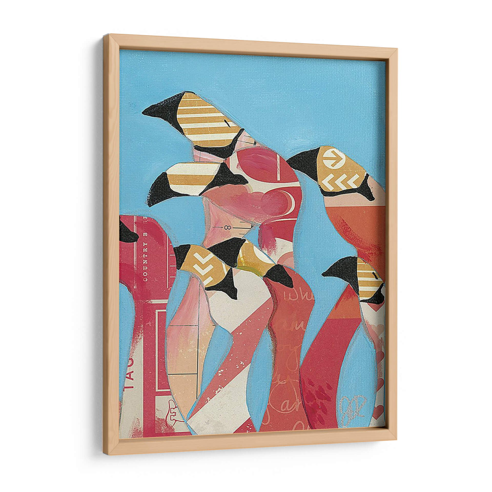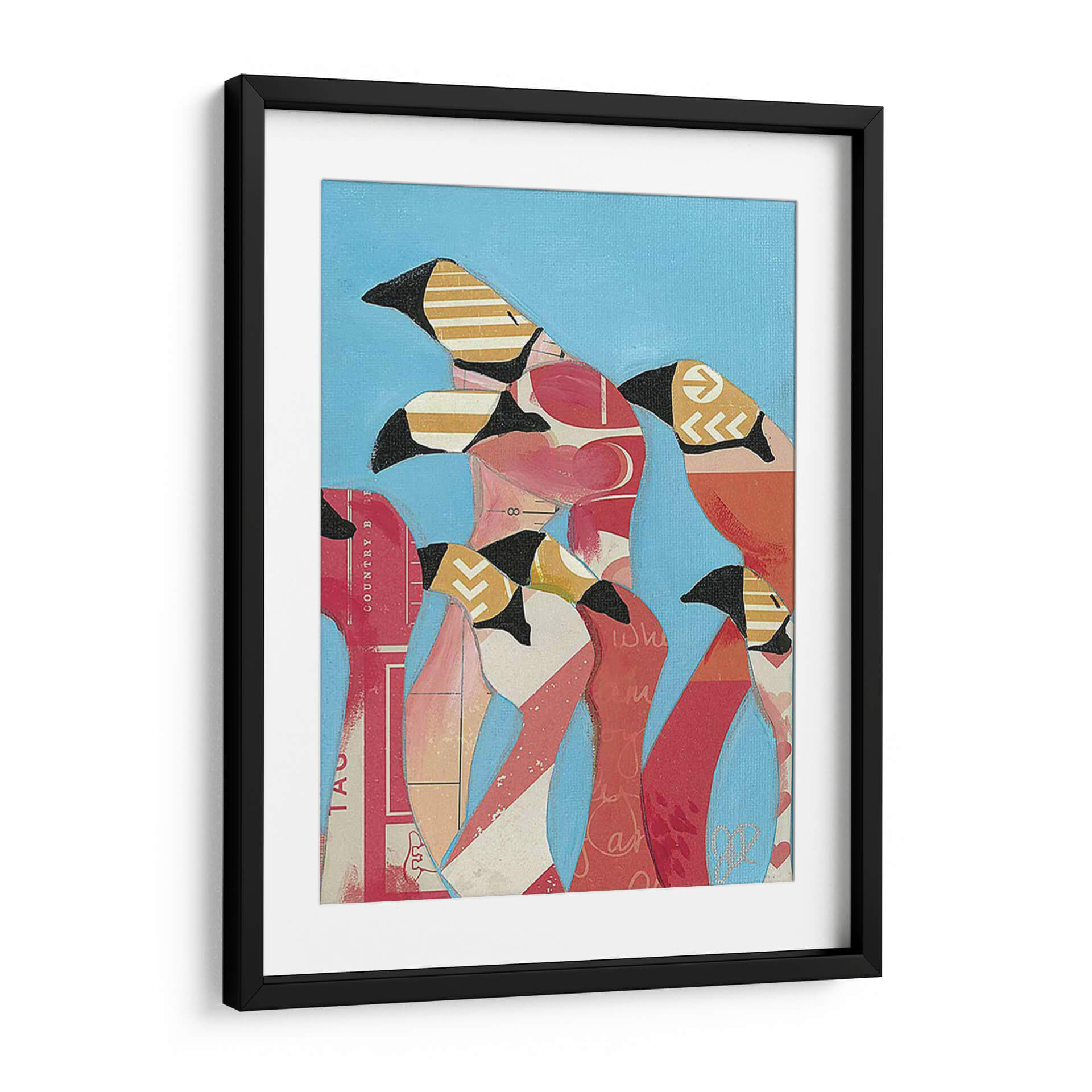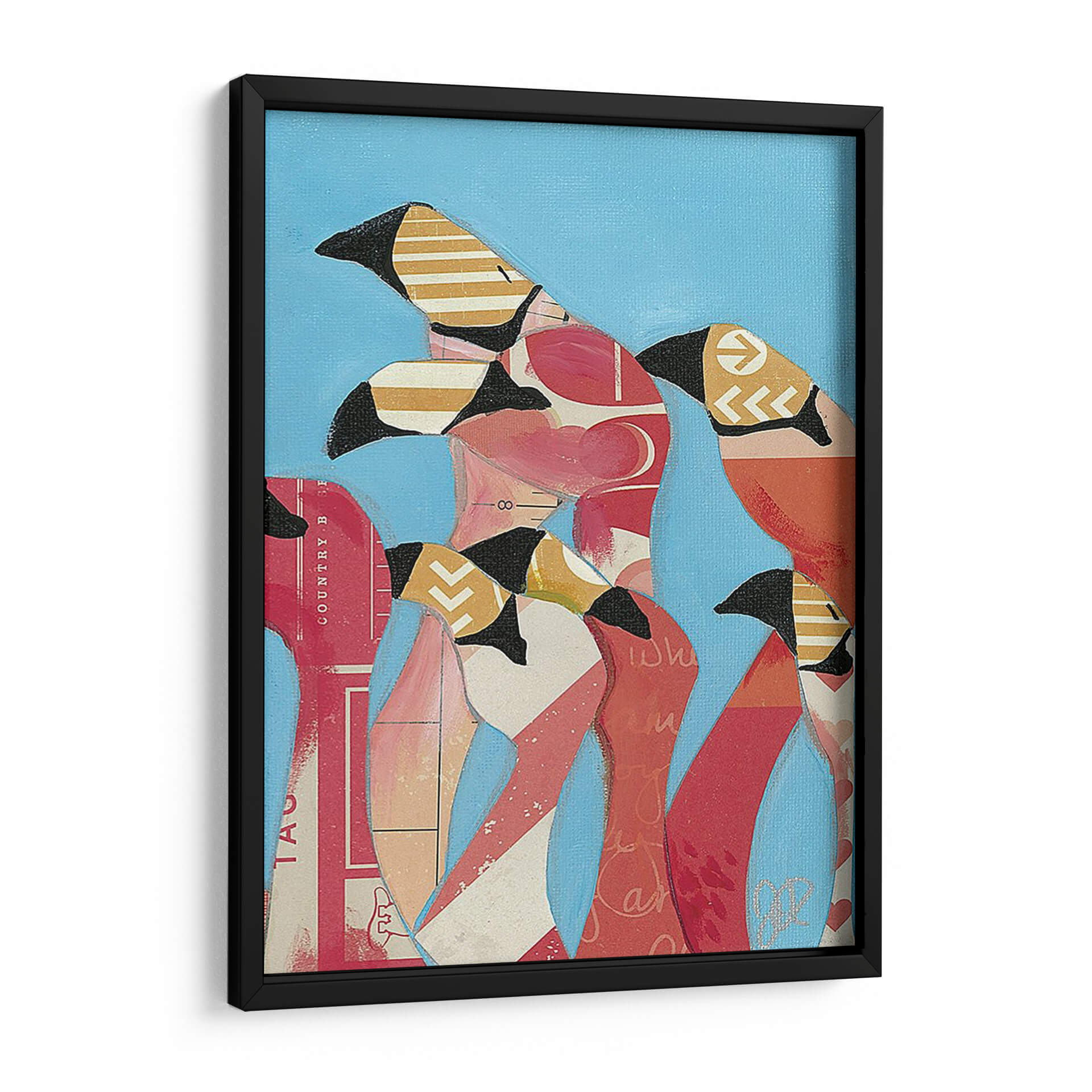 Sumérgete en la vibrante y juguetona obra "Bandada De Flamencos II" de Jennifer Rutledge. Este cautivador cuadro decorativo captura la esencia de estas icónicas aves con un estilo collage contemporáneo y audaz. La obra se despliega sobre un fondo azul cielo luminoso, creando un contraste dinámico con las figuras de flamencos compuestas a partir de recortes de revistas, papeles texturizados y pinceladas expresivas. Los colores dominantes son los rosas intensos, naranjas cálidos y amarillos vibrantes, que se entrelazan con toques de negro y blanco, aportando profundidad y energía a la composición. La técnica mixta de Rutledge añade una dimensión táctil y visual única, invitando al espectador a descubrir los detalles sutiles y los patrones integrados en cada figura. "Bandada De Flamencos II" no es solo una representación de aves, sino una celebración de la vida, el movimiento y la alegría. Es una pieza de arte moderno perfecta para infundir personalidad y color en cualquier espacio, desde una sala de estar contemporánea hasta una oficina que busca un toque de vitalidad. Este cuadro decorativo es ideal para quienes aprecian el arte pop, el collage digital y las piezas con un fuerte sentido del diseño y la estética.