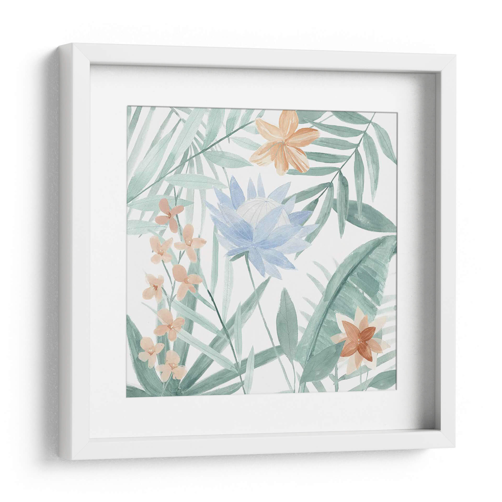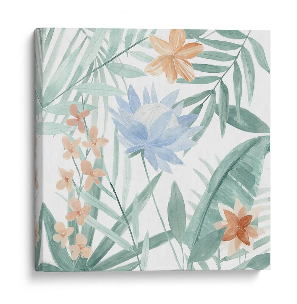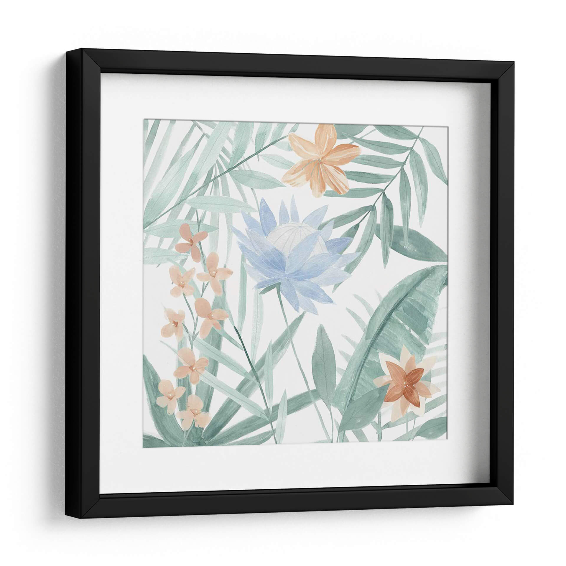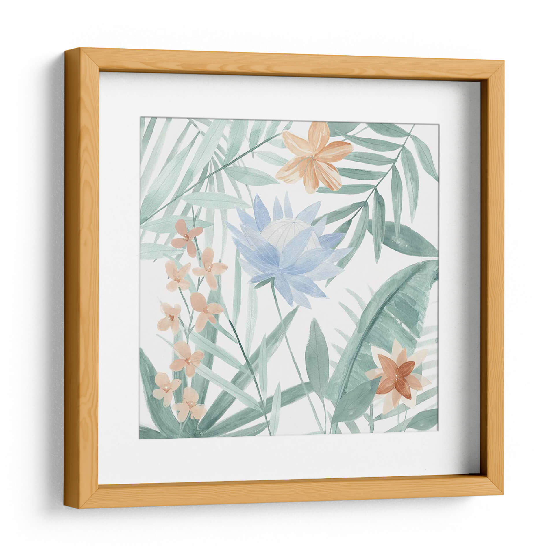 Sumérgete en la serenidad de 'Bienvenido Tropical I', una obra de arte que evoca la frescura y vitalidad de un paraíso exuberante. Este cuadro decorativo, pintado por Jacob Green, presenta una delicada acuarela de flores tropicales y follaje en tonos pastel que crean una atmósfera de calma y relajación. Las suaves pinceladas y la composición armoniosa invitan a la contemplación, haciendo de esta pieza el acento perfecto para cualquier espacio que busque un toque de naturaleza y elegancia. El contraste entre las grandes hojas verdes, las sutiles flores anaranjadas y el majestuoso loto azul en el centro, captura la esencia de un jardín exótico en plena floración. Ideal para salas de estar, dormitorios o estudios, este cuadro transformará tu hogar en un oasis de tranquilidad. Su estilo contemporáneo y su paleta de colores refrescantes lo convierten en una adición versátil y atemporal a tu decoración. Deja que la belleza natural de 'Bienvenido Tropical I' llene de vida y armonía tus paredes, creando un ambiente acogedor y sofisticado que te transportará a un estado de paz y bienestar.