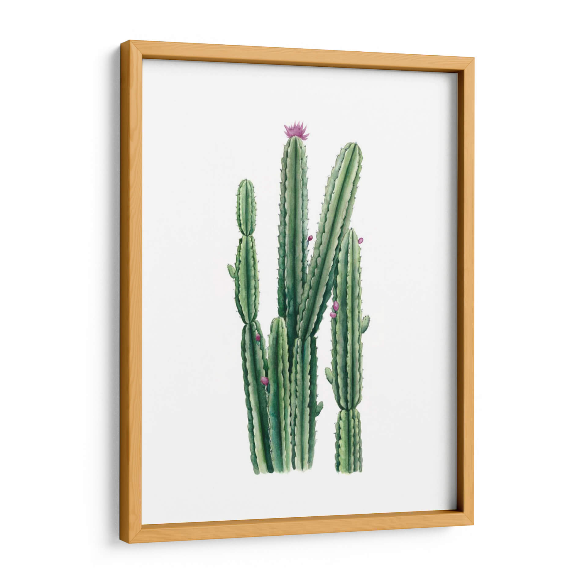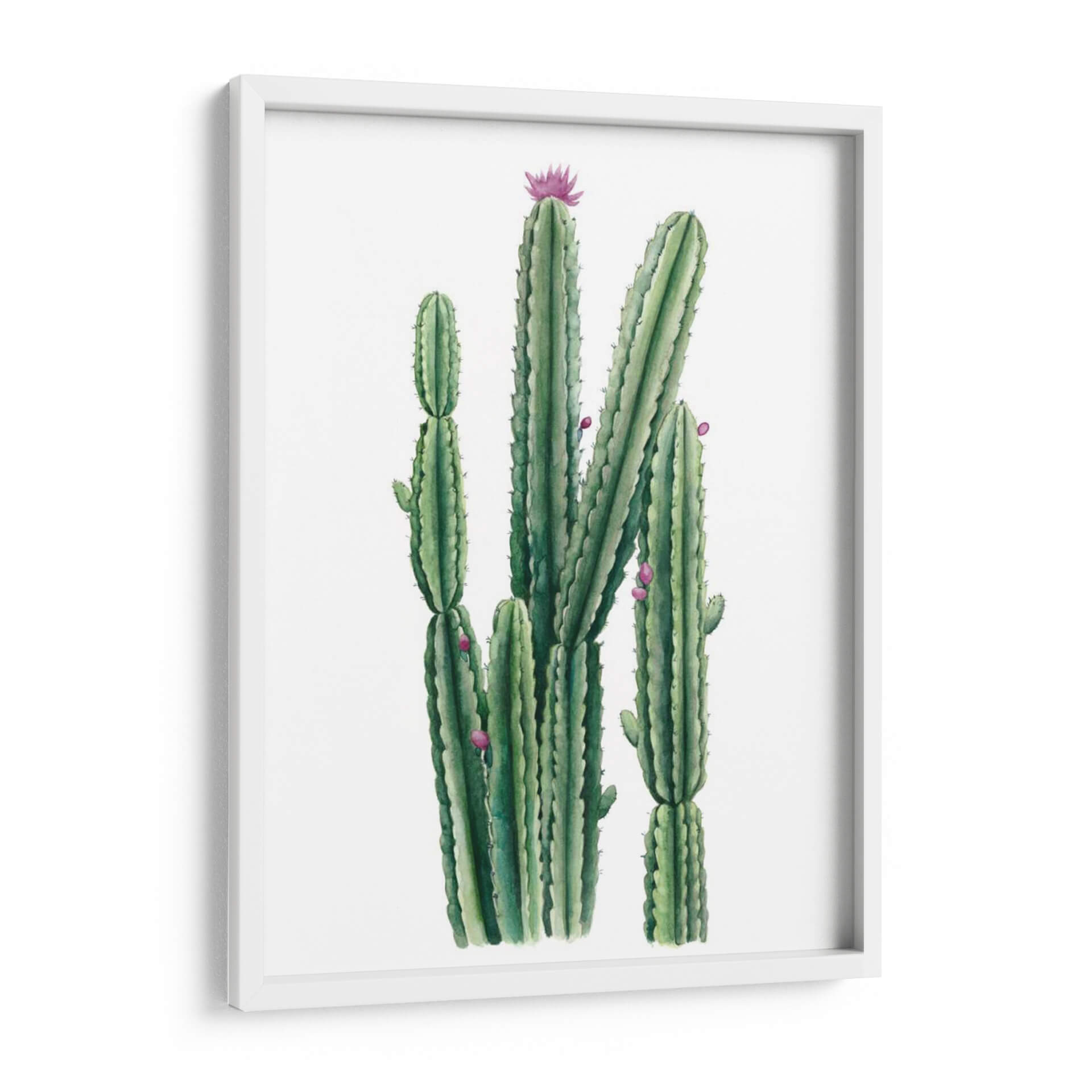 Transforma tu espacio con "Blooms Del Desierto II", una cautivadora obra de arte que captura la esencia de la flora desértica con una delicadeza exquisita. Esta pieza, creada por la talentosa artista Grace Popp, presenta un vibrante grupo de cactus en diferentes etapas de crecimiento, adornados con sutiles toques de flores rosadas que contrastan maravillosamente con el verde profundo de los suculentos tallos. La acuarela utilizada en esta obra aporta una ligereza y una atmósfera etérea, haciendo que cada trazo sea visible y lleno de vida. La composición vertical y el fondo blanco puro realzan la majestuosidad de los cactus, creando un punto focal que irradia tranquilidad y resiliencia. Ideal para añadir un toque de naturaleza y serenidad a cualquier habitación, desde una sala de estar moderna hasta un sereno dormitorio o un espacio de oficina inspirador. "Blooms Del Desierto II" es más que un simple cuadro decorativo; es una ventana a la belleza austera y sorprendente del desierto, una invitación a la calma y la contemplación. Su estilo realista con un toque contemporáneo la convierte en una adición versátil y atemporal a tu decoración.