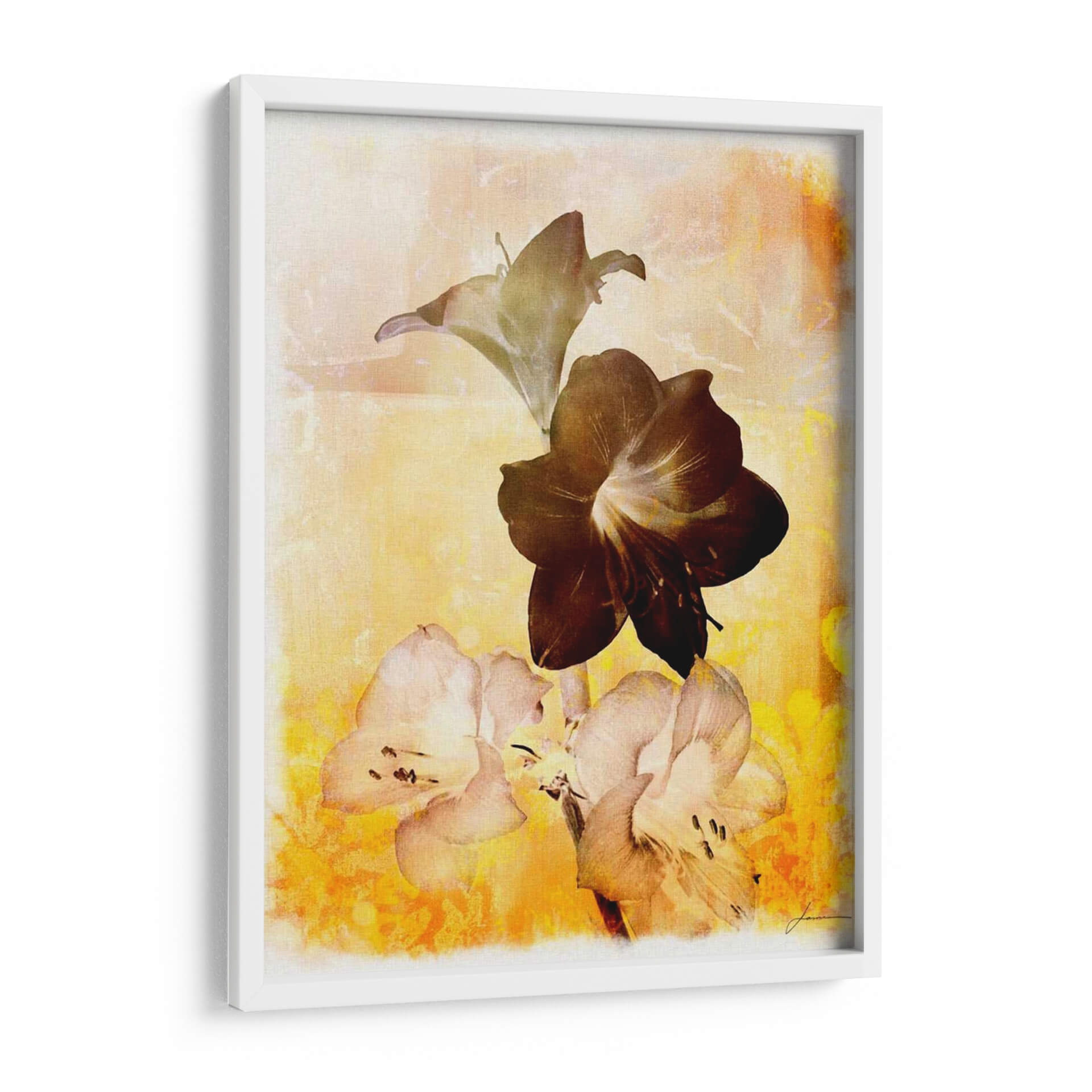 Embellece tu hogar u oficina con el cautivador cuadro decorativo 'Brocade Jardín II' del artista James Burghardt. Esta obra de arte evoca una atmósfera de serenidad y elegancia natural, con un enfoque en la delicada belleza de las flores. La paleta de colores, dominada por tonos cálidos de amarillo y ocre con contrastes de marrón oscuro, crea una sensación de profundidad y luminosidad. Las flores, representadas con un estilo que combina realismo y un toque etéreo, parecen flotar sobre un fondo texturizado que añade dimensión y calidez. La composición es armoniosa, guiando la mirada a través de los pétalos suaves y las formas fluidas. Ideal para quienes buscan infundir sus espacios con un toque de naturaleza refinada y sofisticación. Este cuadro decorativo es perfecto para salones modernos, dormitorios acogedores o incluso como pieza central en un estudio. Su estilo atemporal y su temática floral lo convierten en una adición versátil a cualquier decoración, aportando un aire de tranquilidad y belleza orgánica. Permite que 'Brocade Jardín II' transforme tu entorno en un santuario de paz y estilo.