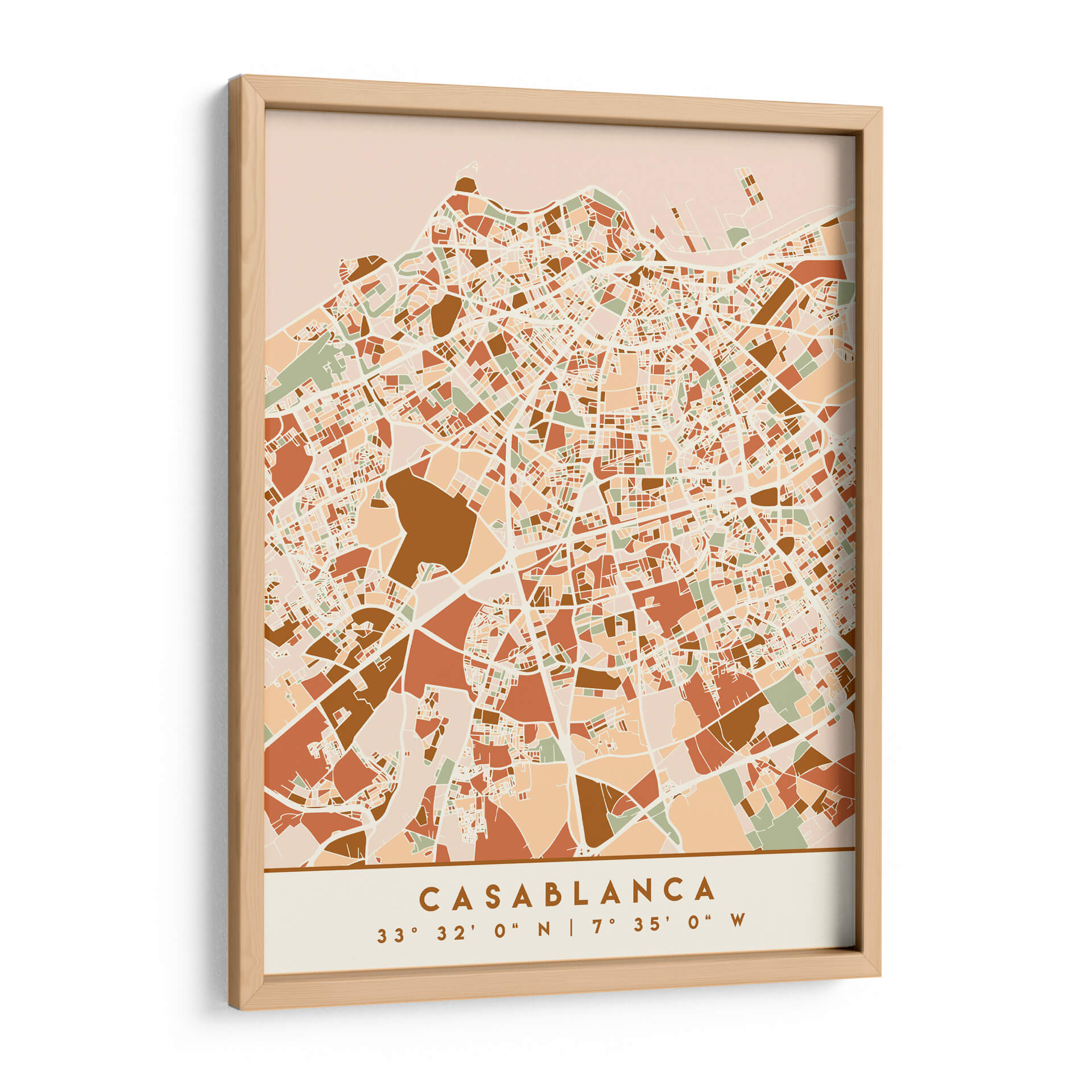 Sumérgete en la esencia urbana de "Casablanca, Mapas negros Tonos tierra 19", una obra de arte digital que reimagina la complejidad de una ciudad a través de un diseño cartográfico estilizado. Emiliano Deificus captura la intrincada red de calles y barrios de Casablanca, transformándola en una pieza visualmente cautivadora. La paleta de colores, dominada por tonos tierra cálidos como terracota, beige, ocre y toques de verde salvia, evoca una sensación de calidez, sofisticación y conexión con lo natural, a pesar de su temática urbana. Cada bloque de color y línea representa un segmento de la urbe, creando una composición abstracta pero reconocible que invita a la contemplación. Este cuadro decorativo no solo es un mapa estilizado, sino una invitación a explorar la belleza inherente en la estructura de nuestras ciudades. Su diseño contemporáneo y su paleta de colores cuidadosamente seleccionada lo convierten en el complemento perfecto para una sala de estar moderna, un estudio o una oficina, aportando un toque de originalidad y un aire cosmopolita al espacio. Descubre la fusión de geografía y arte con esta pieza única que celebra la arquitectura urbana desde una perspectiva artística.