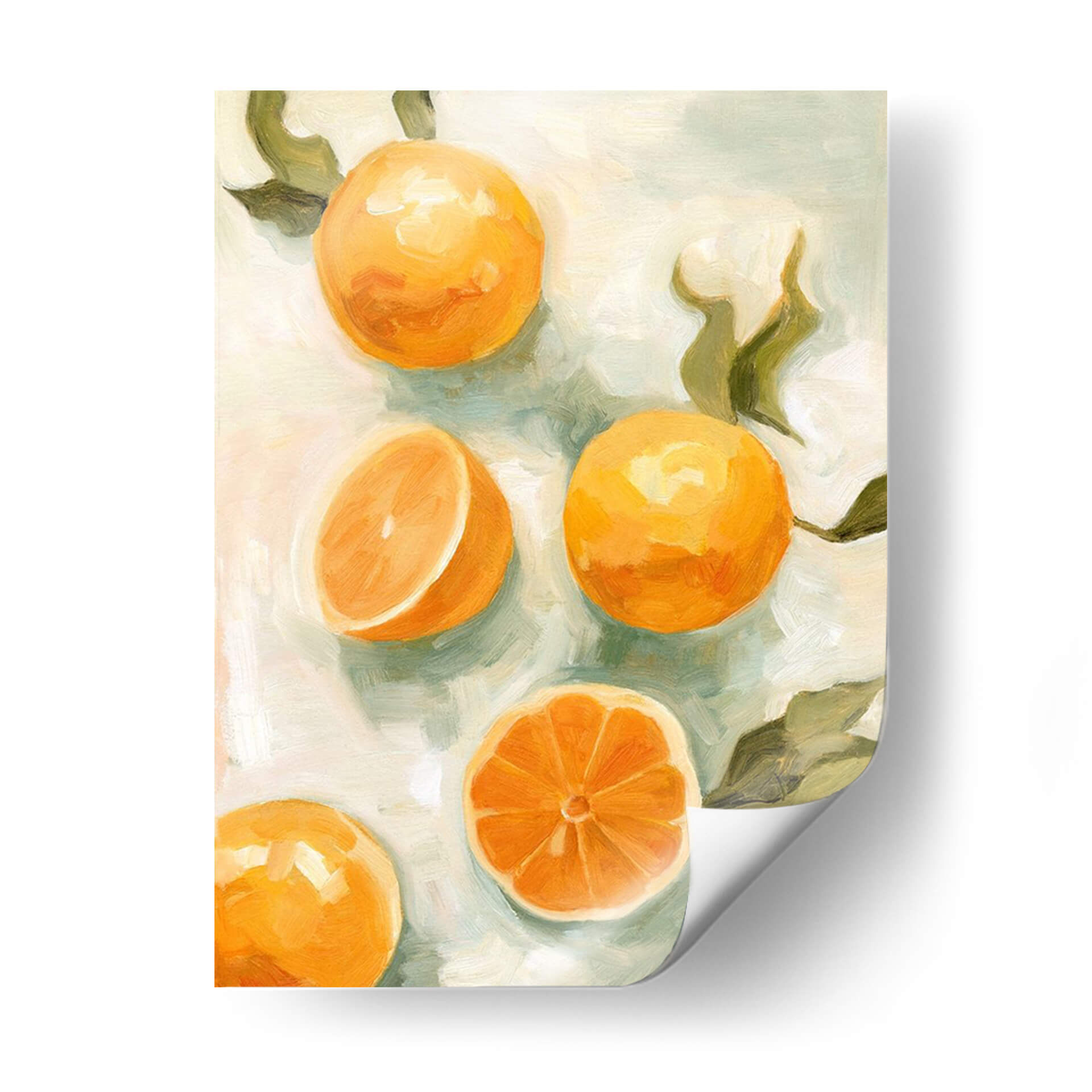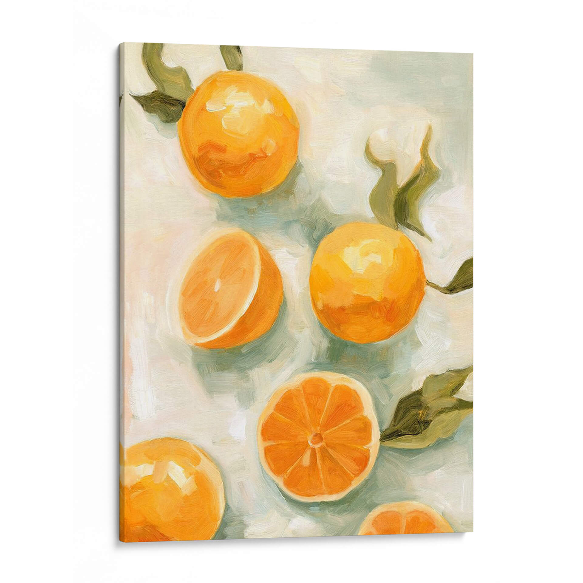 Inyecta vitalidad y frescura a tu hogar con "Cítricos Frescos V", una obra de arte vibrante de Emma Scarvey. Este cuadro decorativo captura la esencia jugosa de los cítricos en una composición delicada y contemporánea. Los naranjas intensos de las frutas cortadas y enteras contrastan maravillosamente con el suave fondo de tonos pastel y verdes apagados, creando una atmósfera serena y acogedora. La pincelada suelta y expresiva de Scarvey añade textura y profundidad, invitando a contemplar cada detalle. Ideal para cocinas, comedores o cualquier espacio que busque un toque de alegría y optimismo. Este cuadro es perfecto para quienes aprecian el arte de bodegón con un giro moderno y minimalista. Transforma tu pared en una ventana a la frescura y al sabor, añadiendo un punto focal lleno de vida y color que iluminará tu día a día y deleitará a tus invitados. Una pieza que evoca la sencillez y la belleza de la naturaleza, perfecta para crear un ambiente luminoso y lleno de energía positiva en tu decoración.