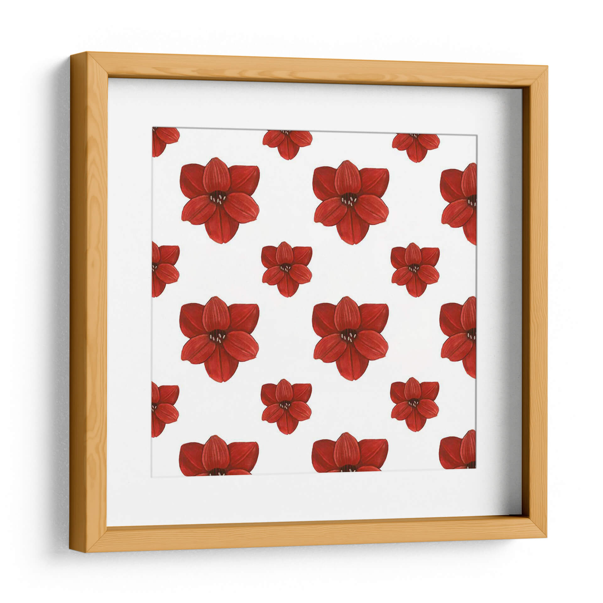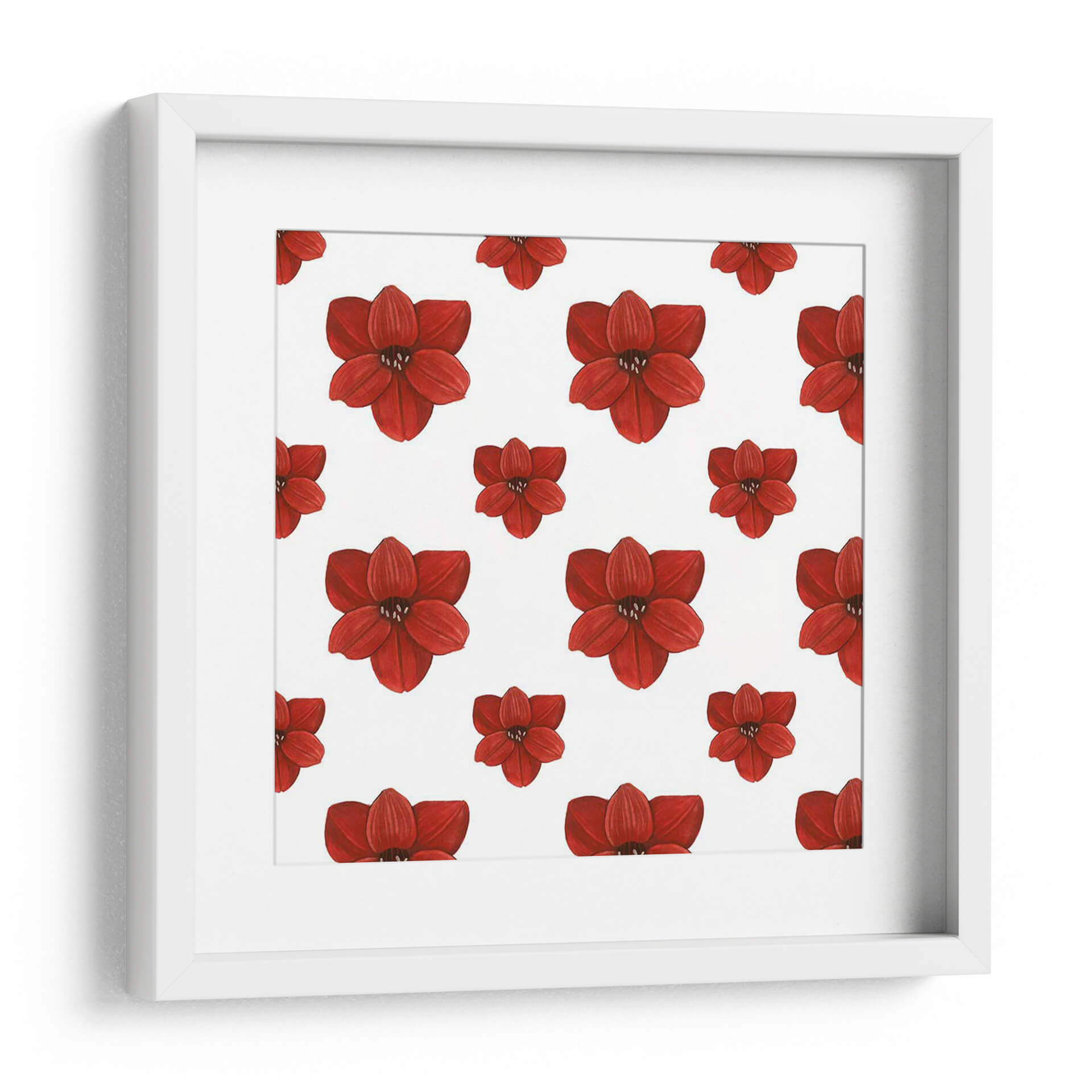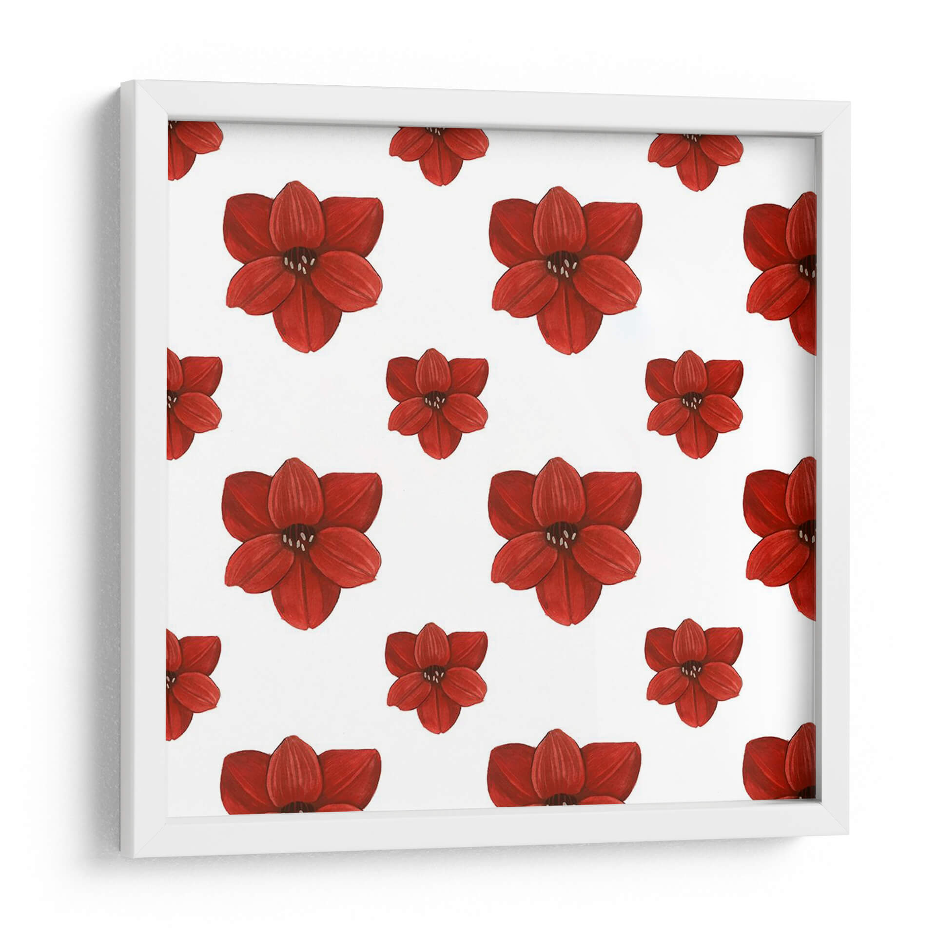 Este encantador cuadro decorativo, titulado 'Colección De Navidad Forest F' por Grace Popp, es una celebración vibrante de la naturaleza con un patrón repetitivo de flores rojas intensas. Cada pétalo está detallado con una sutileza que evoca la delicadeza de las amaryllis o flores similares, presentadas sobre un fondo blanco puro que resalta su color escarlata. La composición simétrica y el estilo detallado de la ilustración crean una sensación de orden y belleza, a la vez que la repetición del motivo floral aporta un dinamismo visual cautivador. Es una pieza que irradia pasión y vitalidad, perfecta para añadir un toque de color y vida a cualquier espacio. Ideal para salones modernos, dormitorios acogedores o incluso como un acento festivo en una oficina, este cuadro decorativo transformará tu ambiente con su energía y elegancia botánica. La obra de Grace Popp es una invitación a la apreciación de la belleza en los detalles, convirtiendo tu pared en una galería personal de inspiración floral. Su diseño versátil se adapta a una amplia gama de estilos decorativos, desde el contemporáneo hasta el más clásico, asegurando que aporte un punto focal memorable y lleno de carácter a tu hogar o lugar de trabajo.
