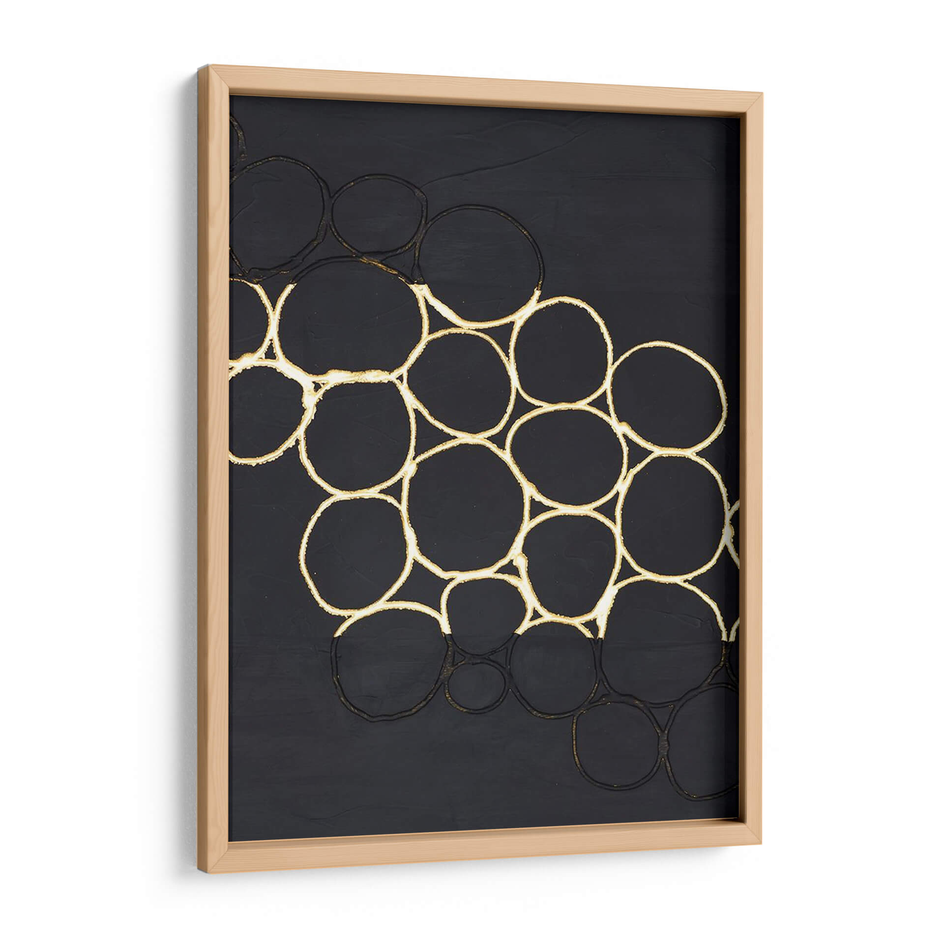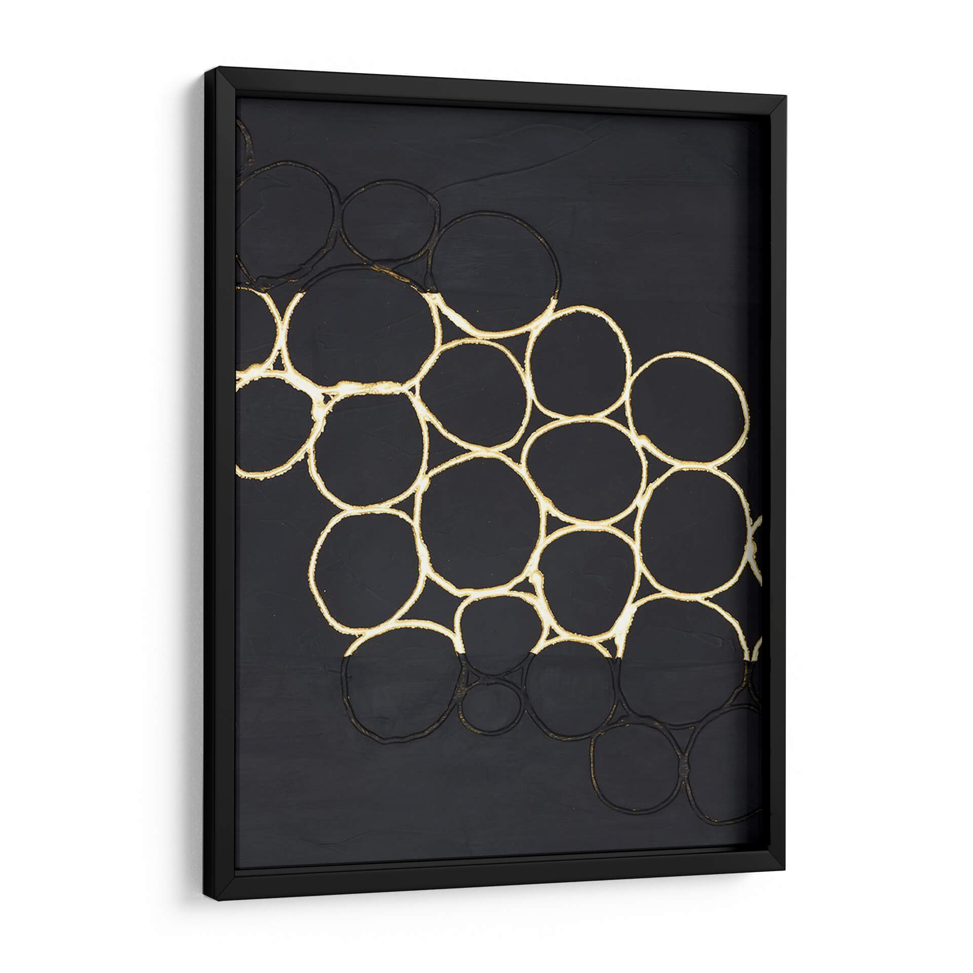 Sumérgete en la sofisticación moderna con "Combo De Oro Iii", una obra de arte abstracto que redefine la elegancia en tu espacio. Esta pieza cautiva con su audaz composición de círculos oscuros enmarcados por un contorno dorado, creando un patrón dinámico sobre un fondo texturizado en tono carbón. La obra evoca una sensación de profundidad y misterio, invitando a la contemplación. Los detalles dorados añaden un toque de lujo y calidez, contrastando sutilmente con la base oscura, lo que resulta en un equilibrio visual cautivador. Ideal para salas de estar contemporáneas, oficinas o cualquier ambiente que busque un punto focal distintivo y un aire de refinamiento. "Combo De Oro Iii" es más que una decoración; es una declaración de estilo que aporta carácter y una energía sutil pero poderosa a tu hogar u oficina. Su diseño minimalista pero impactante lo convierte en la elección perfecta para quienes aprecian el arte moderno y buscan piezas que inspiren y transformen.