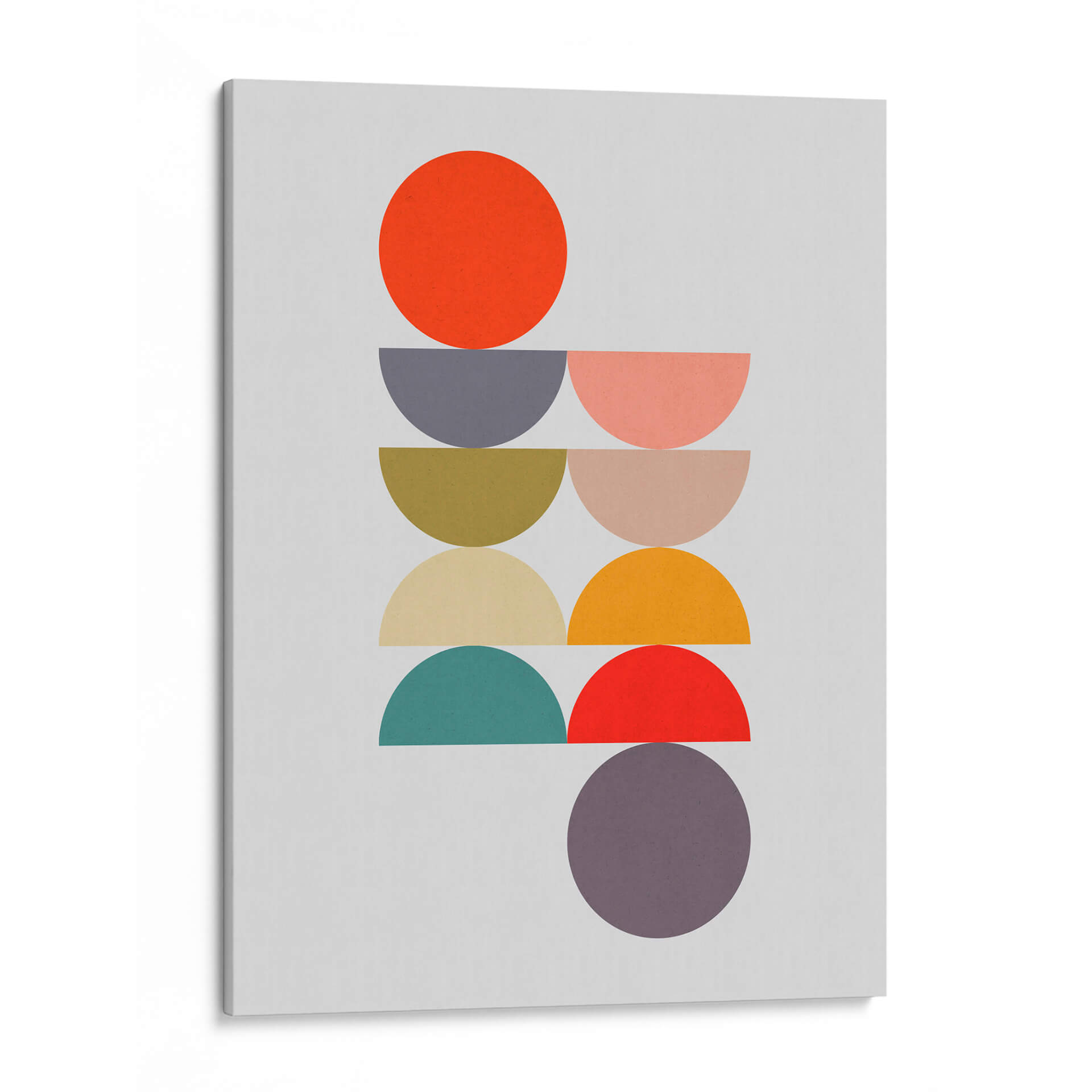 Sumérgete en la elegancia geométrica de la obra "Composición geométrica 5" de Vitor Costa. Este cuadro decorativo abstracto presenta una armoniosa disposición de formas circulares y semicirculares en una paleta de colores vibrantes y a la vez equilibrados, que incluyen tonos cálidos como el naranja y el rojo junto a matices más sutiles como el gris, el verde oliva y el rosa pálido. La composición, que recuerda a un juego visual de apilamiento y equilibrio, crea una sensación de orden y dinamismo, invitando a la contemplación. El estilo distintivo de Costa fusiona la simplicidad de las formas con la audacia del color, resultando en una pieza que puede adaptarse a diversos entornos decorativos. Ideal para añadir un toque moderno y sofisticado a tu sala de estar, oficina o cualquier espacio que busque un punto focal artístico y contemporáneo. Este cuadro decorativo no solo embellece, sino que también estimula la conversación y refleja un gusto refinado por el arte abstracto. Su diseño limpio y estructurado lo convierte en una adición perfecta para interiores minimalistas, escandinavos o eclécticos, aportando vida y carácter sin sobrecargar el ambiente.