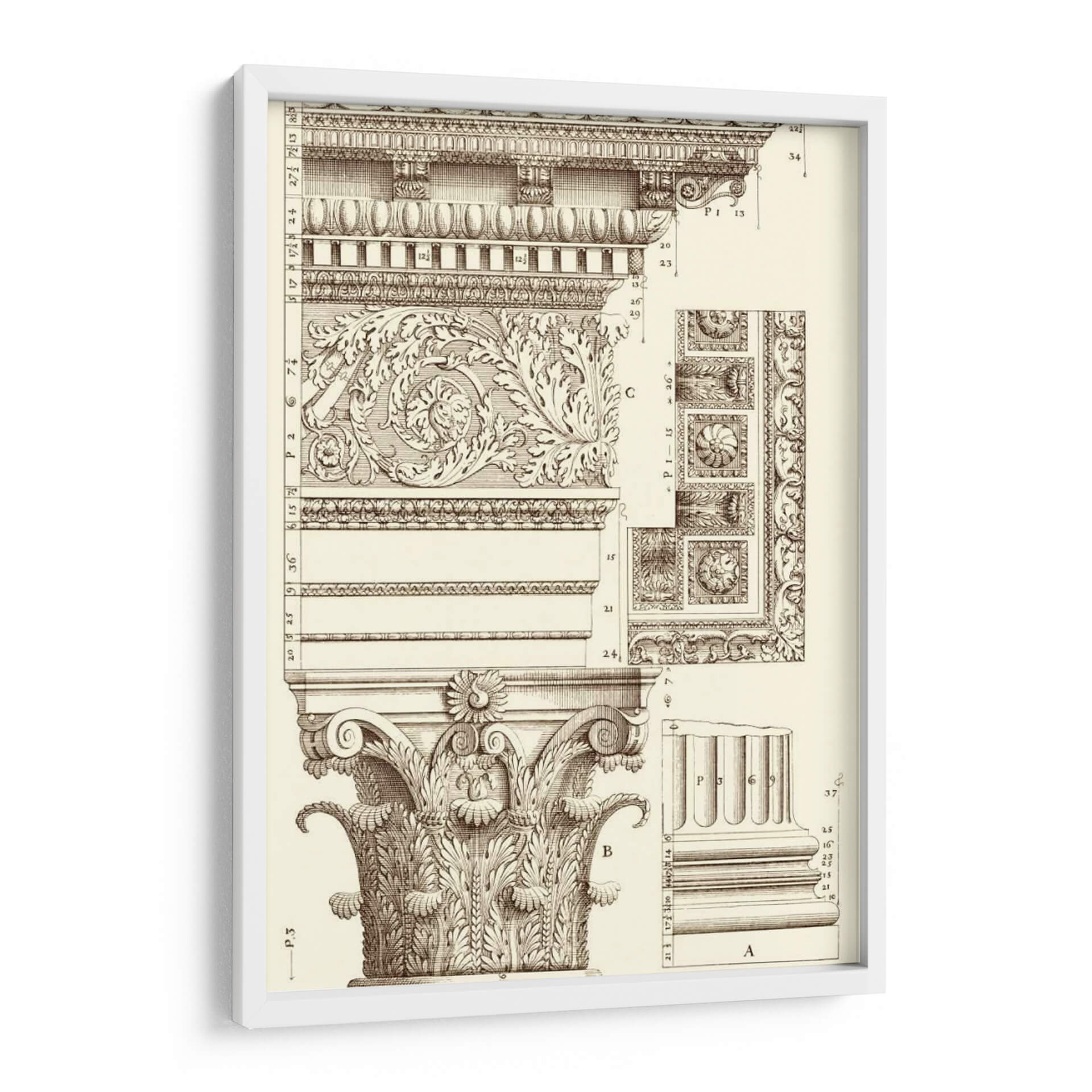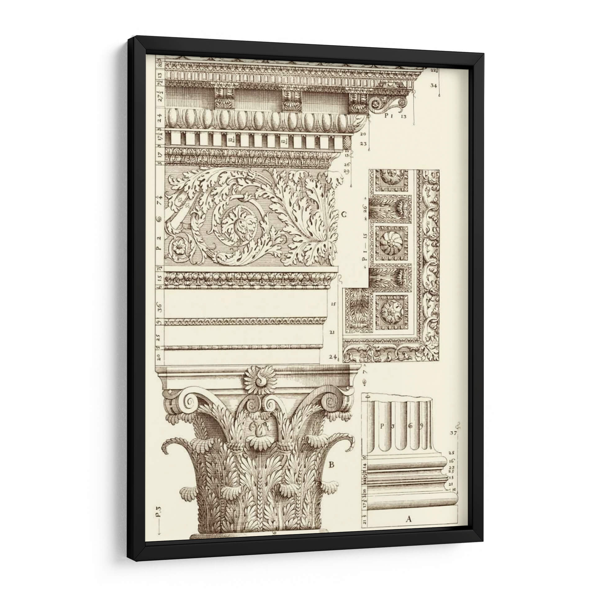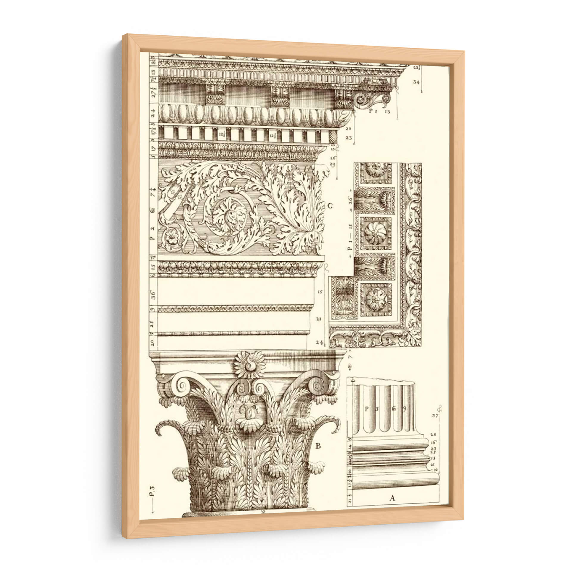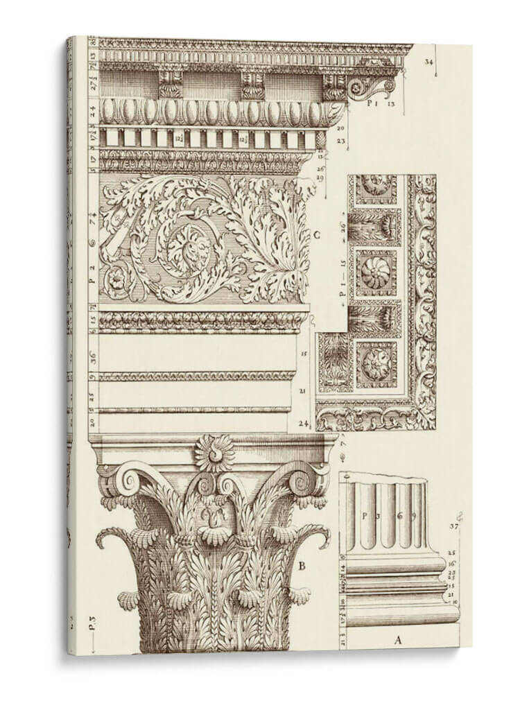 Sumérgete en la elegancia arquitectónica con "Corinto Detalle V", una obra de arte que evoca la grandeza de los diseños clásicos. Este cuadro decorativo presenta un intrincado estudio de los órdenes arquitectónicos, centrándose en la majestuosidad de una columna corintia y sus elementos decorativos. La detallada ilustración en sepia, con sus finas líneas y sombreados precisos, crea una atmósfera de estudio y erudición, transportando al espectador a un taller de arquitectura o a una antigua biblioteca. Los motivos ornamentales, llenos de volutas y hojas de acanto, exhiben una maestría artesanal que celebra la belleza de la forma y la simetría. Ideal para espacios que buscan un toque de sofisticación atemporal, como estudios, bibliotecas privadas, o salas de estar con un estilo clásico o ecléctico. Este cuadro decorativo no solo embellece, sino que también inspira admiración por la historia del arte y la arquitectura, convirtiéndose en un punto focal de conversación y aprendizaje en cualquier ambiente.