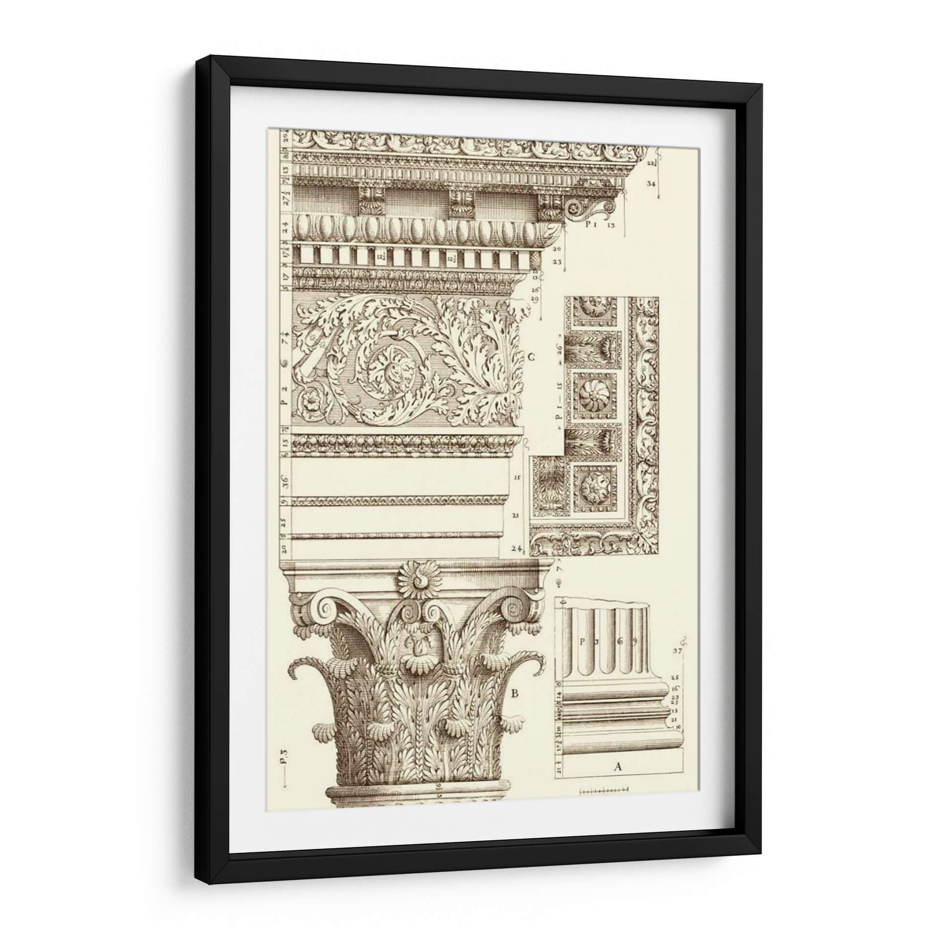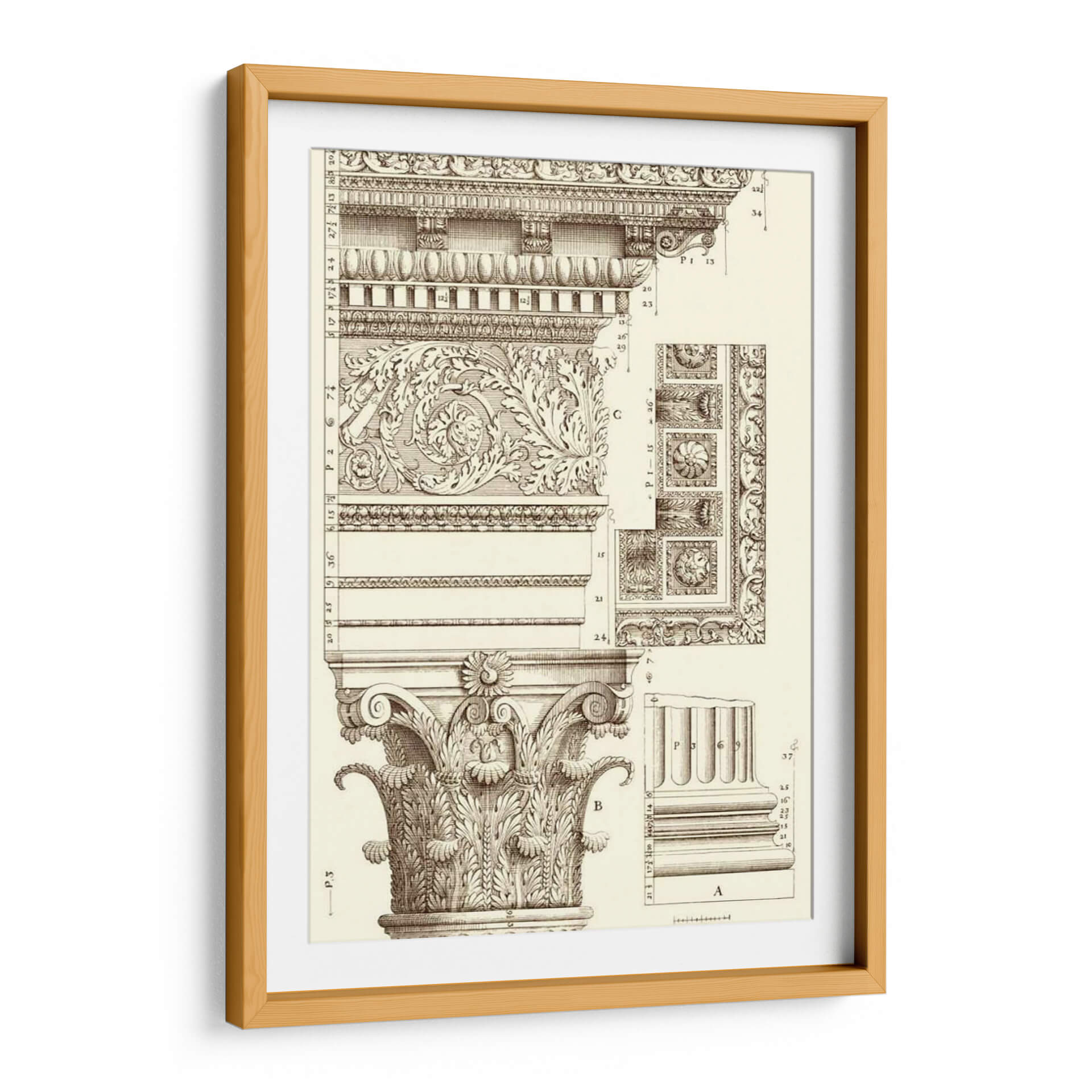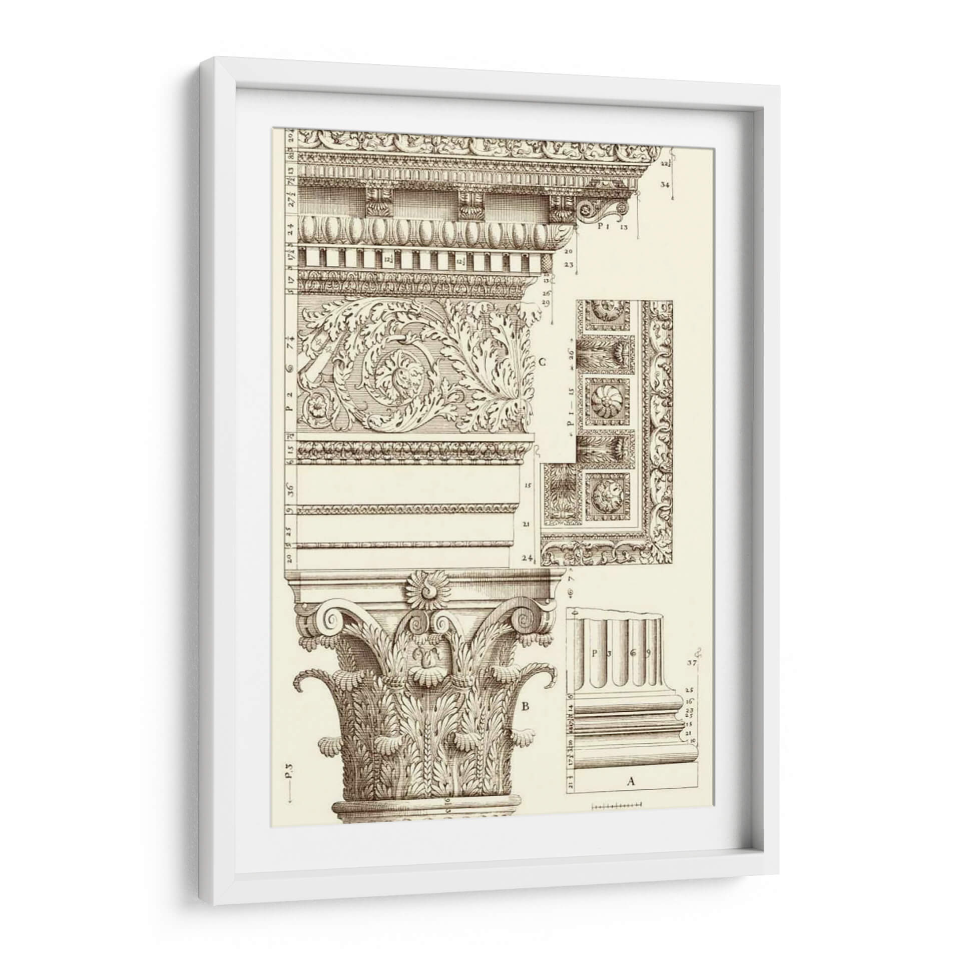 Sumérgete en la elegancia arquitectónica con "Corinto Detalle V", una obra de arte que evoca la grandeza de los diseños clásicos. Este cuadro decorativo presenta un intrincado estudio de los órdenes arquitectónicos, centrándose en la majestuosidad de una columna corintia y sus elementos decorativos. La detallada ilustración en sepia, con sus finas líneas y sombreados precisos, crea una atmósfera de estudio y erudición, transportando al espectador a un taller de arquitectura o a una antigua biblioteca. Los motivos ornamentales, llenos de volutas y hojas de acanto, exhiben una maestría artesanal que celebra la belleza de la forma y la simetría. Ideal para espacios que buscan un toque de sofisticación atemporal, como estudios, bibliotecas privadas, o salas de estar con un estilo clásico o ecléctico. Este cuadro decorativo no solo embellece, sino que también inspira admiración por la historia del arte y la arquitectura, convirtiéndose en un punto focal de conversación y aprendizaje en cualquier ambiente.