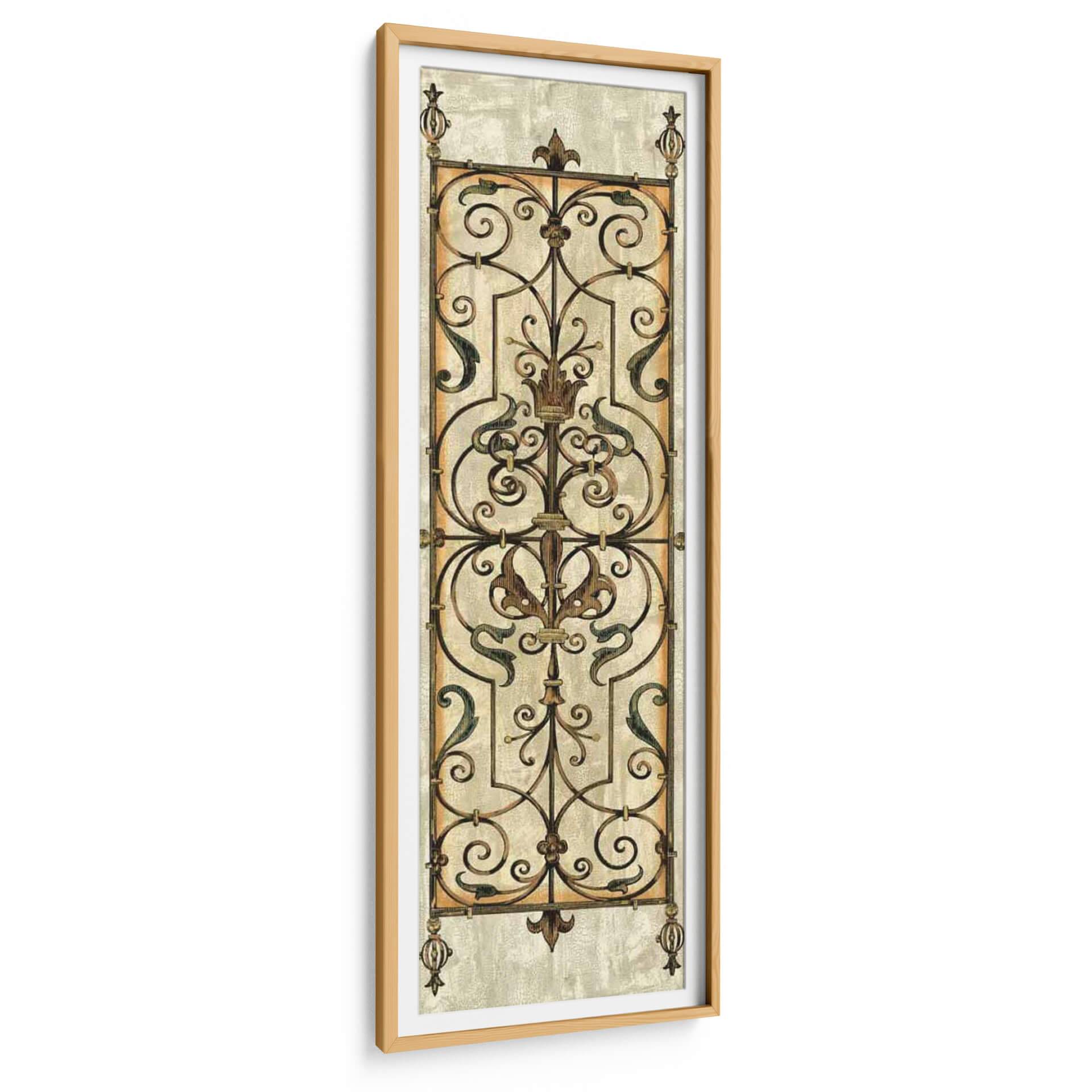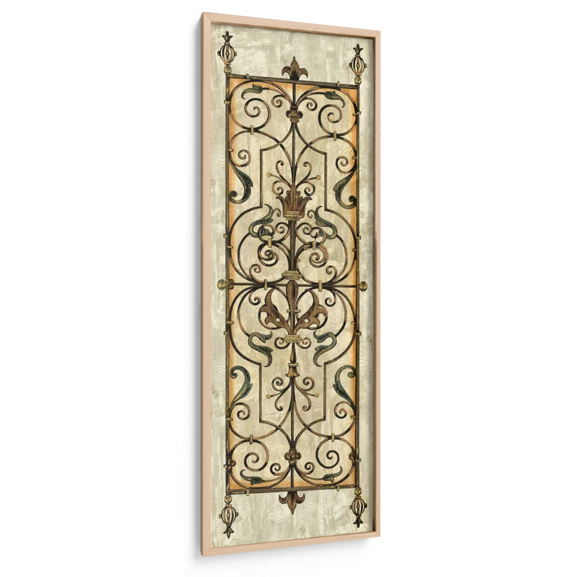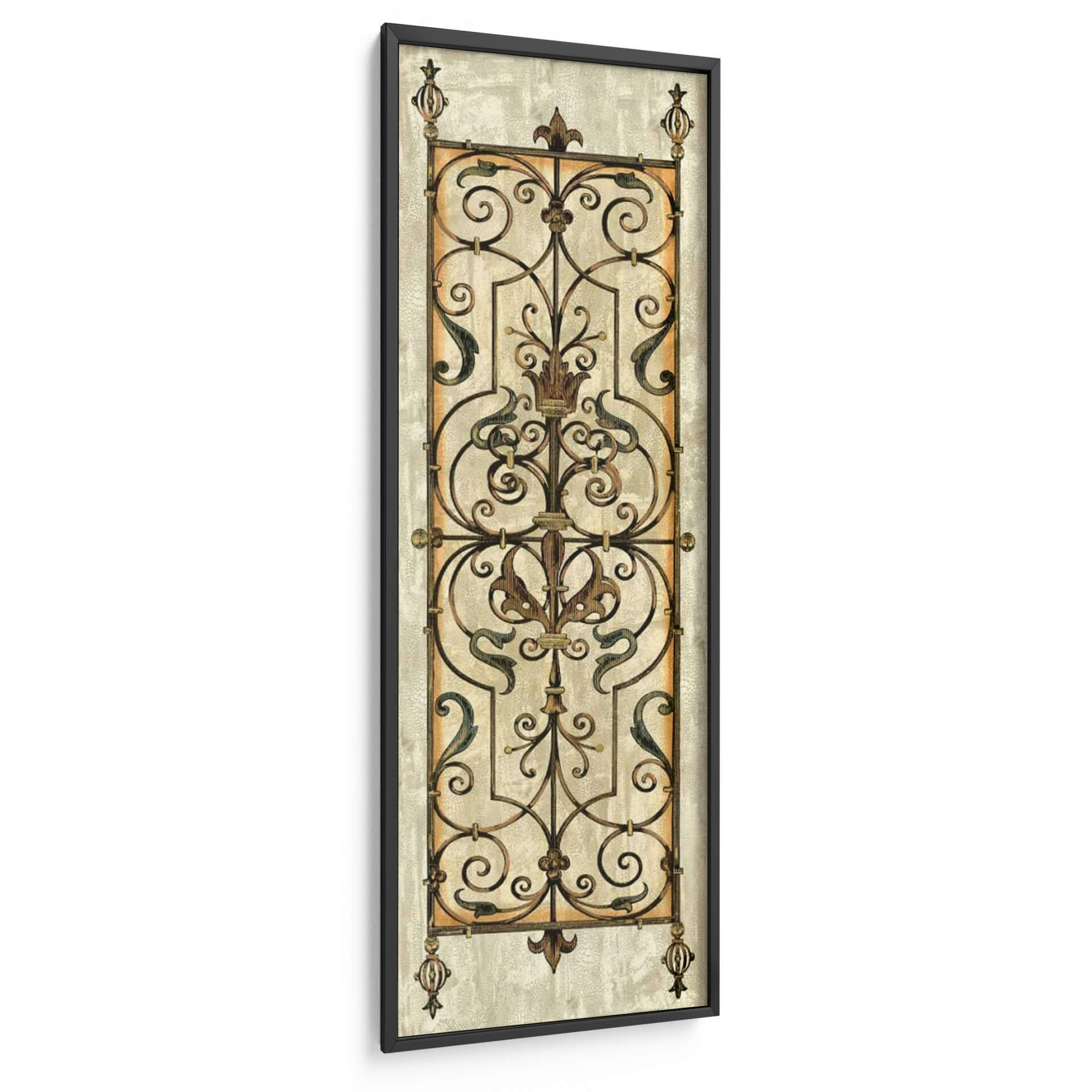 Transforma tu espacio con la elegancia atemporal del cuadro decorativo "Crackled Verdete Panel I". Esta obra de arte, creada por Vision Studio, evoca la sofisticación de las rejas de hierro forjado clásicas, fusionando un diseño intrincado con una paleta de colores sutilmente envejecida. Los tonos tierra, verdes apagados y toques de dorado se entrelazan en un patrón simétrico que atrae la mirada y añade profundidad visual. La textura, reminiscente de un panel antiguo con un acabado craquelado, confiere una sensación de historia y autenticidad a la pieza, haciéndola perfecta para interiores que buscan un aire de refinamiento y carácter. Ideal como punto focal en una sala de estar, un pasillo elegante o incluso para añadir un toque de distinción a un estudio. Este cuadro decorativo no es solo una imagen, es una ventana a un mundo de diseño clásico con un toque contemporáneo, capaz de inspirar calma y admiración en cualquier observador, aportando una atmósfera de lujo discreto y personalidad única a tu hogar u oficina.