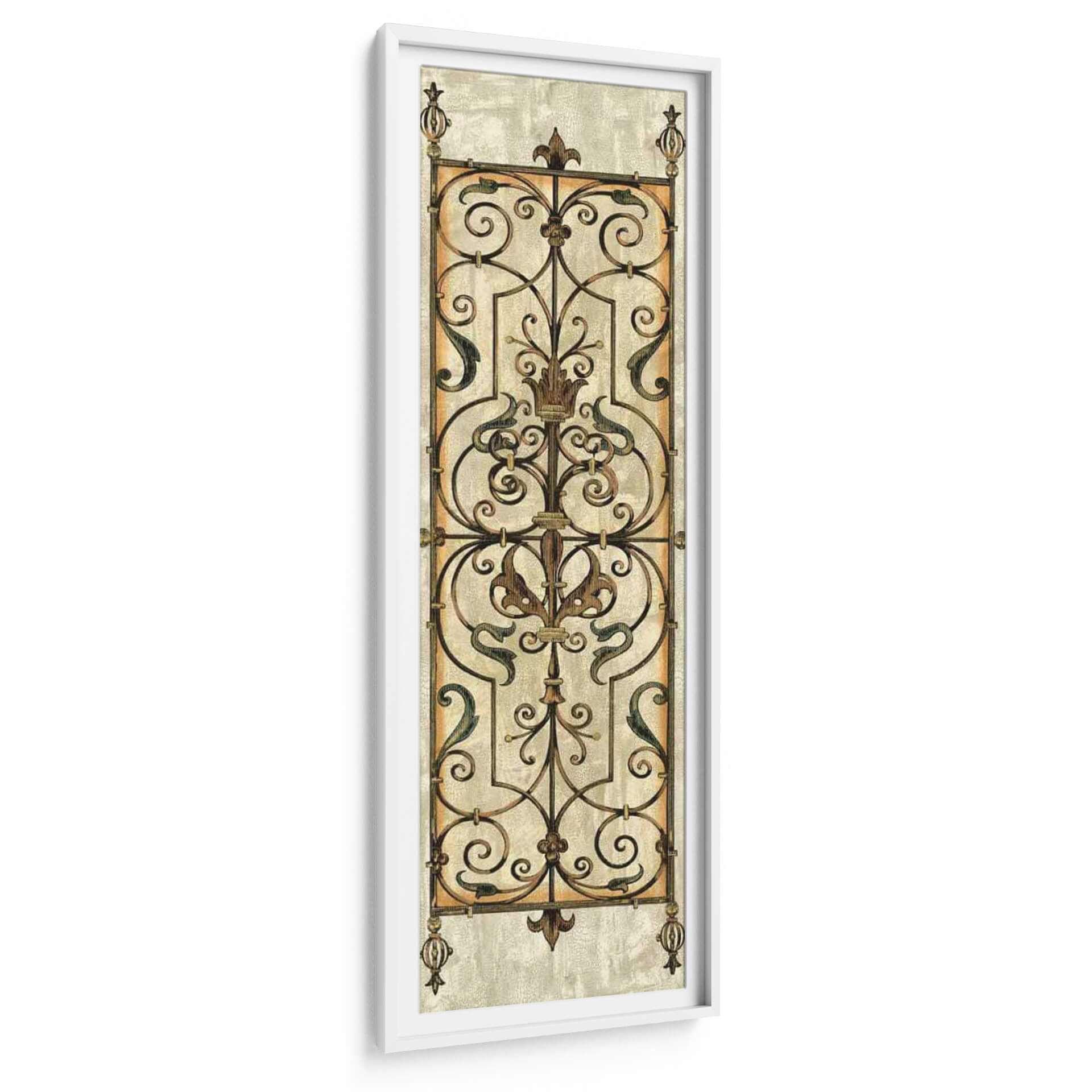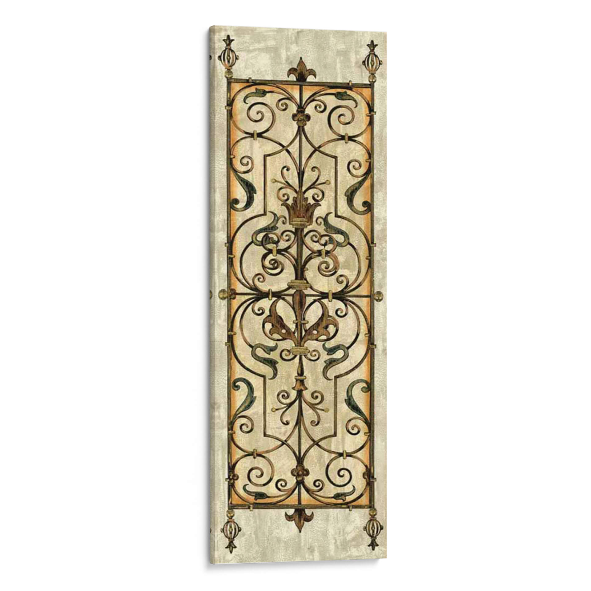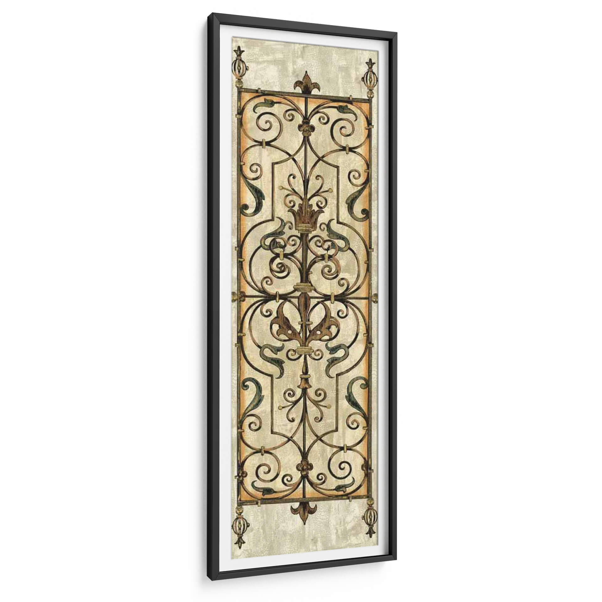 Transforma tu espacio con la elegancia atemporal del cuadro decorativo "Crackled Verdete Panel I". Esta obra de arte, creada por Vision Studio, evoca la sofisticación de las rejas de hierro forjado clásicas, fusionando un diseño intrincado con una paleta de colores sutilmente envejecida. Los tonos tierra, verdes apagados y toques de dorado se entrelazan en un patrón simétrico que atrae la mirada y añade profundidad visual. La textura, reminiscente de un panel antiguo con un acabado craquelado, confiere una sensación de historia y autenticidad a la pieza, haciéndola perfecta para interiores que buscan un aire de refinamiento y carácter. Ideal como punto focal en una sala de estar, un pasillo elegante o incluso para añadir un toque de distinción a un estudio. Este cuadro decorativo no es solo una imagen, es una ventana a un mundo de diseño clásico con un toque contemporáneo, capaz de inspirar calma y admiración en cualquier observador, aportando una atmósfera de lujo discreto y personalidad única a tu hogar u oficina.