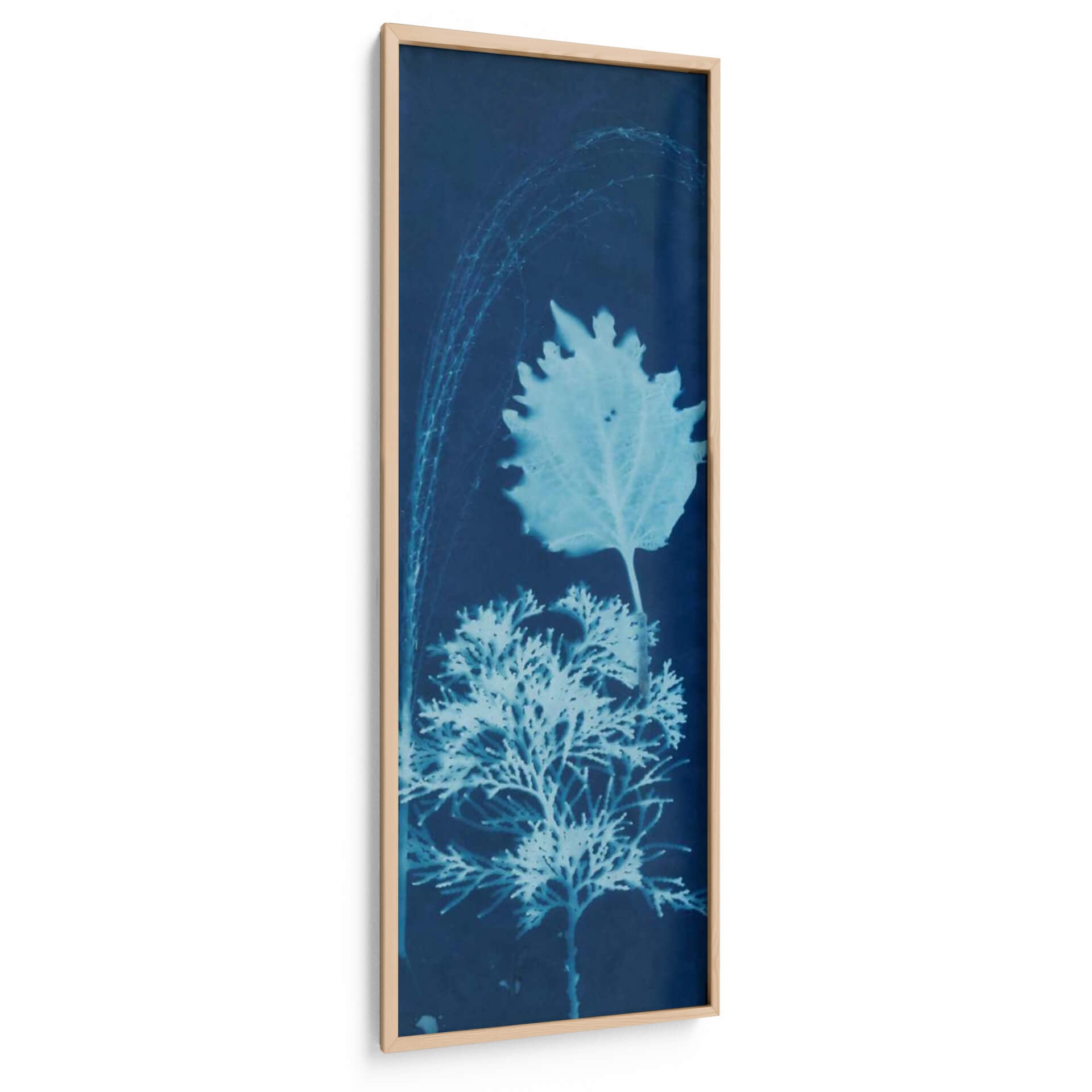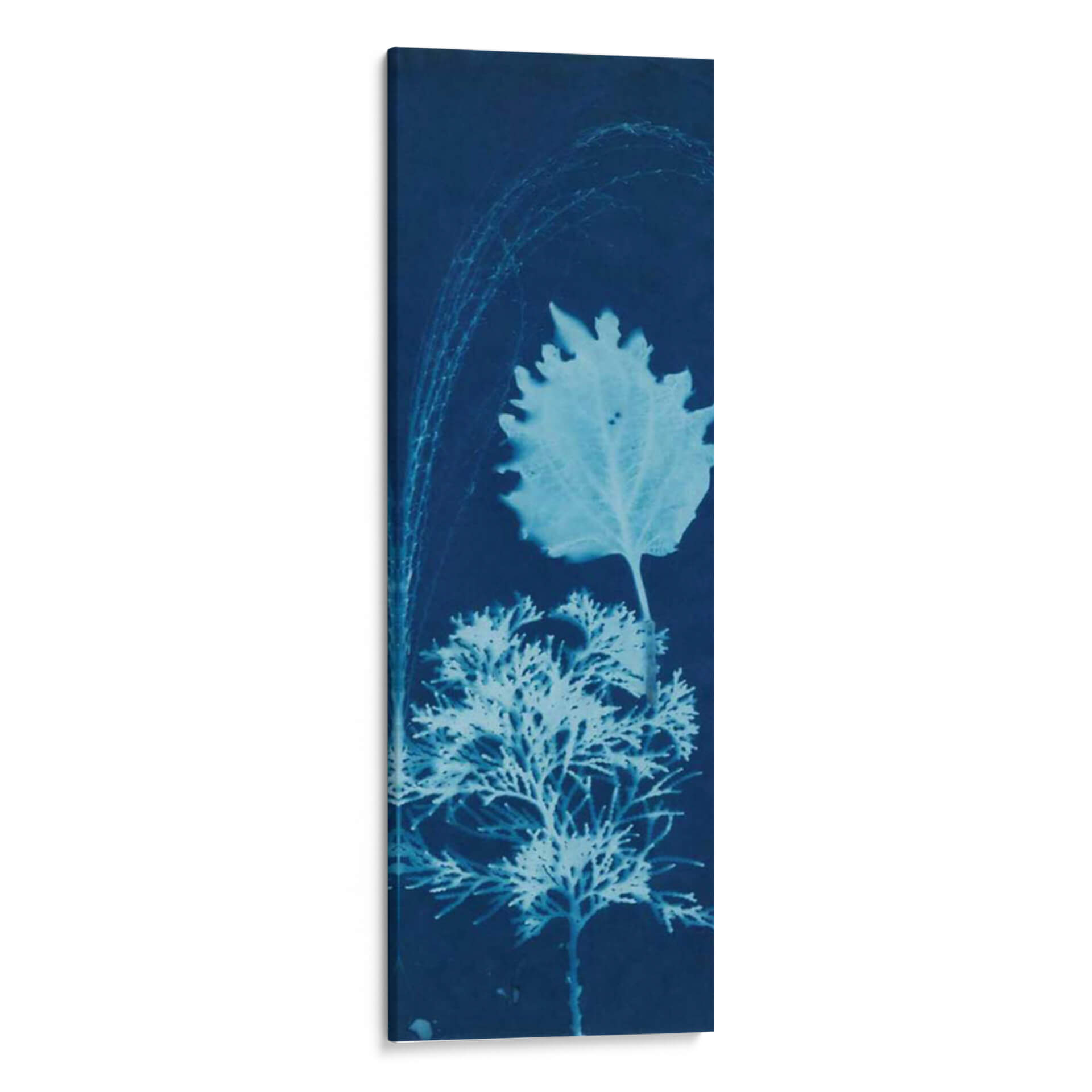 Adéntrate en la serena belleza de 'Cyanotype No.13', una obra de arte de Jenna Guthrie que captura la delicadeza de la naturaleza en tonos profundos de azul cian. Esta pieza se caracteriza por su composición vertical, donde una detallada hoja de árbol se alza sobre un intrincado arbusto o planta coralina, evocando la simplicidad y la complejidad del mundo botánico. Las líneas etéreas y la textura sutil creada por la técnica del cianotipo añaden una capa de misterio y encanto, transformando elementos orgánicos en visiones casi oníricas. El contraste entre las formas definidas de las plantas y el fondo oscuro crea un efecto visual hipnótico. Este cuadro decorativo es perfecto para añadir un toque de elegancia natural y tranquilidad a cualquier espacio, ya sea una sala de estar, un dormitorio o una oficina. Su paleta de azules profundos y blancos pálidos aporta una sensación de calma y frescura, ideal para crear un ambiente de relajación. 'Cyanotype No.13' es una invitación a contemplar la belleza intrínseca de las formas naturales, presentada de una manera artística y moderna que resuena con quienes buscan una decoración que inspire paz y conexión con la naturaleza. Descubre la magia del cianotipo y cómo esta obra puede ser el centro de atención en tu hogar.
