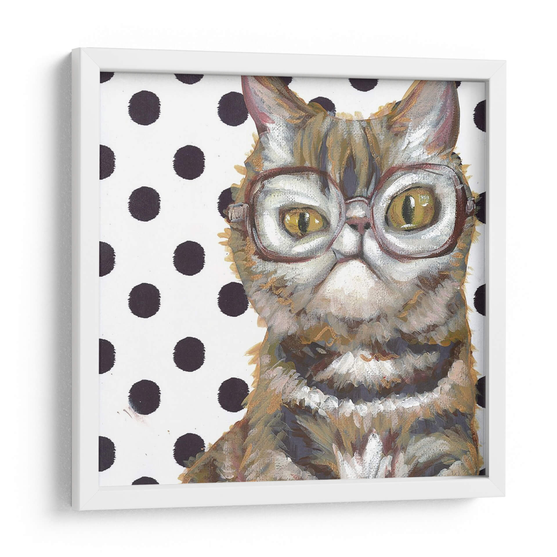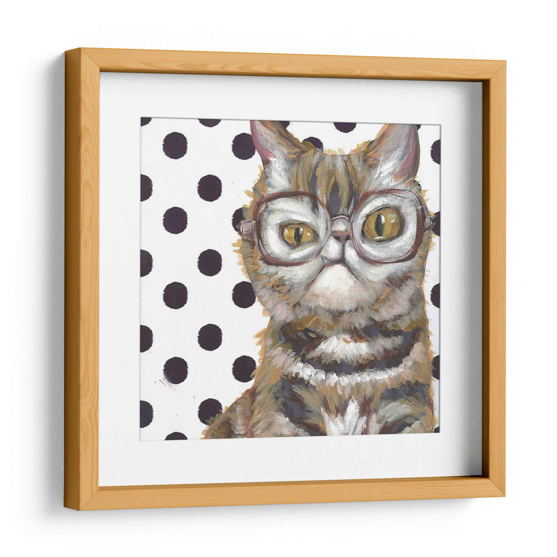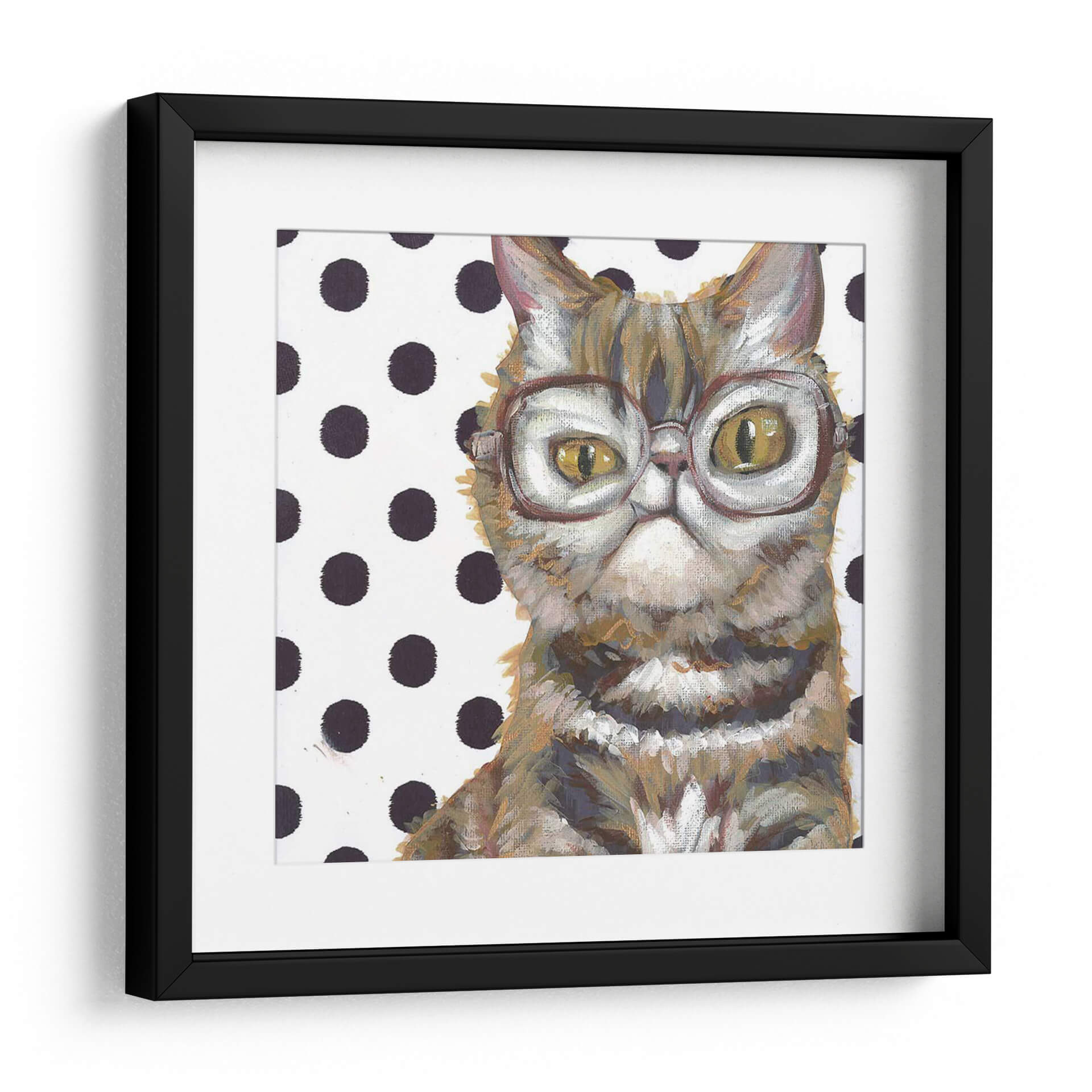 Este cautivador cuadro decorativo, "Dapper Animal Ix" de Jennifer Rutledge, presenta un retrato juguetón y sofisticado de un gato con gafas, posado sobre un fondo de lunares negros y blancos. La obra utiliza una paleta de colores terrosos y dorados que contrastan con el fondo nítido, creando una pieza visualmente dinámica. El estilo expresionista, con pinceladas audaces y visibles, aporta textura y carácter al felino, acentuando su personalidad peculiar. Los ojos penetrantes del gato, resaltados por sus gafas, capturan la atención y añaden un toque de humor e inteligencia a la composición. Este cuadro es ideal para añadir un punto de interés y un aire de elegancia desenfadada a cualquier espacio, ya sea una sala de estar moderna, un estudio o una oficina. Su encanto único lo convierte en una pieza de conversación perfecta para los amantes de los animales y del arte contemporáneo. La combinación de elementos clásicos y modernos, junto con su atmósfera alegre pero refinada, asegura que "Dapper Animal Ix" se convierta en el foco de atención de tu decoración.