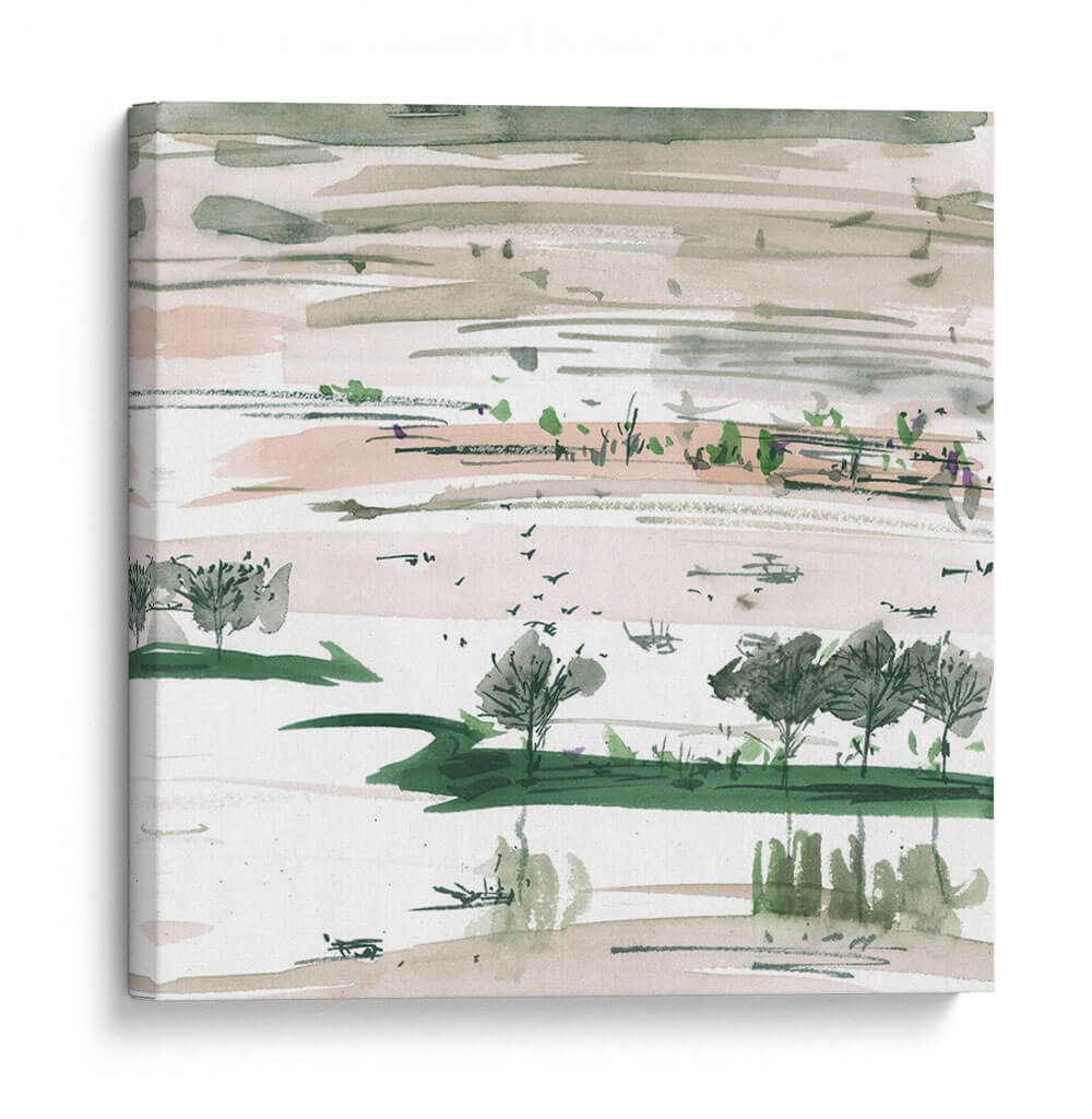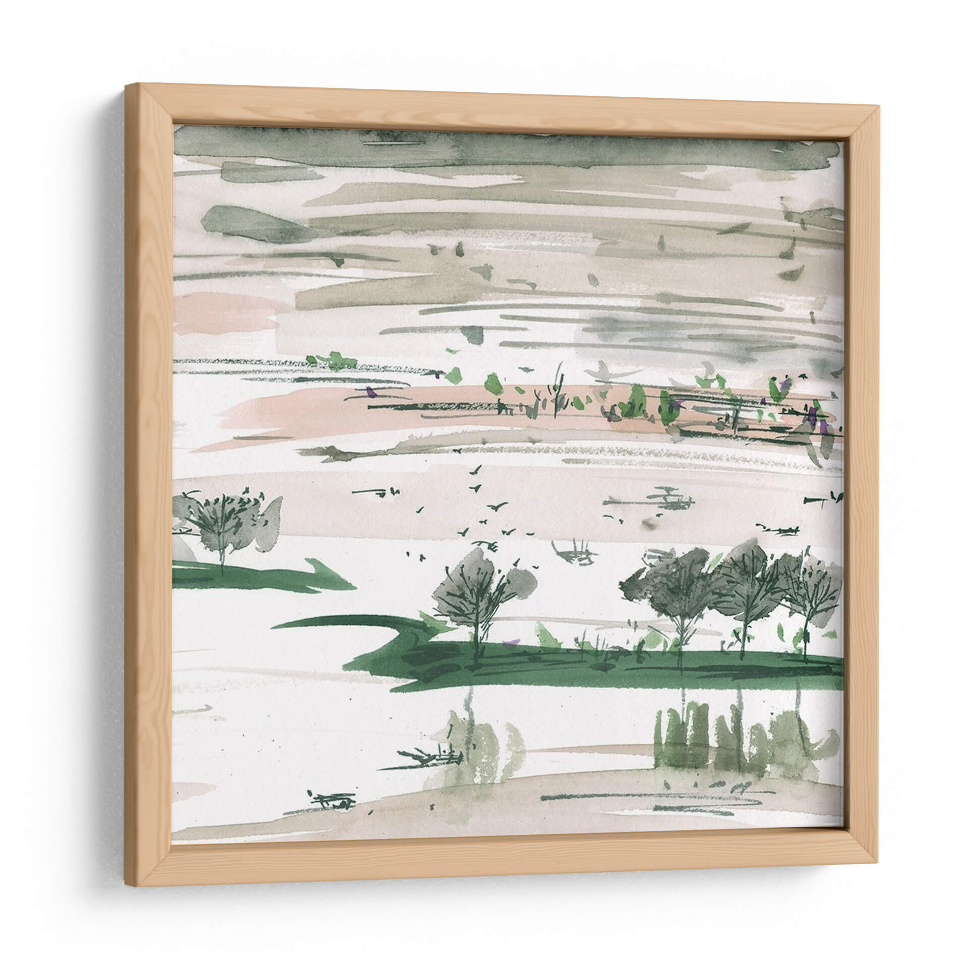 Sumérgete en la serenidad de "De Aquí A Un Lugar Yo" de Melissa Wang, una obra de arte que captura la esencia de un paisaje evocador con una técnica de acuarela sutil y etérea. Los suaves tonos pastel, combinados con verdes y grises terrosos, crean una atmósfera de calma y contemplación, invitando a la reflexión. Las pinceladas sueltas y fluidas dan vida a árboles estilizados y una bandada de pájaros en vuelo, sugiriendo movimiento y libertad. La composición horizontal, dividida en capas de color, evoca la vastedad de un horizonte o un reflejo en el agua, añadiendo profundidad y misterio. Este cuadro decorativo es ideal para quienes buscan añadir un toque de tranquilidad y sofisticación a su hogar u oficina. Perfecto para dormitorios, salas de estar o estudios donde se desee crear un ambiente de paz y conexión con la naturaleza. La obra de Melissa Wang es una invitación a pausar, respirar y encontrar belleza en la simplicidad de las formas y los colores, transformando cualquier espacio en un santuario personal. Descubre la magia del arte abstracto y contemporáneo que habla directamente al alma.