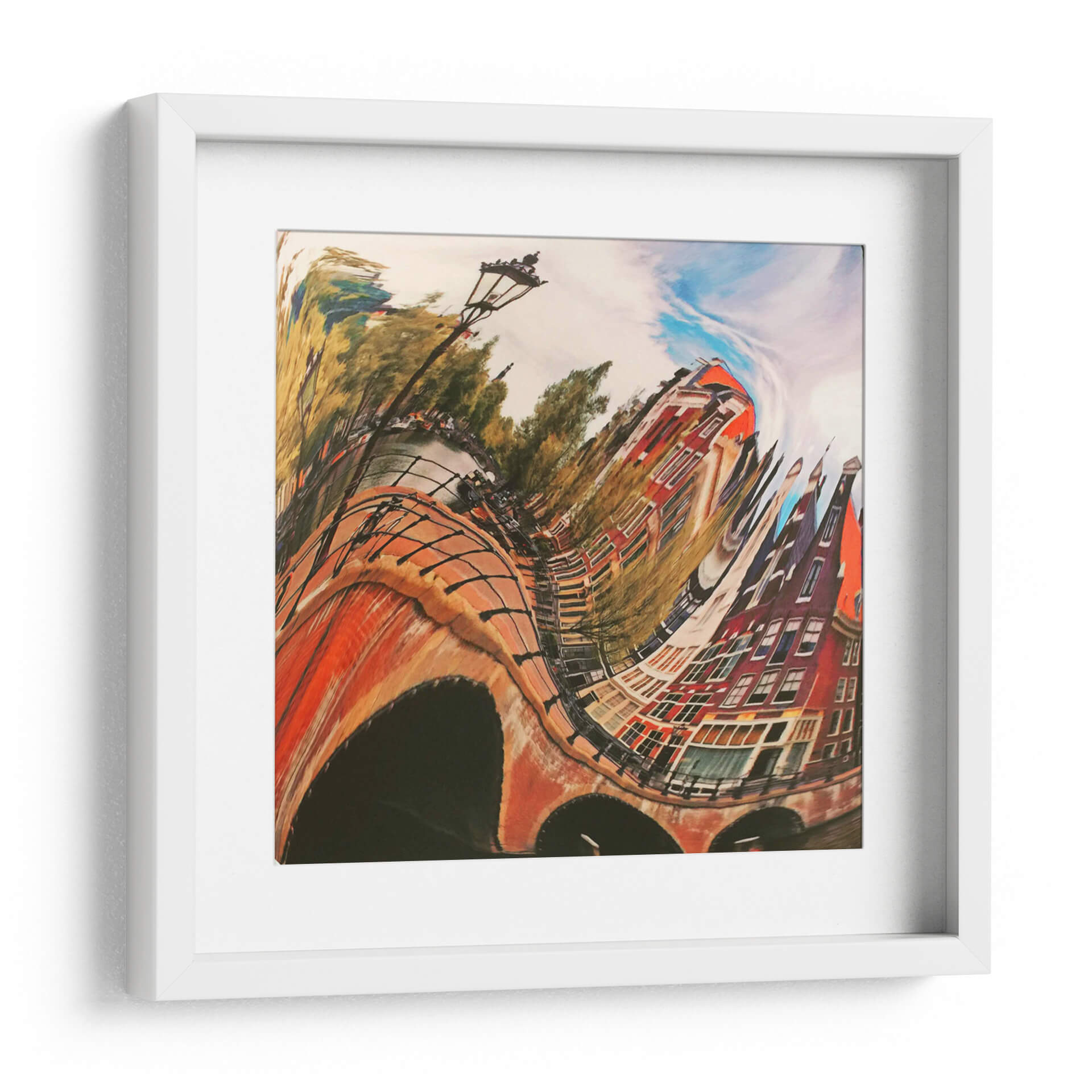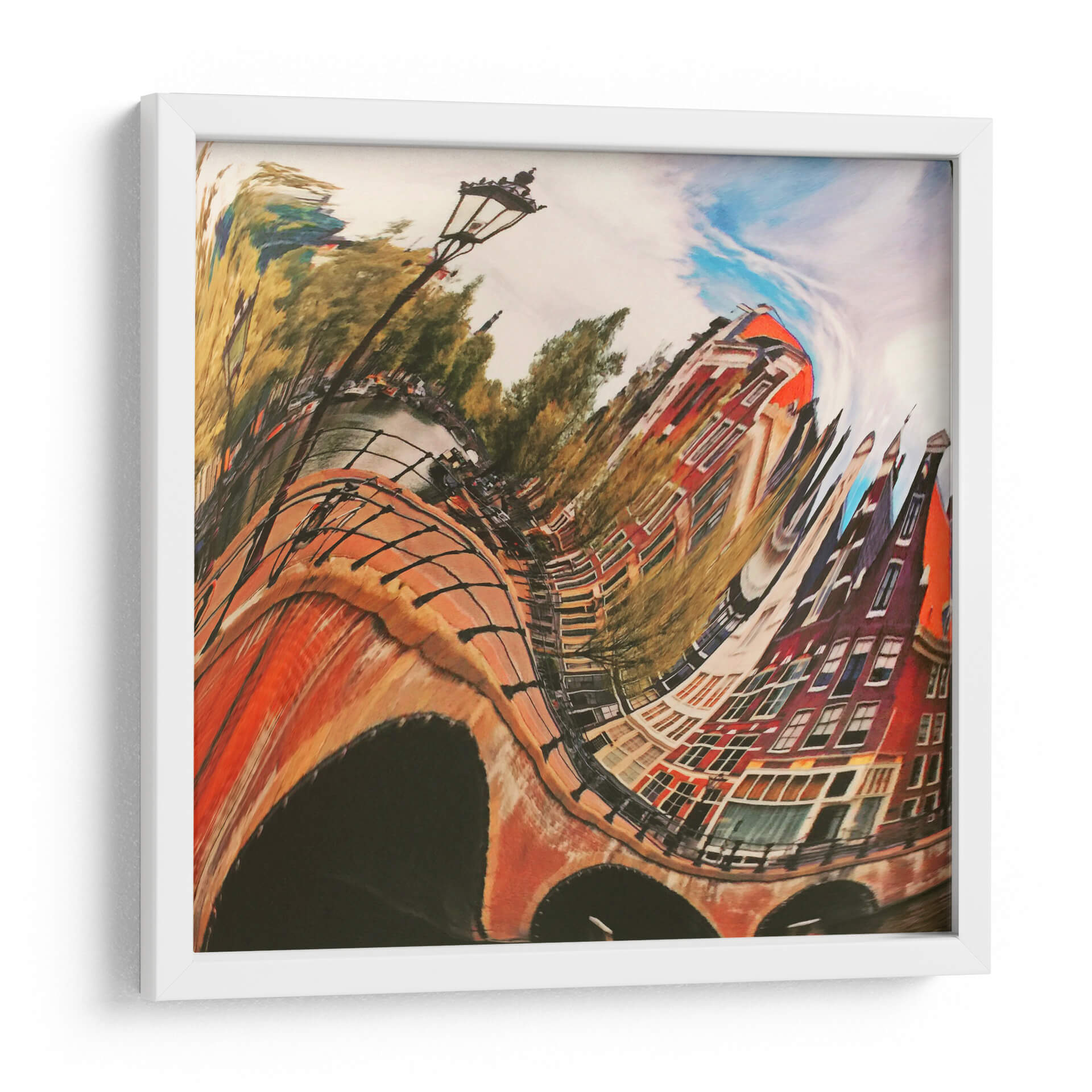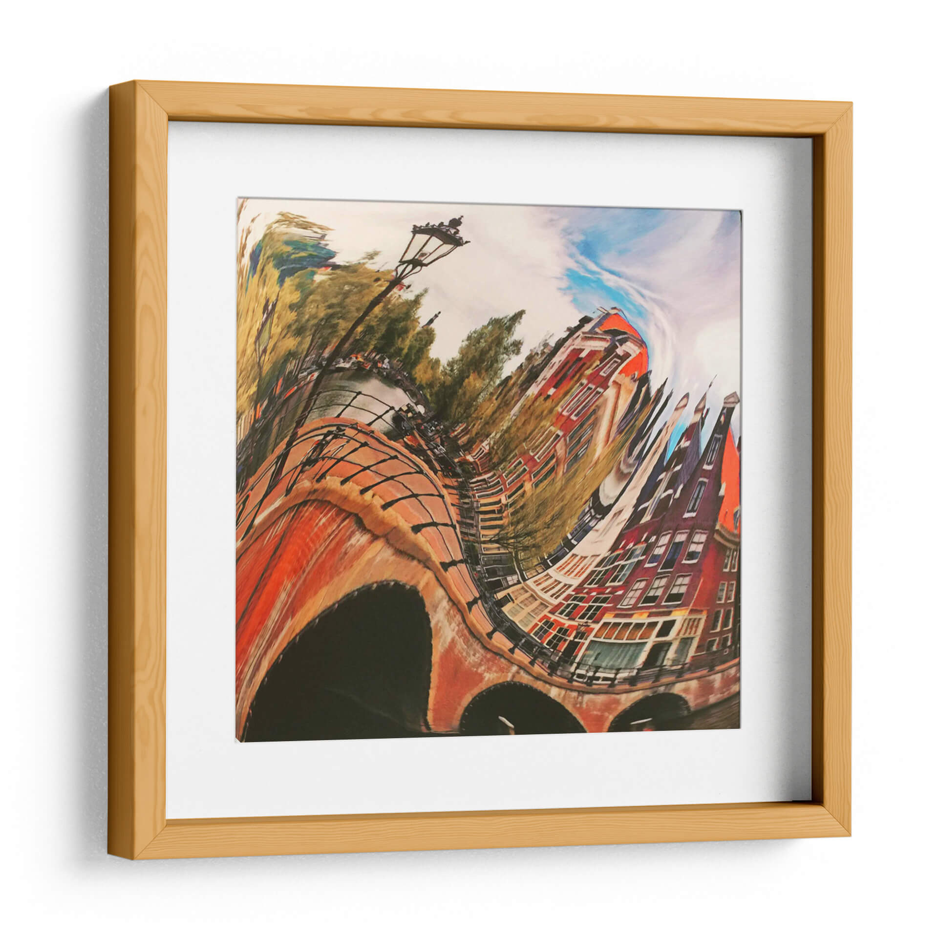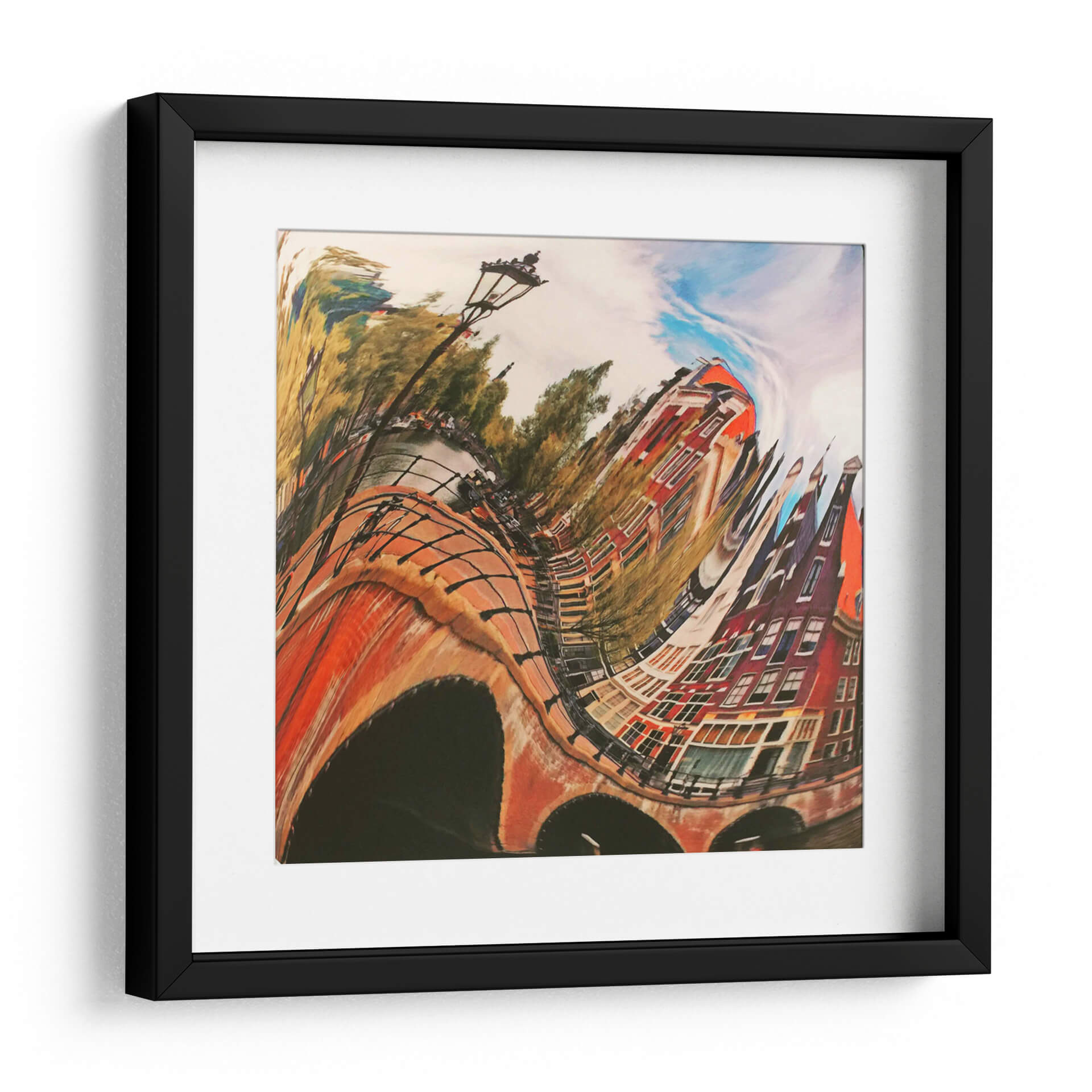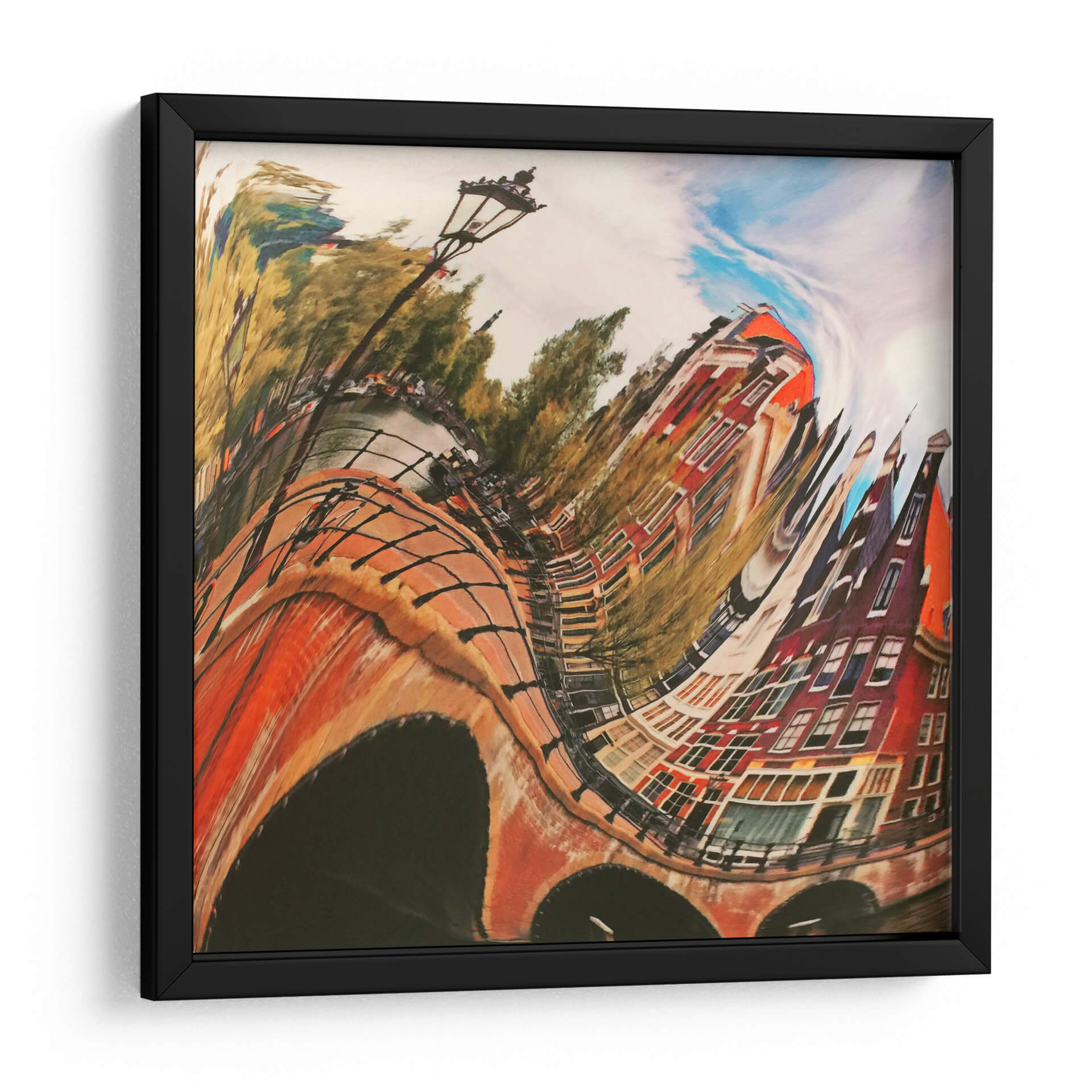 Embárquese en un viaje visual surrealista con "Distorsión de Ámsterdam", un cuadro decorativo que reimagina la icónica ciudad holandesa a través de una lente onírica. Esta obra captura la esencia de los canales y la arquitectura de Ámsterdam, pero los deforma de manera fascinante, creando un efecto de movimiento y fluidez que hipnotiza al espectador. Predominan los vibrantes tonos anaranjados de los edificios y los puentes, contrastando con los verdes otoñales de los árboles y el azul dinámico del cielo. La composición, aunque distorsionada, mantiene la familiaridad de un paisaje urbano, invitando a reflexionar sobre la percepción y la realidad. La iluminación parece capturar un momento fugaz, añadiendo un toque de realismo a la abstracción general. Ideal para espacios que buscan un toque de originalidad y conversación, este cuadro decorativo es perfecto para salas de estar modernas, estudios o cualquier lugar donde se desee inyectar una dosis de arte contemporáneo y misterio. Su estilo único y su paleta de colores cálidos pero intrigantes lo convierten en una pieza central memorable que estimula la imaginación y añade profundidad a la decoración.
