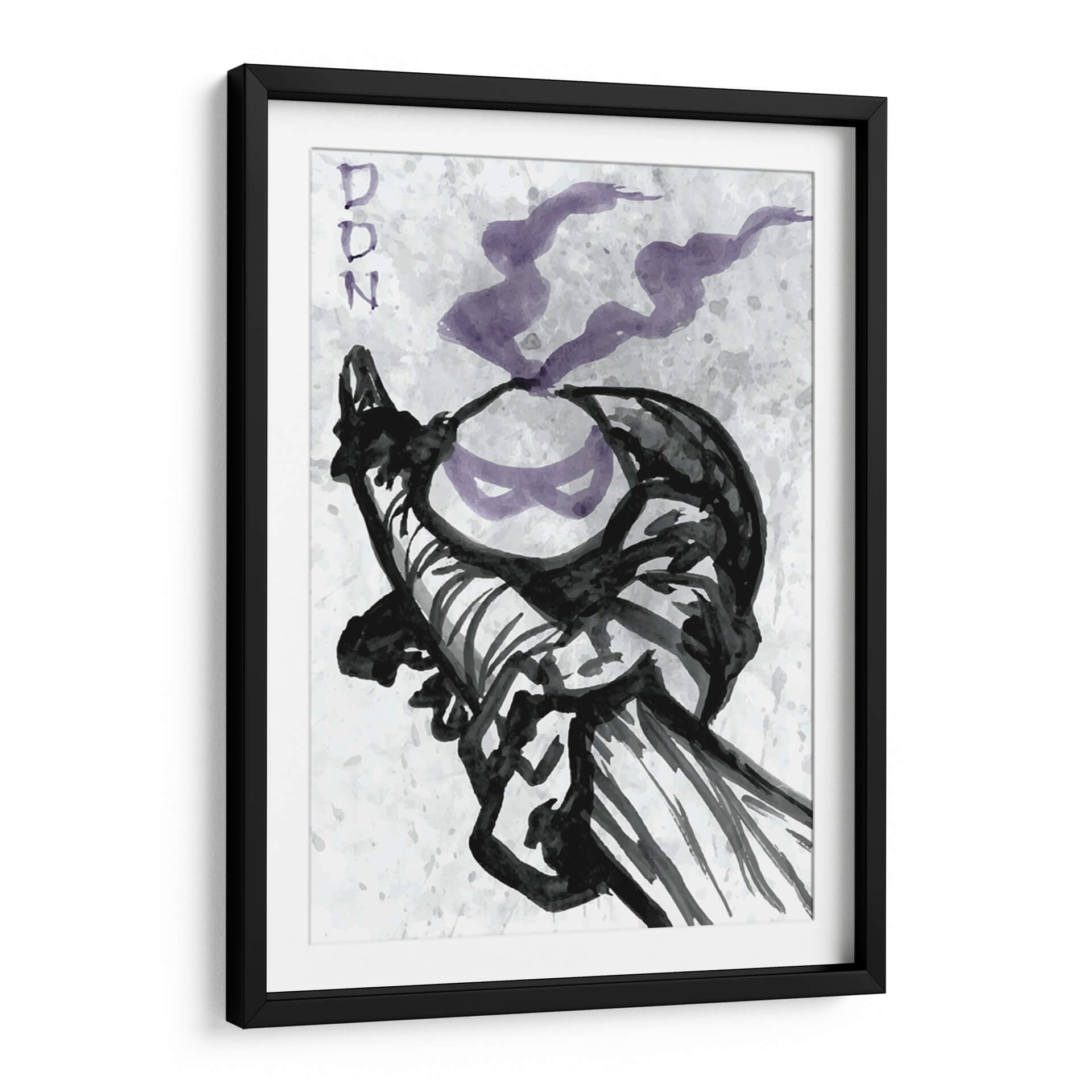 Sumérgete en el enigmático mundo del arte contemporáneo con este impactante cuadro decorativo, "Don". Capturando una esencia audaz y moderna, la obra presenta una figura icónica definida por trazos expresionistas en negro y un sutil toque de morado etéreo. El fondo texturizado, con salpicaduras sutiles en tonos grises y blancos, otorga profundidad y un aire artístico distintivo, evocando una estética de arte urbano o ilustración conceptual. La composición se centra en el poder de la forma y la línea, creando una pieza que es a la vez dinámica y contemplativa. Este cuadro es perfecto para quienes buscan infundir personalidad y un toque de vanguardia en su hogar u oficina. Su paleta de colores limitada pero efectiva lo hace versátil para complementar una variedad de estilos decorativos, desde lo minimalista hasta lo ecléctico. Imagina cómo este cuadro decorativo se convertirá en el punto focal de tu sala de estar, estudio o incluso un espacio de trabajo creativo, aportando una dosis de carácter y conversación. Una elección ideal para amantes del arte que aprecian la fuerza del trazo y la evocación de figuras reconocibles a través de una lente abstracta y audaz, transformando cualquier pared en una galería de expresión contemporánea.