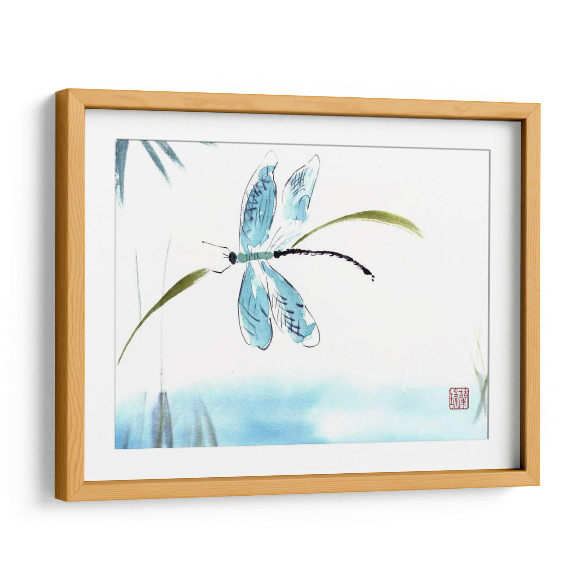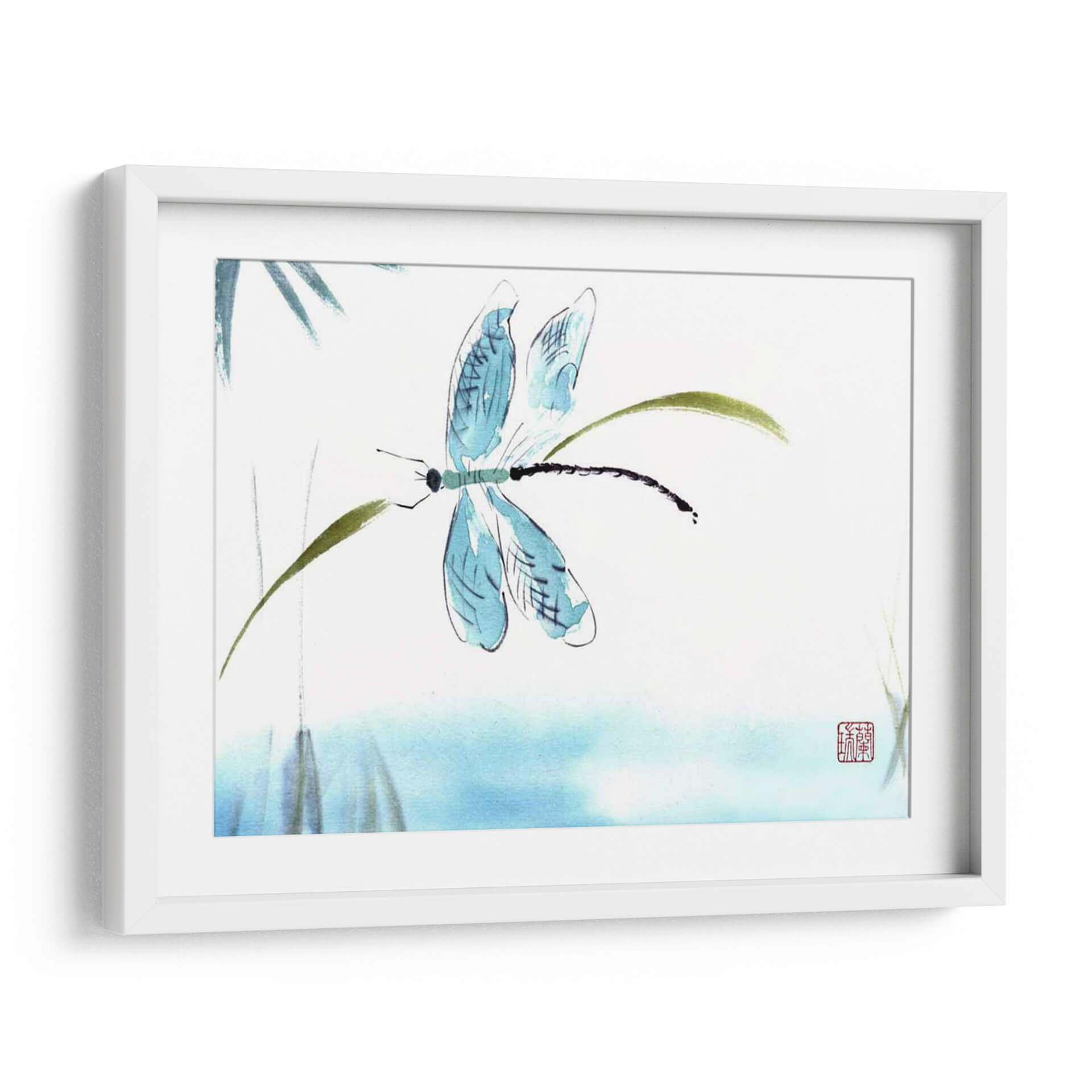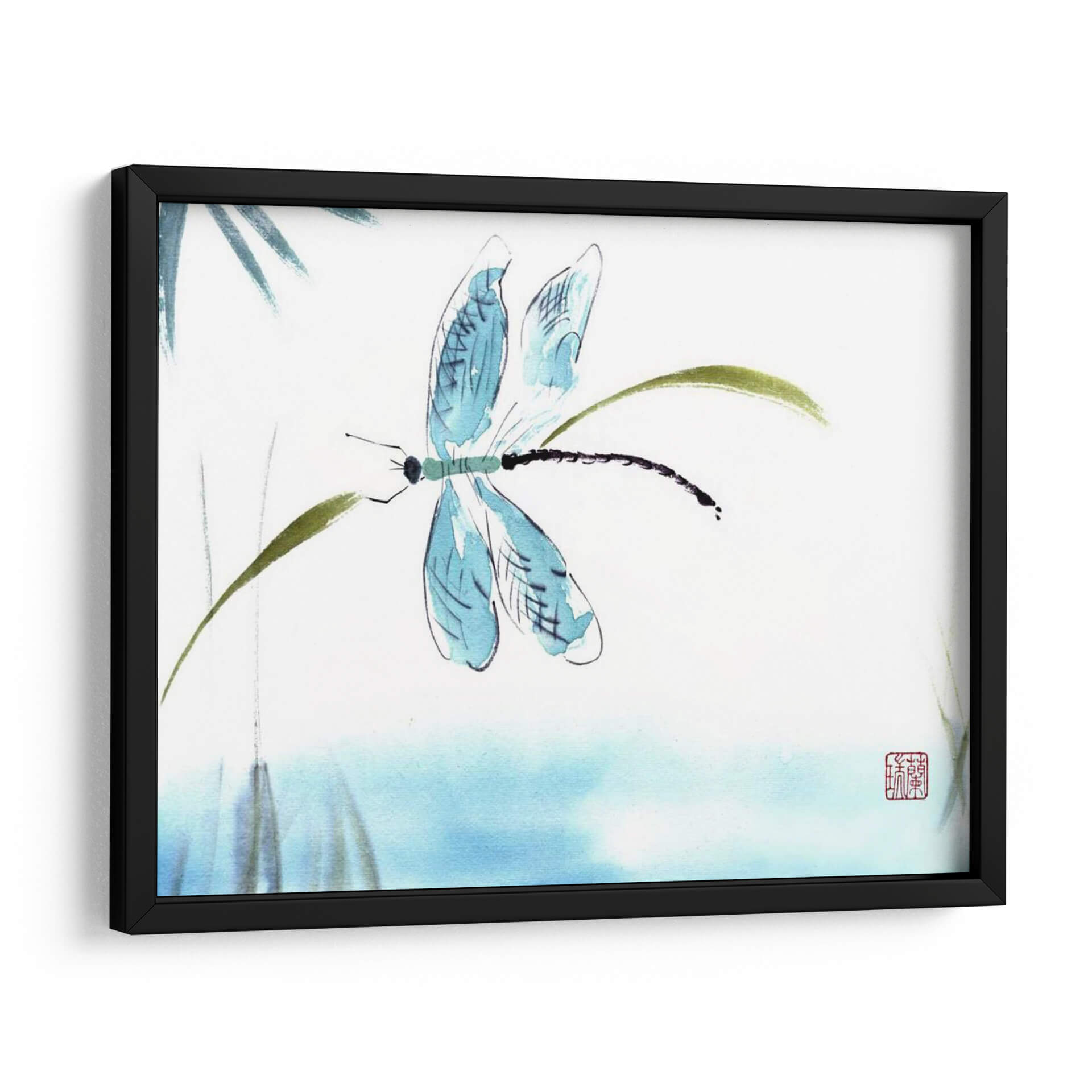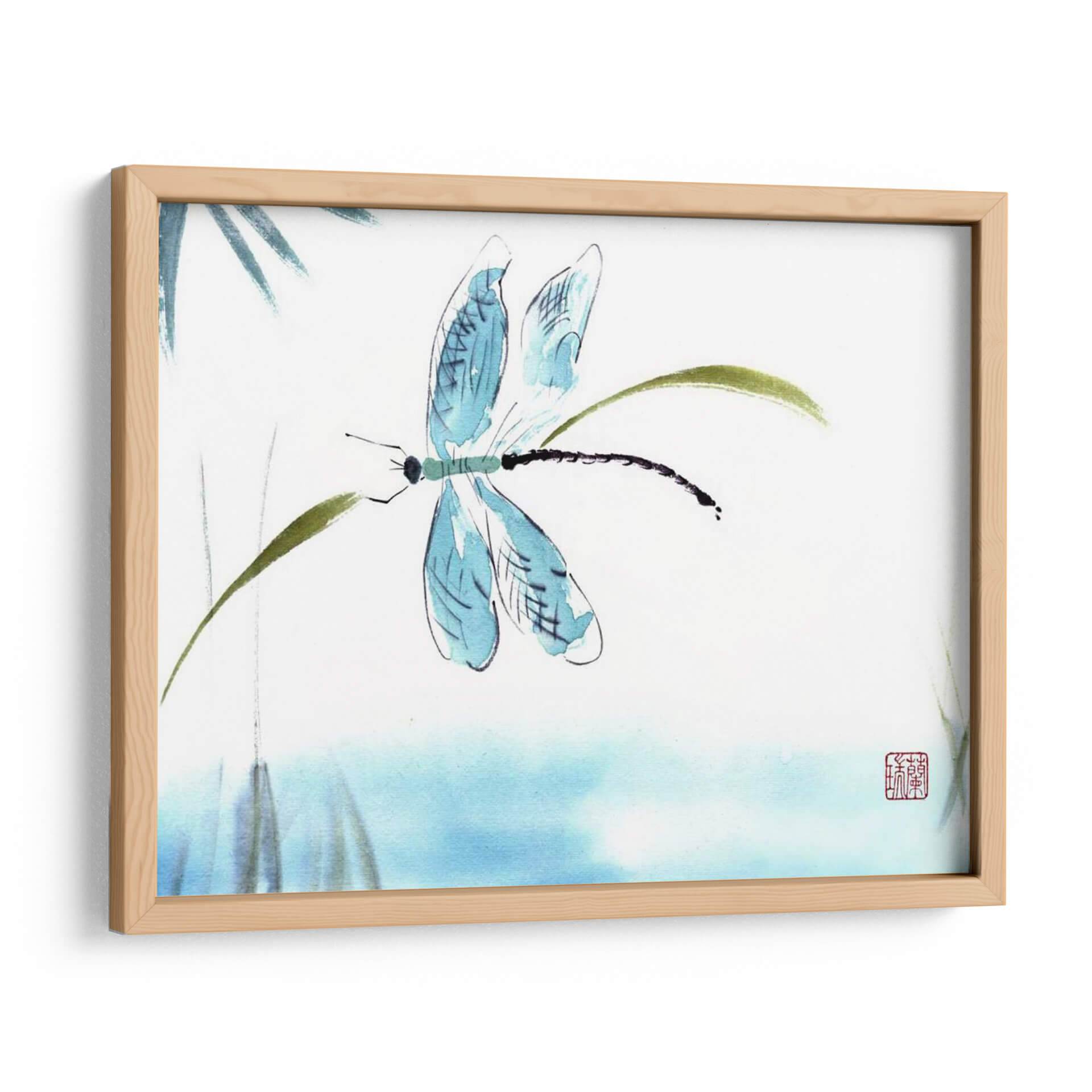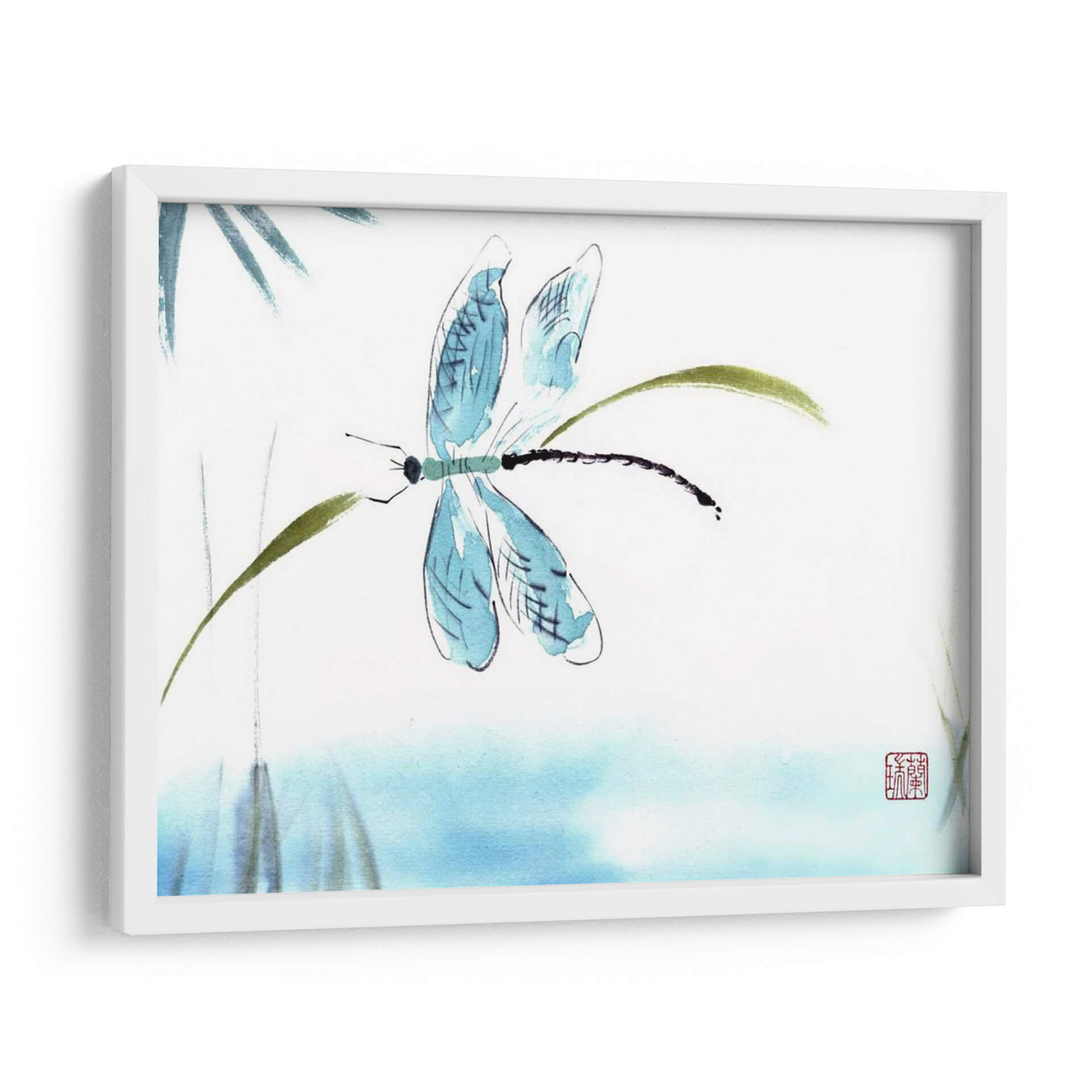 Sumérgete en la delicadeza y la serenidad con "El Tacto Ligero", una obra de arte contemporáneo que captura la etérea belleza de una libélula posada sobre tallos verdes. Realizada con una técnica inspirada en la acuarela y la tinta china, esta pieza evoca la calma y la armonía de la naturaleza. Los trazos fluidos y la paleta de colores suaves, dominada por azules celestes y verdes terrosos sobre un fondo blanco o de aguamarina tenue, crean una atmósfera de tranquilidad y ligereza. La composición minimalista se centra en la figura de la libélula, con sus alas translúcidas y su cuerpo alargado, invitando a la contemplación. Este cuadro decorativo es ideal para espacios que buscan un toque de paz y elegancia sutil, como dormitorios, salas de meditación o estudios. Su estilo artístico, que fusiona la precisión del dibujo con la expresividad de la pincelada suelta, lo convierte en una pieza versátil que complementa tanto decoraciones zen como modernas. Añade un susurro de naturaleza y sofisticación a tu hogar con este encantador cuadro de libélula.
