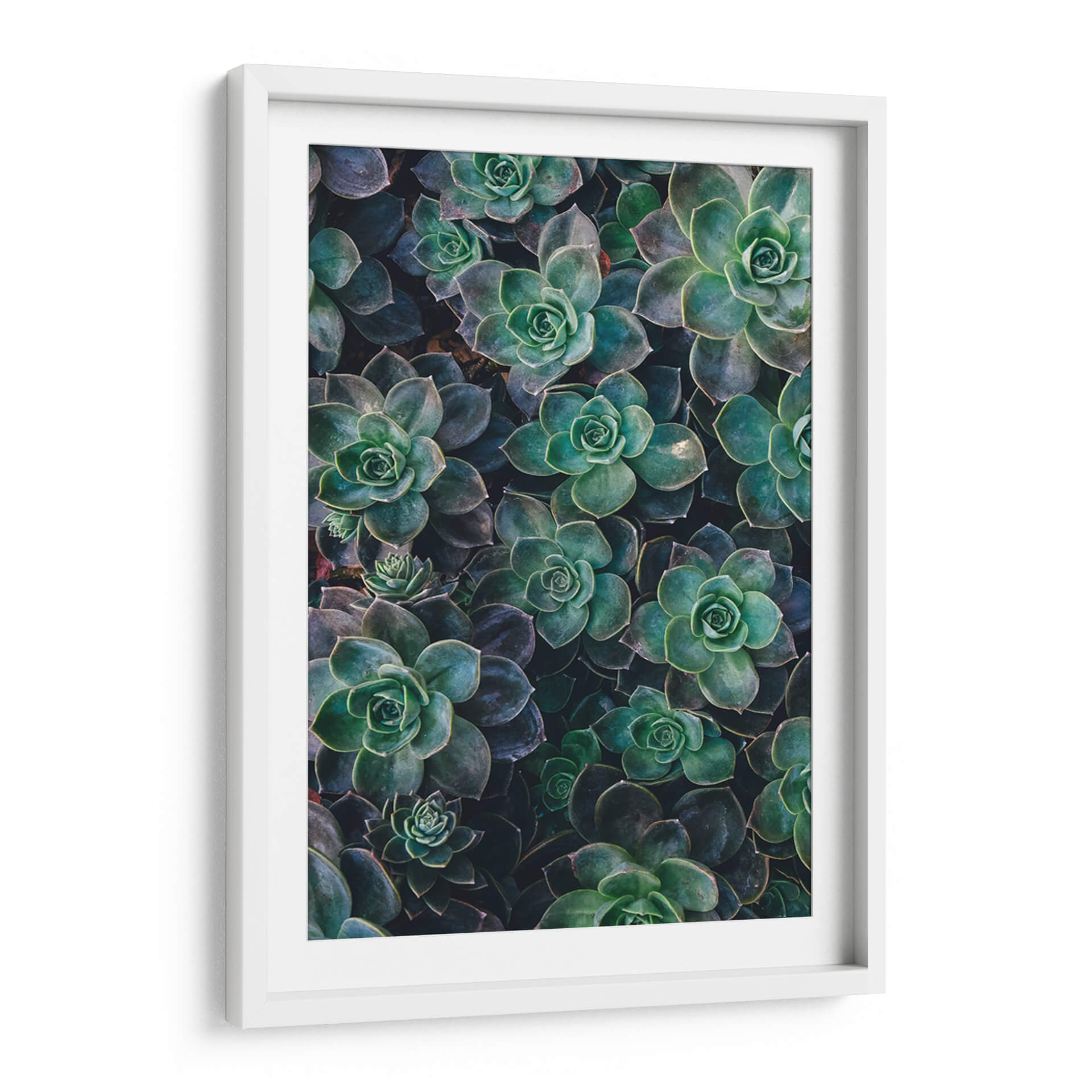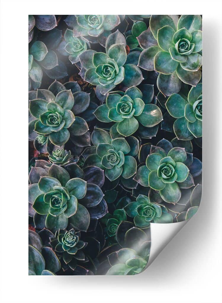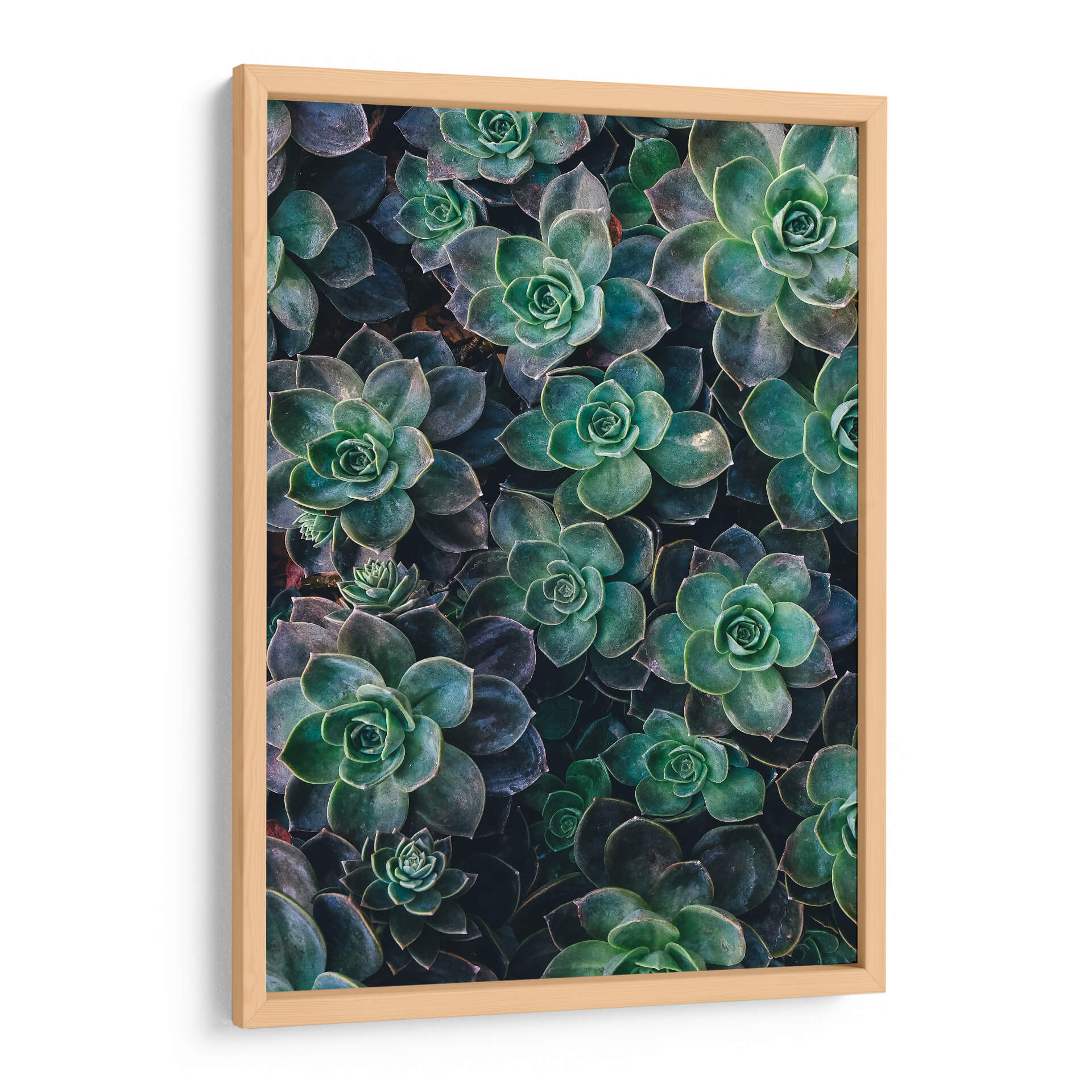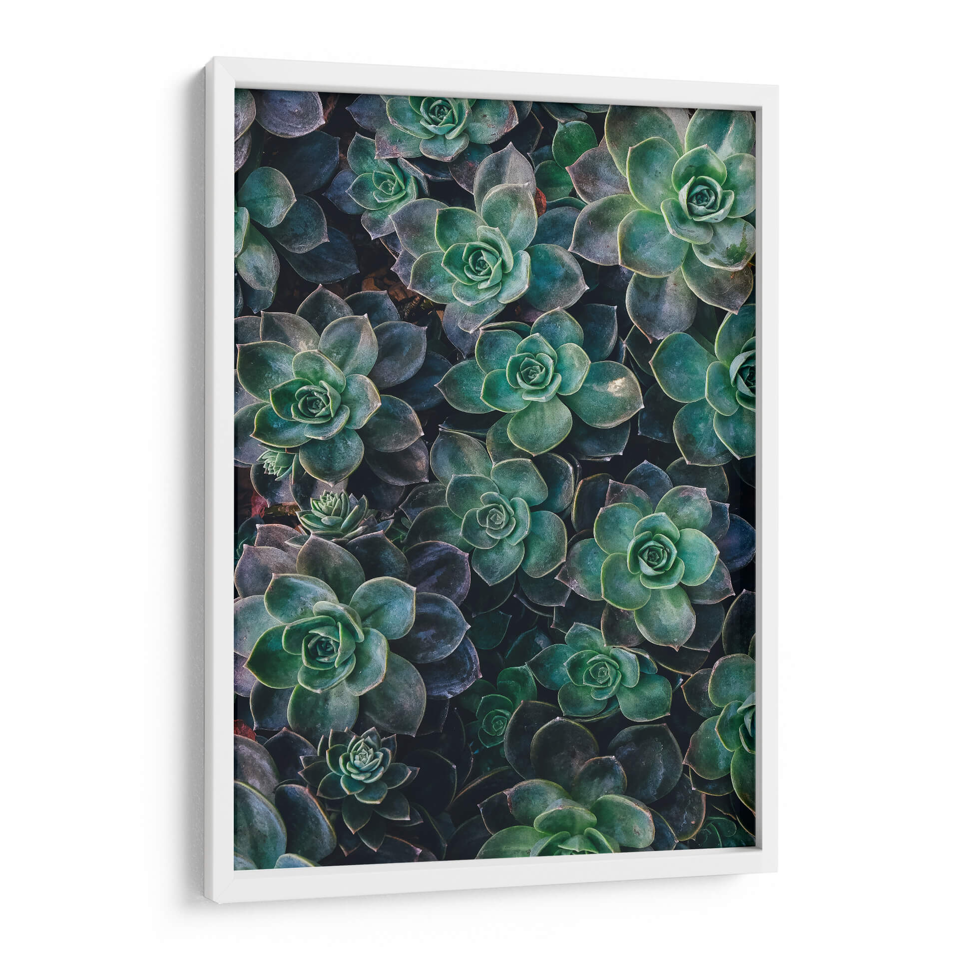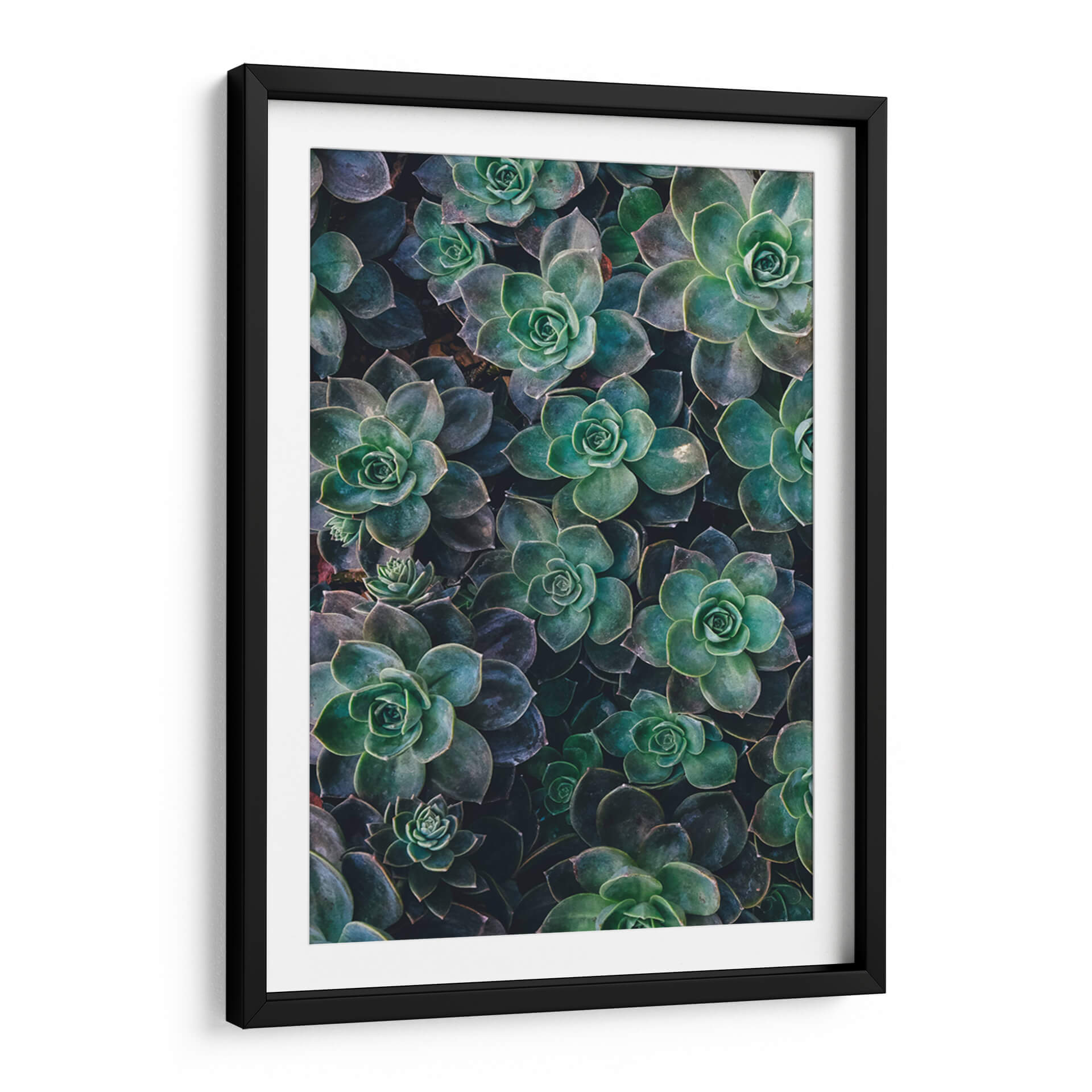 Sumérgete en la serenidad botánica con este cautivador cuadro decorativo, 'En el jardín de mi tía'. La obra presenta un primer plano detallado de suculentas, donde las formas geométricas de las rosetas verdes y azul verdoso se entrelazan con las sombras profundas y los tonos violáceos de las hojas circundantes. La composición, un mosaico orgánico, invita a la contemplación, evocando una sensación de calma y conexión con la naturaleza. Cada pétalo meticulosamente capturado y la sutil gradación de color crean una atmósfera de tranquilidad y frescura, perfecta para cualquier espacio que busque un toque de vitalidad natural. Este cuadro es ideal para añadir un elemento orgánico y moderno a tu sala de estar, un toque de serenidad a tu dormitorio o un foco de atención natural en tu oficina. Su riqueza visual y paleta de colores exuberantes lo convierten en una pieza versátil que complementa tanto decoraciones contemporáneas como más tradicionales. Transforma tu hogar en un oasis de paz con esta obra maestra botánica.