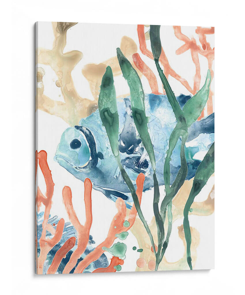 Sumérgete en la serena belleza del océano con "En El Kelp Ii", una obra de arte cautivadora de June Erica Vess. Este cuadro decorativo captura la delicadeza de la vida marina a través de una paleta de colores acuáticos que evoca tranquilidad y frescura. Observa cómo el artista plasma un pez azul en su hábitat natural, rodeado de exuberante vegetación marina en tonos verdes y coralinos vibrantes. La técnica acuarela, con sus lavados etéreos y detalles sutiles, confiere a la pieza una ligereza y un dinamismo únicos, invitando a la contemplación. Ideal para espacios que buscan un toque de naturaleza y calma, como dormitorios, baños o salones, "En El Kelp Ii" es una ventana a un mundo submarino lleno de paz y armonía. La composición, que dirige la mirada hacia el sereno habitante del mar, asegura que esta pieza se convierta en un punto focal inspirador en cualquier decoración. Añade una pincelada de serenidad marina y sofisticación contemporánea a tu hogar con este encantador cuadro decorativo, perfecto para quienes aprecian el arte con alma y la conexión con la naturaleza.