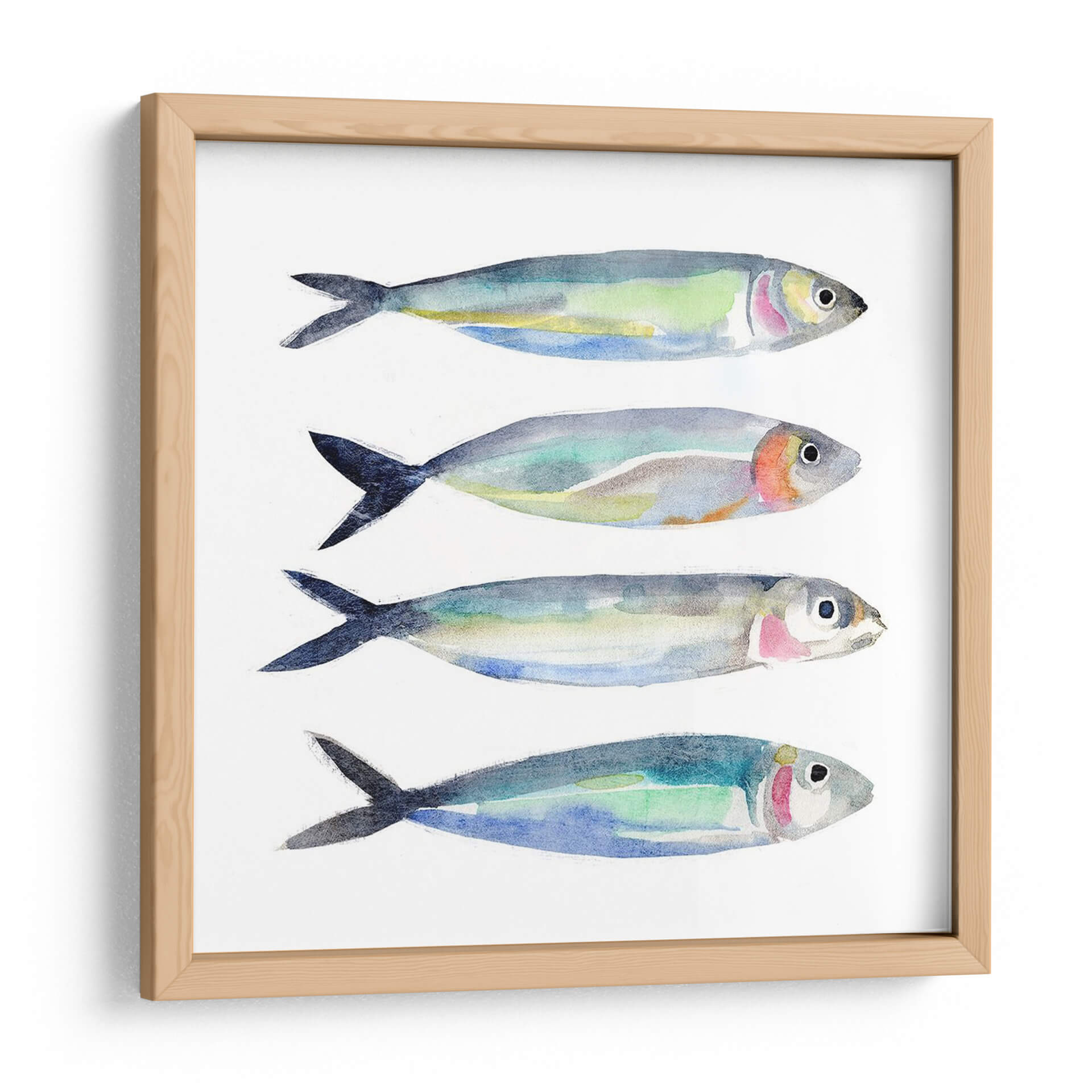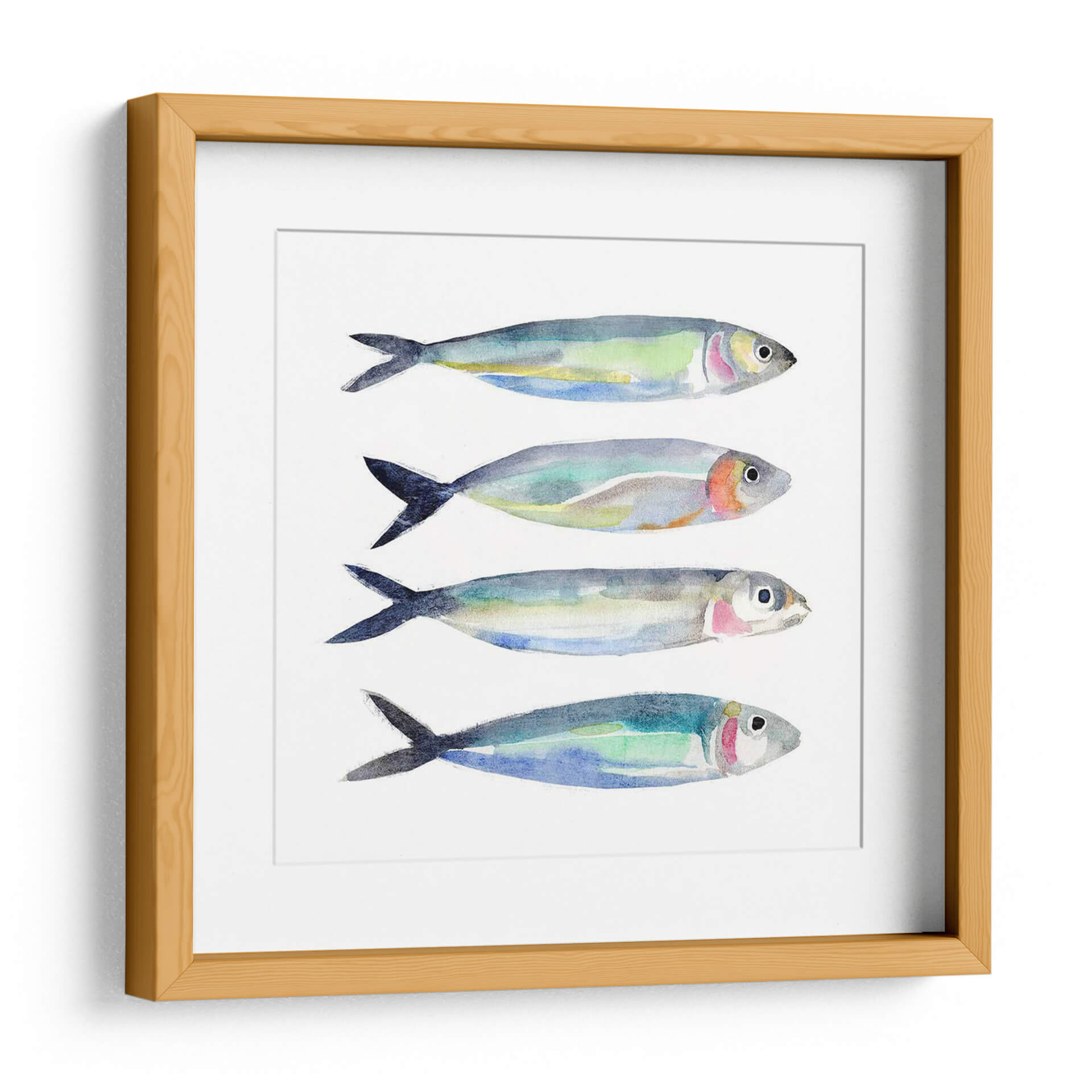 Sumérgete en la serenidad marina con "Equipo De Sardina I", una cautivadora obra de arte de Jacob Green. Este cuadro decorativo presenta una hilera de cuatro sardinas pintadas con acuarela, cada una capturada con delicadeza y un toque de realismo. La paleta de colores, dominada por tonos plateados, azules y toques sutiles de verde y amarillo, evoca la frescura y el movimiento del océano. Las pinceladas fluidas y la transparencia característica de la acuarela dotan a las figuras de una ligereza etérea, mientras que los detalles sutiles en sus ojos y branquias les otorgan una presencia encantadora. "Equipo De Sardina I" es una pieza versátil que aporta un aire de calma y sofisticación a cualquier espacio. Su diseño minimalista y temático la convierte en una adición perfecta para cocinas costeras, salas de estar con temática marina, o incluso para un estudio que busque un toque de naturaleza y tranquilidad. Imagina esta obra añadiendo un punto de interés sutil pero impactante, invitando a la contemplación y conectando tu hogar con la belleza del mundo acuático. Es ideal para quienes aprecian el arte inspirado en la naturaleza y buscan infundir sus interiores con una sensación de paz y armonía.