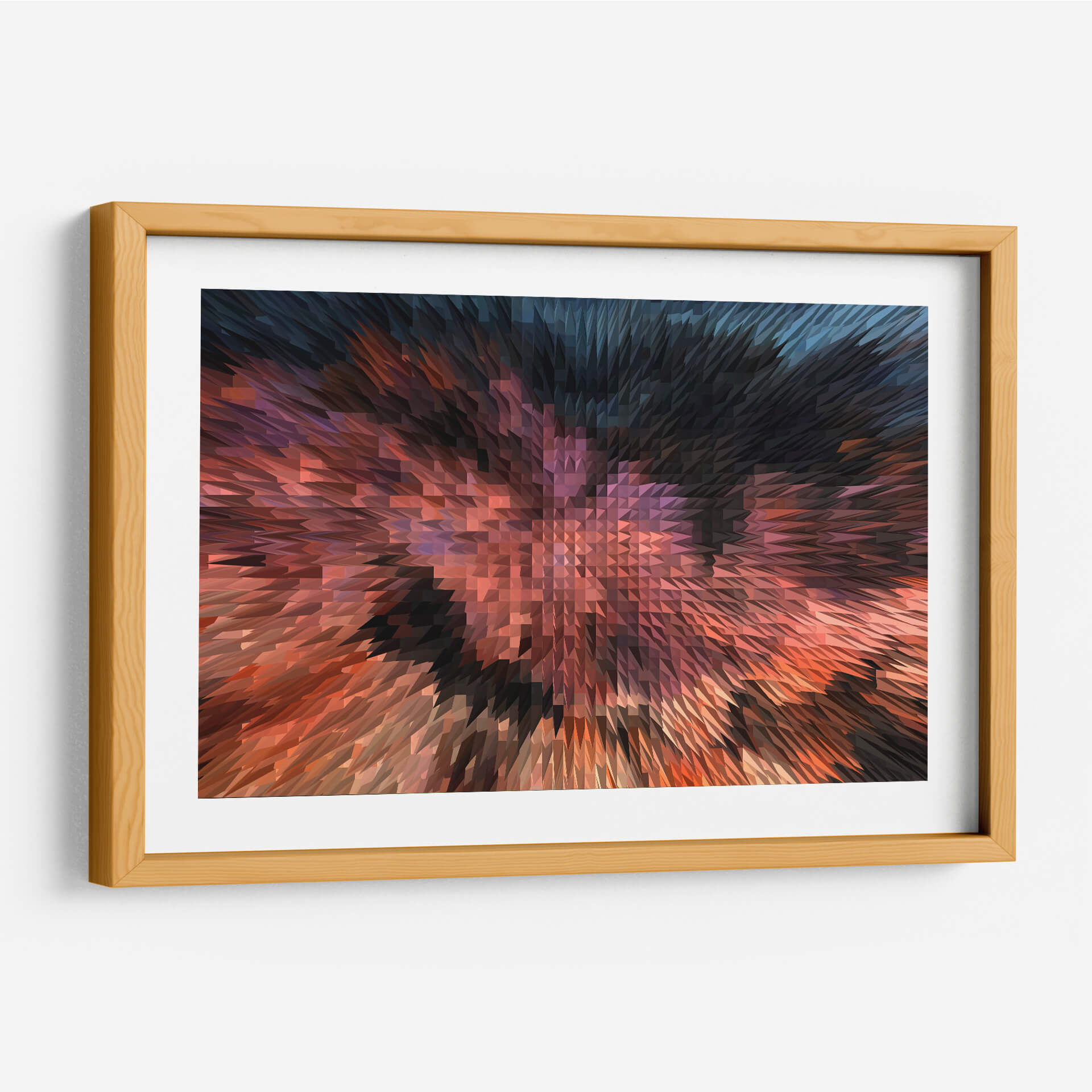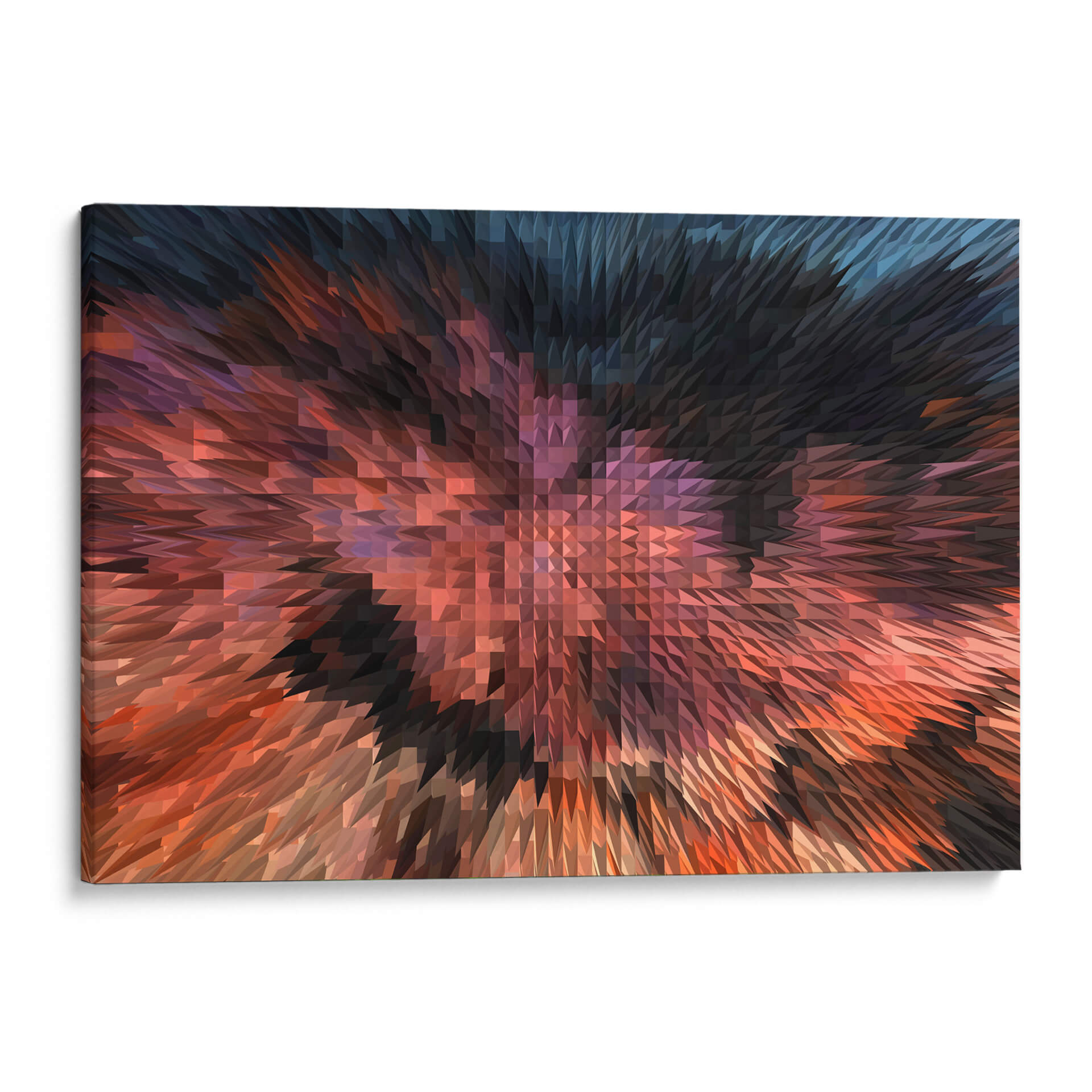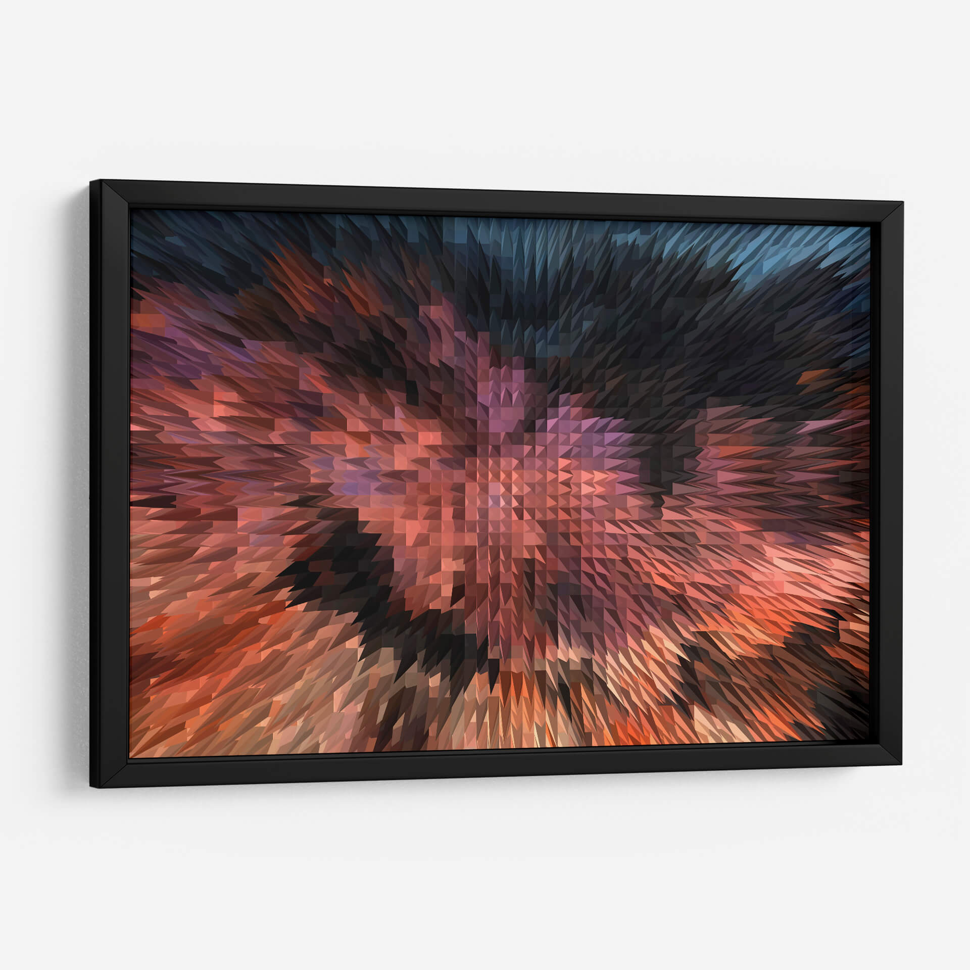 Sumérgete en la intensidad y la textura de "Espinas", una obra de arte abstracta del artista Rodrigo Barrera. Este cuadro decorativo cautiva con su explosión tridimensional de formas geométricas y una paleta de colores vibrantes que transita desde cálidos tonos rojizos y anaranjados hasta profundos azules y púrpuras oscuros. La composición dinámica, que simula un estallido o una galaxia en formación, invita a la contemplación y evoca una sensación de energía contenida y misterio. Las múltiples facetas y la profundidad de la obra crean un juego de luces y sombras que cambia según el ángulo de visión, aportando una dimensión interactiva a la pieza. "Espinas" es ideal para aquellos que buscan un punto focal audaz y contemporáneo en su hogar u oficina, añadiendo un toque de sofisticación moderna a cualquier espacio. Su estilo abstracto lo convierte en una pieza versátil, capaz de complementar desde decoraciones minimalistas hasta ambientes más eclécticos. Transforma tu pared en una ventana a un universo de texturas y colores con este impresionante cuadro decorativo.