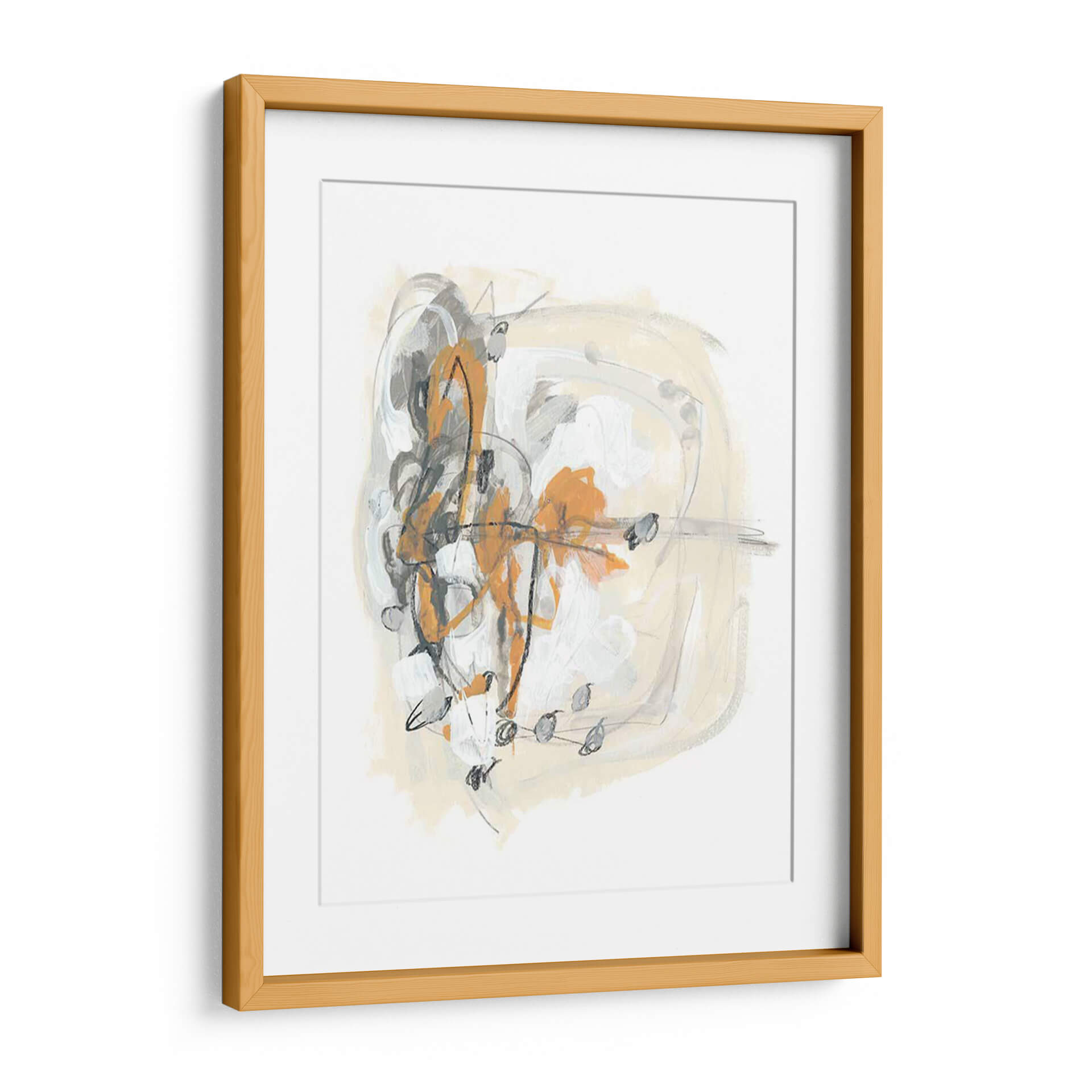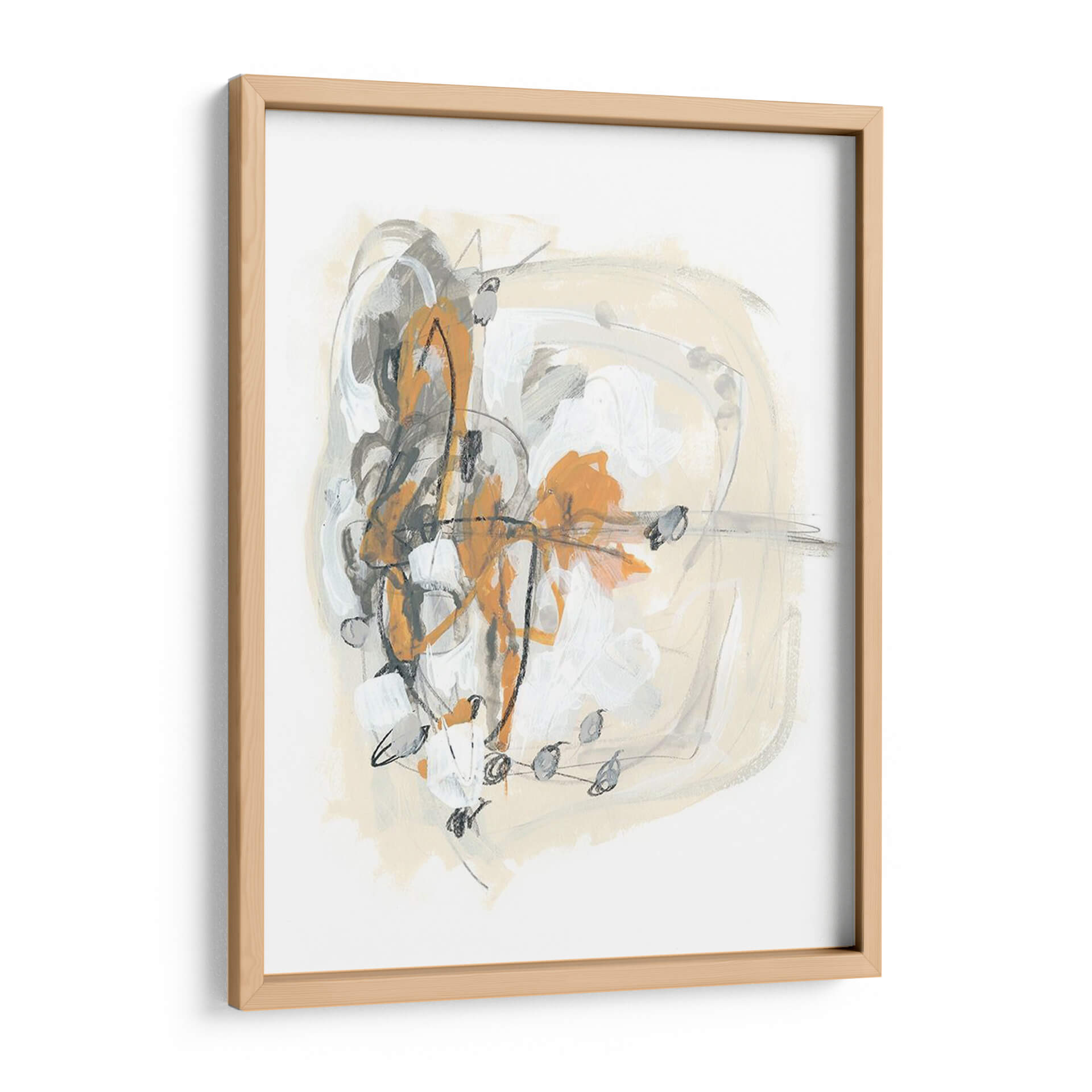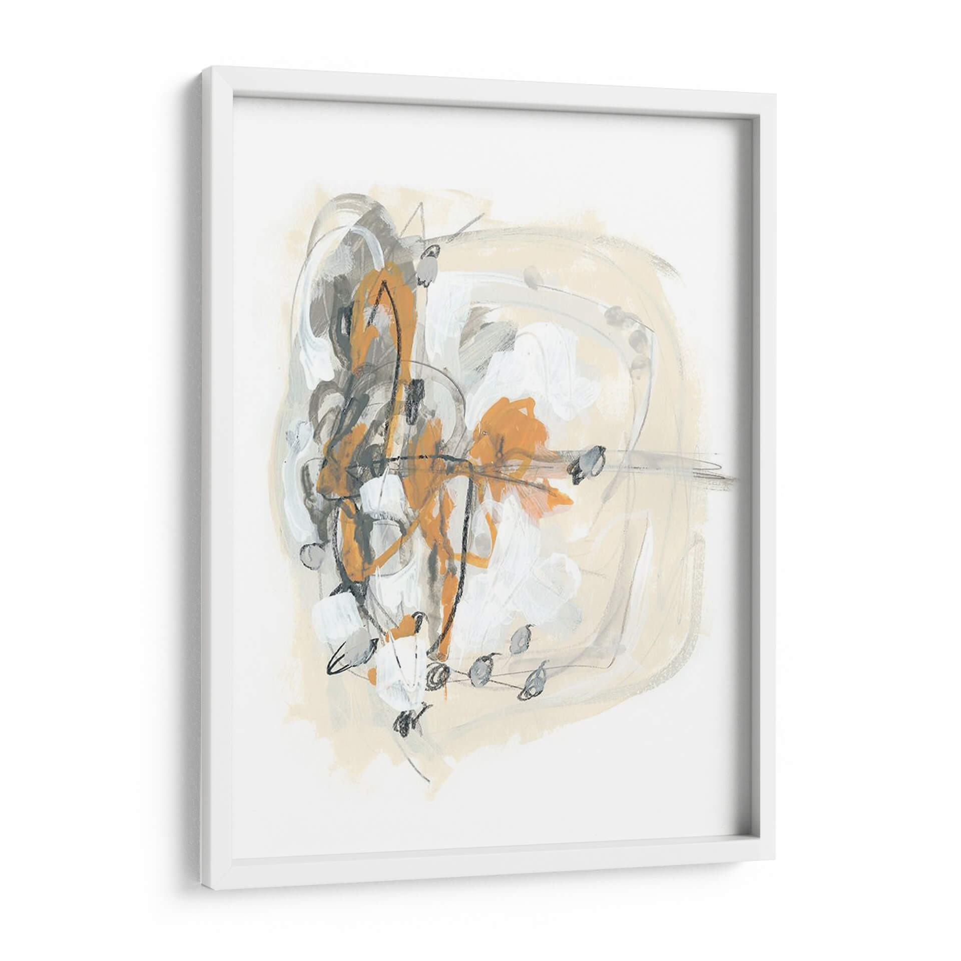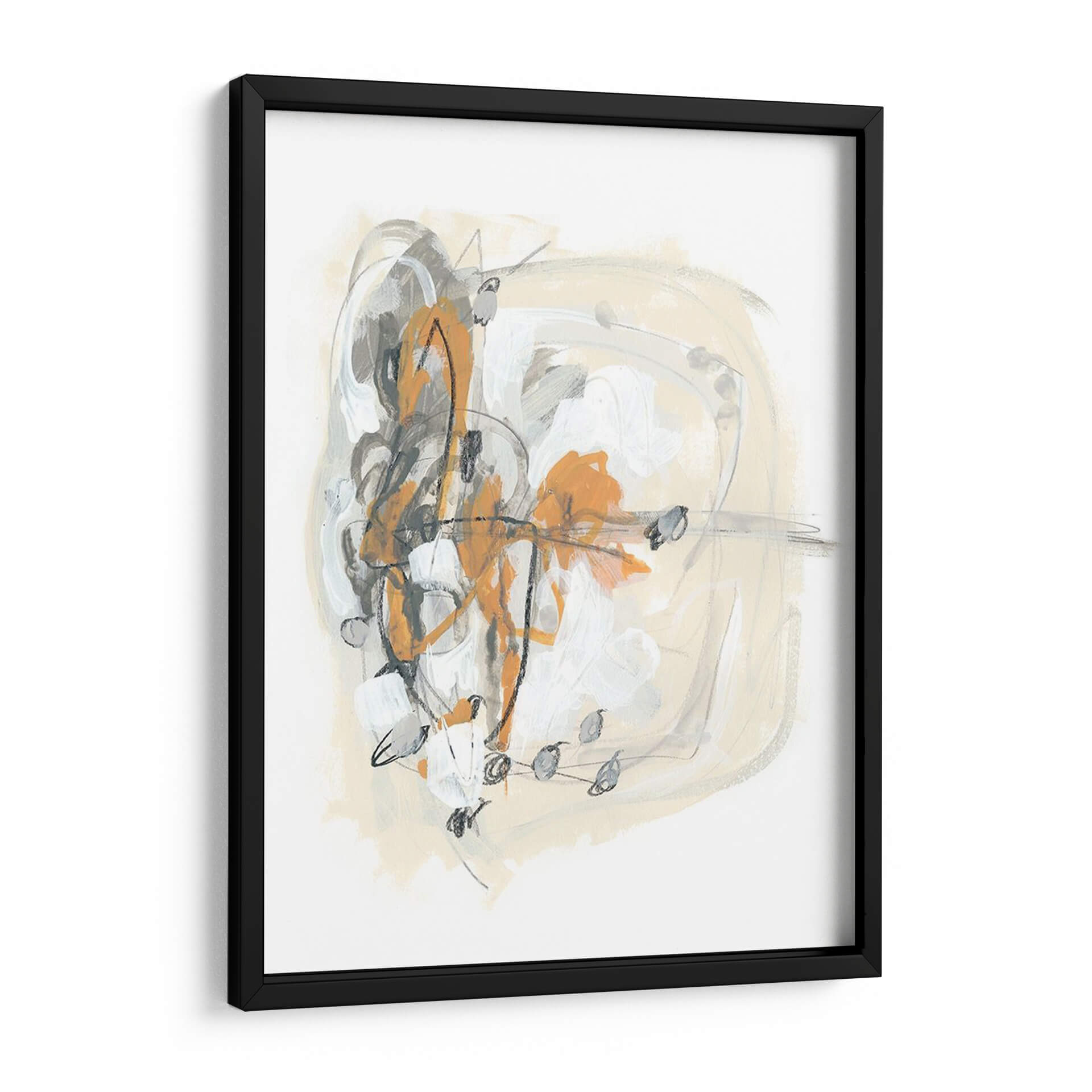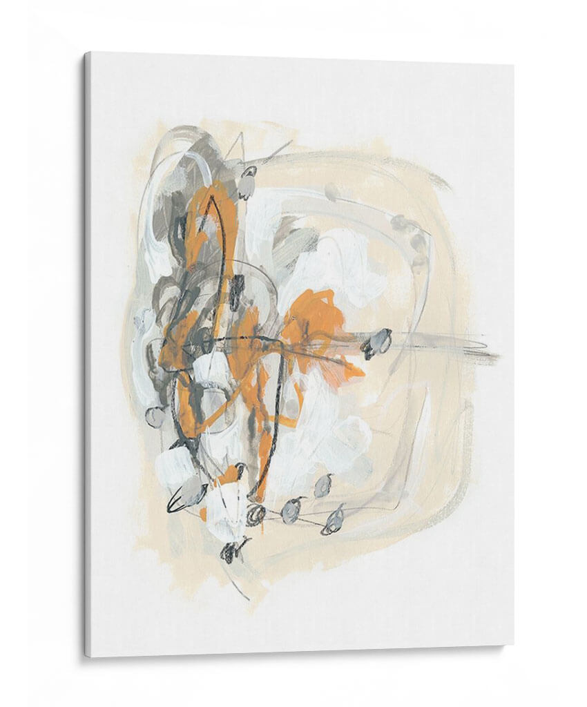 Sumérgete en la cautivadora abstracción de "Espolón I", una obra de June Erica Vess que redefine la decoración de paredes contemporánea. Este cuadro decorativo se distingue por una audaz composición que entrelaza trazos enérgicos en tonos naranja vibrante, grises profundos y blancos puros, contrastando con un fondo suave en beige arena. La técnica mixta, que evoca pinceladas gestuales y líneas definidas, crea una sensación de movimiento y profundidad, invitando a la contemplación. "Espolón I" es ideal para aquellos que buscan infundir dinamismo y un toque artístico moderno en sus espacios. Su paleta de colores equilibrada la convierte en una pieza versátil, capaz de complementar tanto ambientes minimalistas como decoraciones más eclécticas. Imagina este cuadro como un punto focal en tu sala de estar, aportando sofisticación a tu oficina, o añadiendo una chispa de creatividad a tu dormitorio. La obra de Vess no solo decora, sino que también evoca una conversación visual, un equilibrio entre caos controlado y serenidad, perfecto para el hogar contemporáneo que valora la expresión artística única.