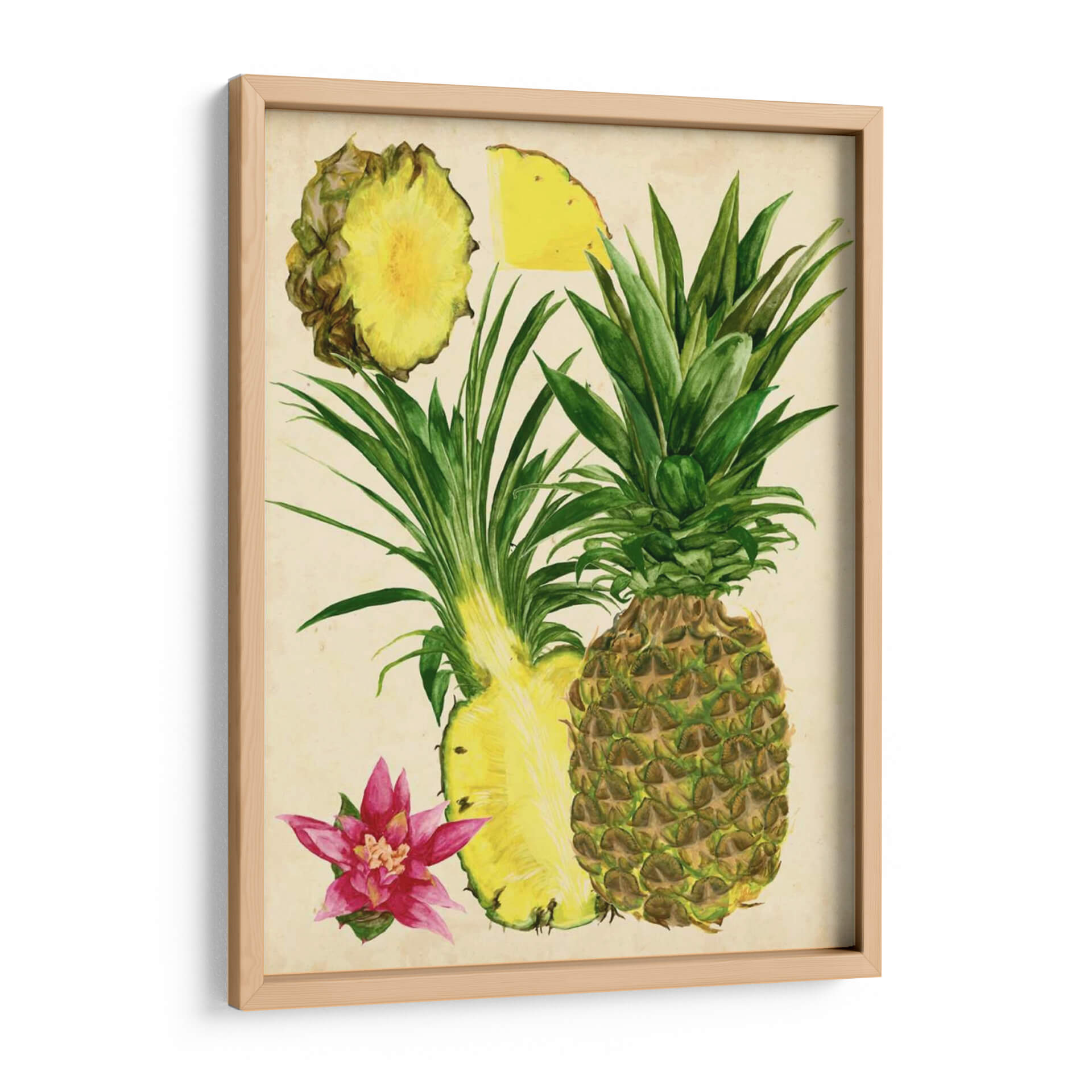 Sumérgete en la frescura tropical con "Estudio De Piña Tropical Ii", una obra de arte digital de Melissa Wang que captura la esencia vibrante de esta fruta exótica. La pieza presenta una composición detallada de piñas, una entera y otra partida por la mitad, revelando su jugosa pulpa amarilla. Las hojas verdes exuberantes contrastan con los tonos cálidos y terrosos del fondo, creando una atmósfera acogedora y natural. Una delicada flor fucsia añade un toque de color y sofisticación. El estilo, que evoca las ilustraciones botánicas clásicas pero con un aire contemporáneo, convierte a este cuadro decorativo en una elección perfecta para quienes buscan añadir un elemento de alegría y vitalidad a sus espacios. Ideal para cocinas, comedores o cualquier rincón que necesite un toque de sol y exotismo, esta obra invita a la contemplación y al disfrute de la naturaleza. Su versatilidad permite integrarla en decoraciones modernas, rústicas o de estilo bohemio, aportando un punto focal que evoca la calidez del trópico. Añade un toque de dulzura y frescura a tu hogar con este impresionante estudio de piña.