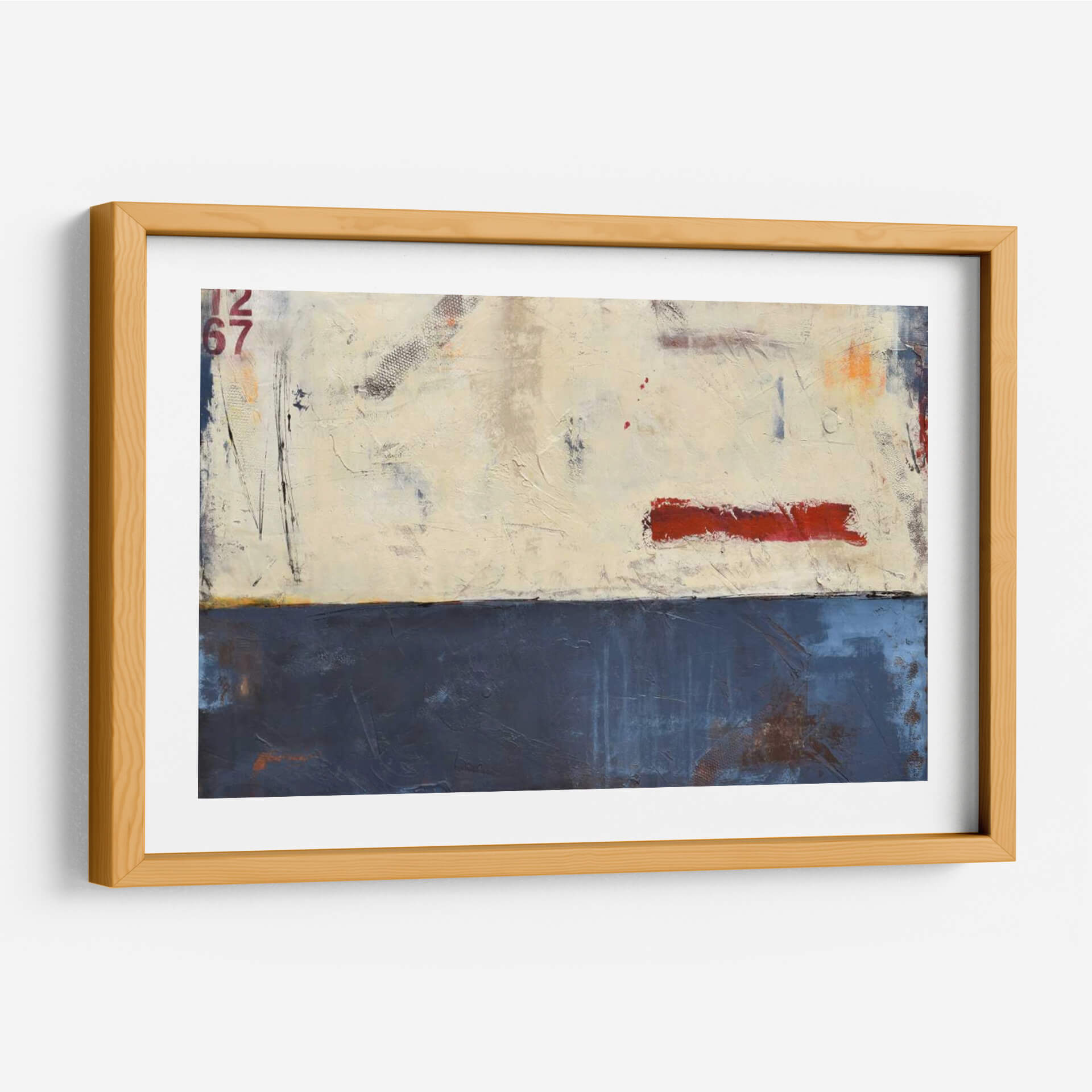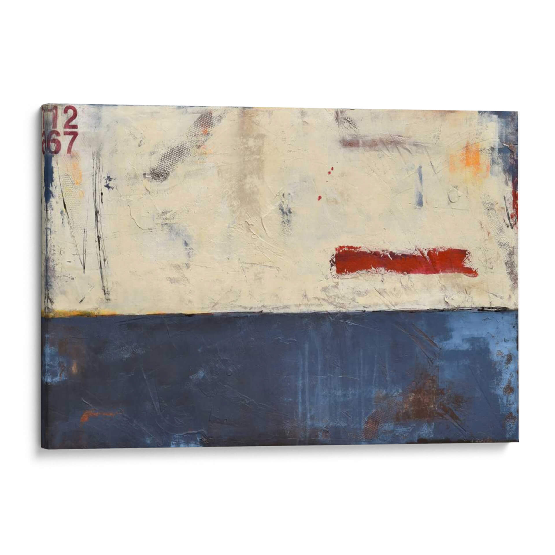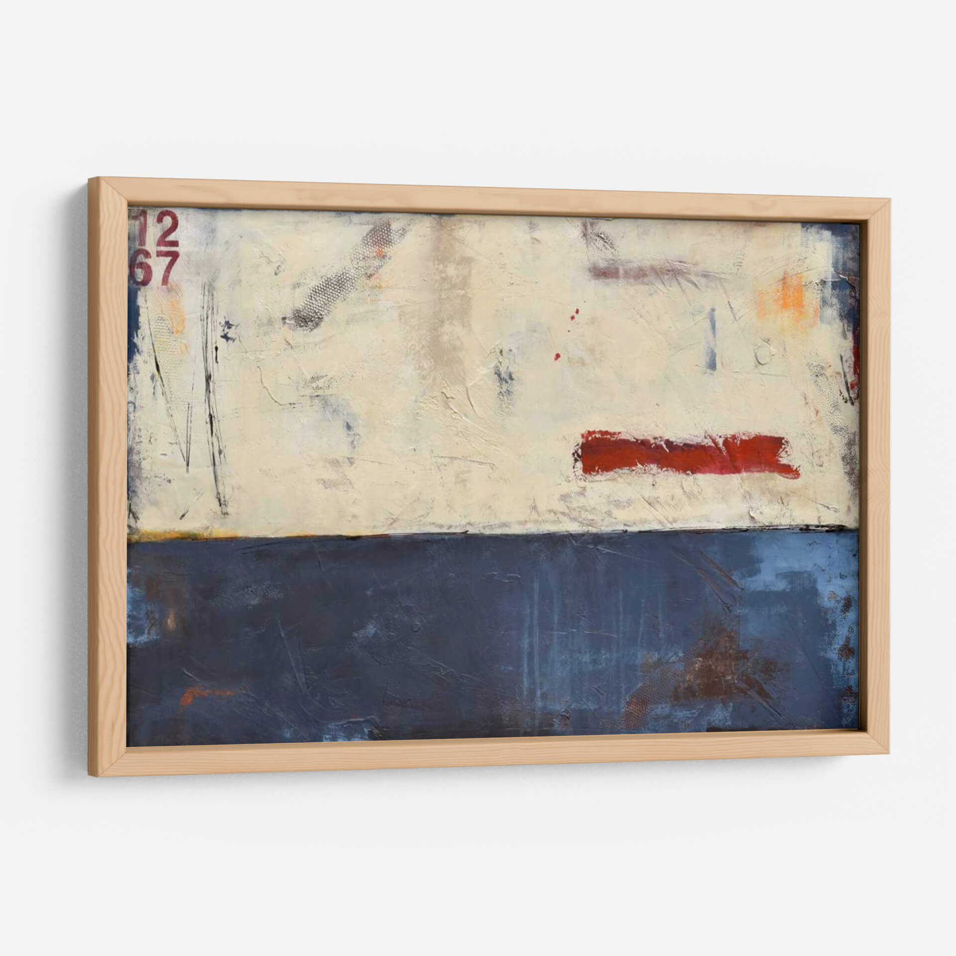Sumérgete en la profundidad y el carácter de "Etiqueta 1267", una obra de arte contemporáneo de Erin Ashley que redefine la abstracción textural. Este cuadro decorativo presenta una cautivadora dualidad, dividida en dos planos principales: un superior de tonos crudos, marfil y ocres, que evoca superficies desgastadas por el tiempo, y un inferior en profundos azules marinos y grisáceos, con texturas ricas que sugieren una melancolía contemplativa. La interacción de estas áreas se ve acentuada por trazos de pintura audaces, como el impactante bloque rojo en el centro, y sutiles salpicaduras que añaden dinamismo. Los elementos gráficos, como los números "12 67" en rojo en la esquina superior izquierda, aportan un toque urbano e industrial, creando una composición intrigante y llena de matices. "Etiqueta 1267" es ideal para espacios que buscan un punto focal con personalidad, añadiendo una capa de sofisticación y misterio a salones modernos, oficinas ejecutivas o estudios creativos. Su paleta de colores terrosos y azules profundos permite integrarla en diversas decoraciones, desde ambientes minimalistas hasta interiores más eclécticos, transformando cualquier pared en una declaración de estilo y buen gusto.