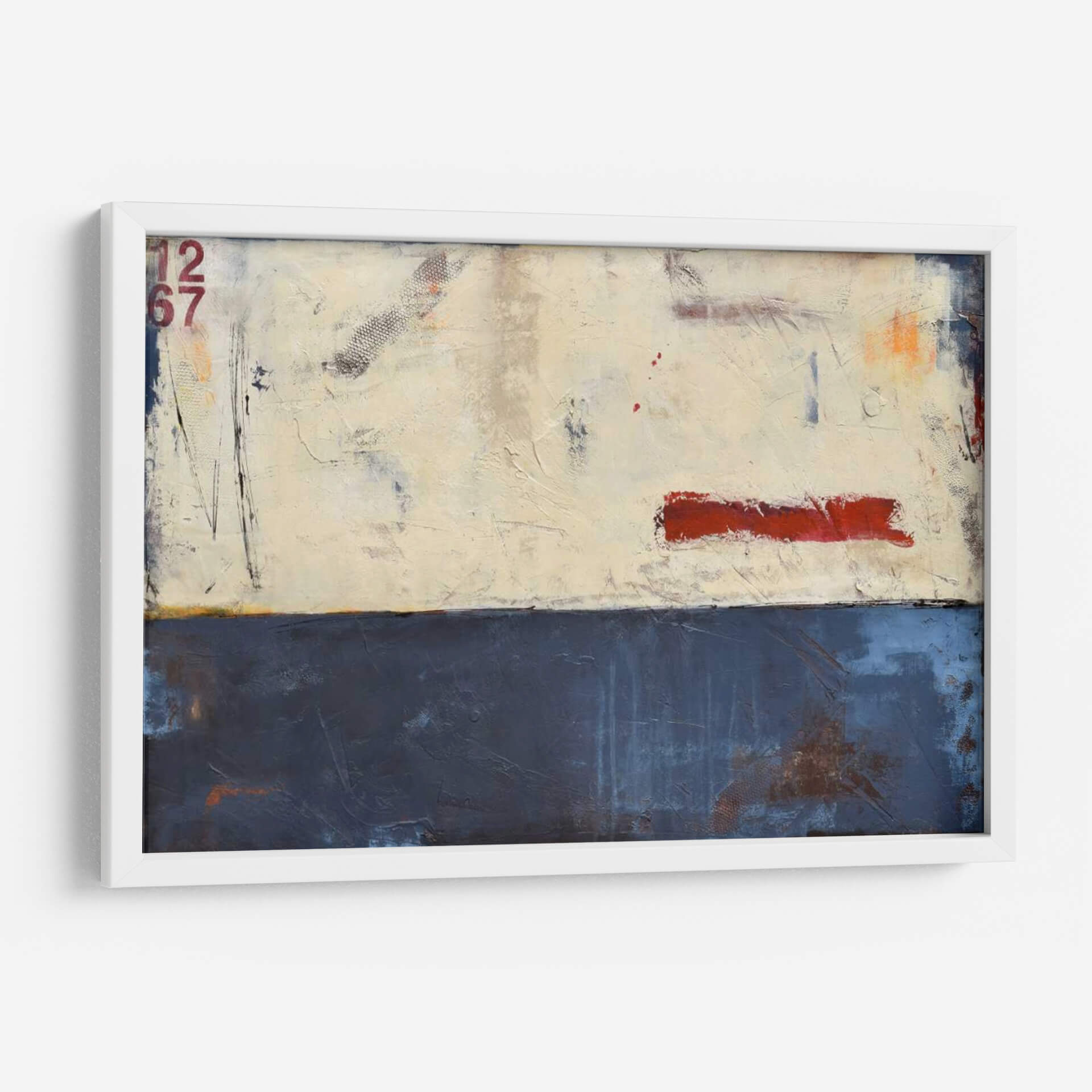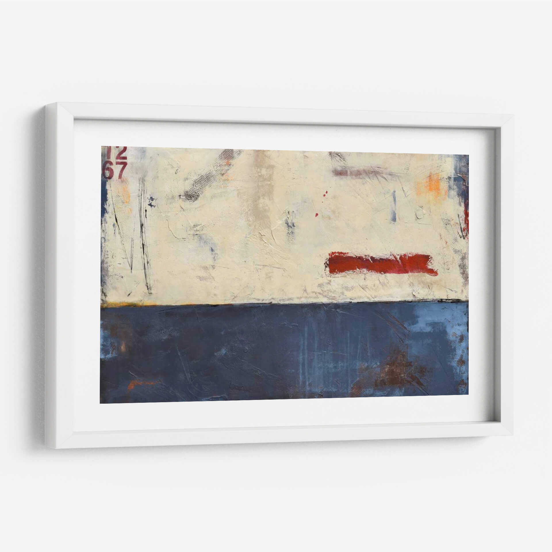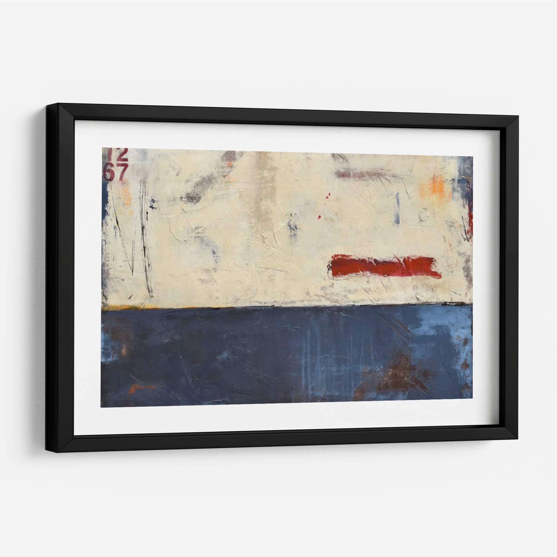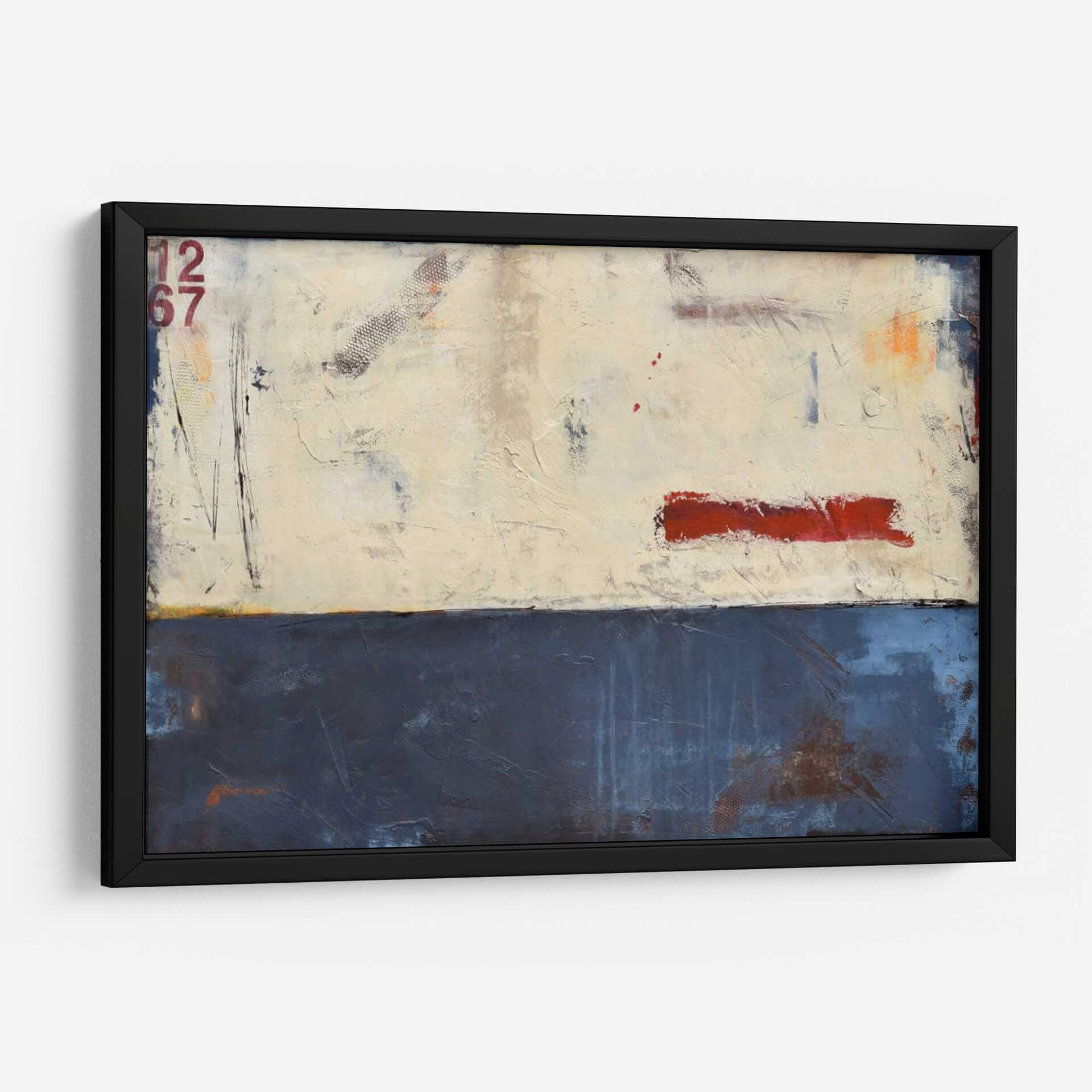 Sumérgete en la profundidad y el carácter de "Etiqueta 1267", una obra de arte contemporáneo de Erin Ashley que redefine la abstracción textural. Este cuadro decorativo presenta una cautivadora dualidad, dividida en dos planos principales: un superior de tonos crudos, marfil y ocres, que evoca superficies desgastadas por el tiempo, y un inferior en profundos azules marinos y grisáceos, con texturas ricas que sugieren una melancolía contemplativa. La interacción de estas áreas se ve acentuada por trazos de pintura audaces, como el impactante bloque rojo en el centro, y sutiles salpicaduras que añaden dinamismo. Los elementos gráficos, como los números "12 67" en rojo en la esquina superior izquierda, aportan un toque urbano e industrial, creando una composición intrigante y llena de matices. "Etiqueta 1267" es ideal para espacios que buscan un punto focal con personalidad, añadiendo una capa de sofisticación y misterio a salones modernos, oficinas ejecutivas o estudios creativos. Su paleta de colores terrosos y azules profundos permite integrarla en diversas decoraciones, desde ambientes minimalistas hasta interiores más eclécticos, transformando cualquier pared en una declaración de estilo y buen gusto.