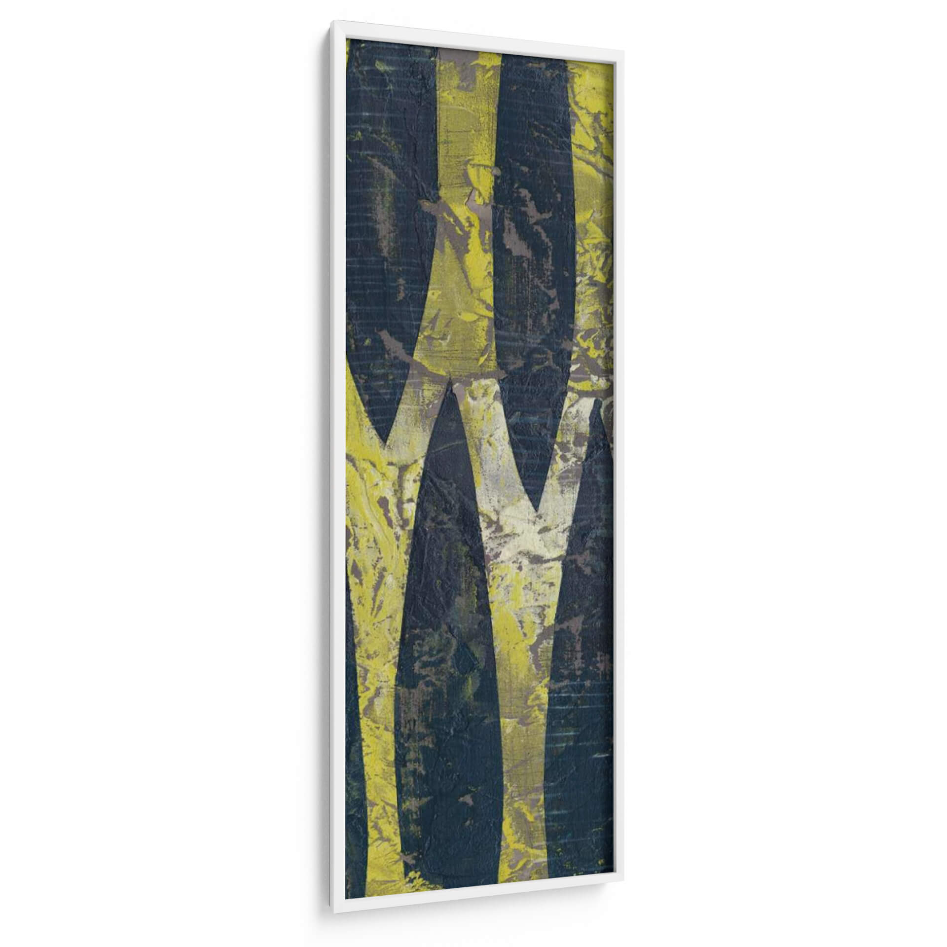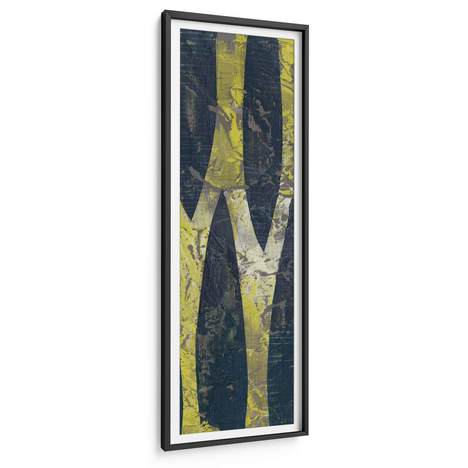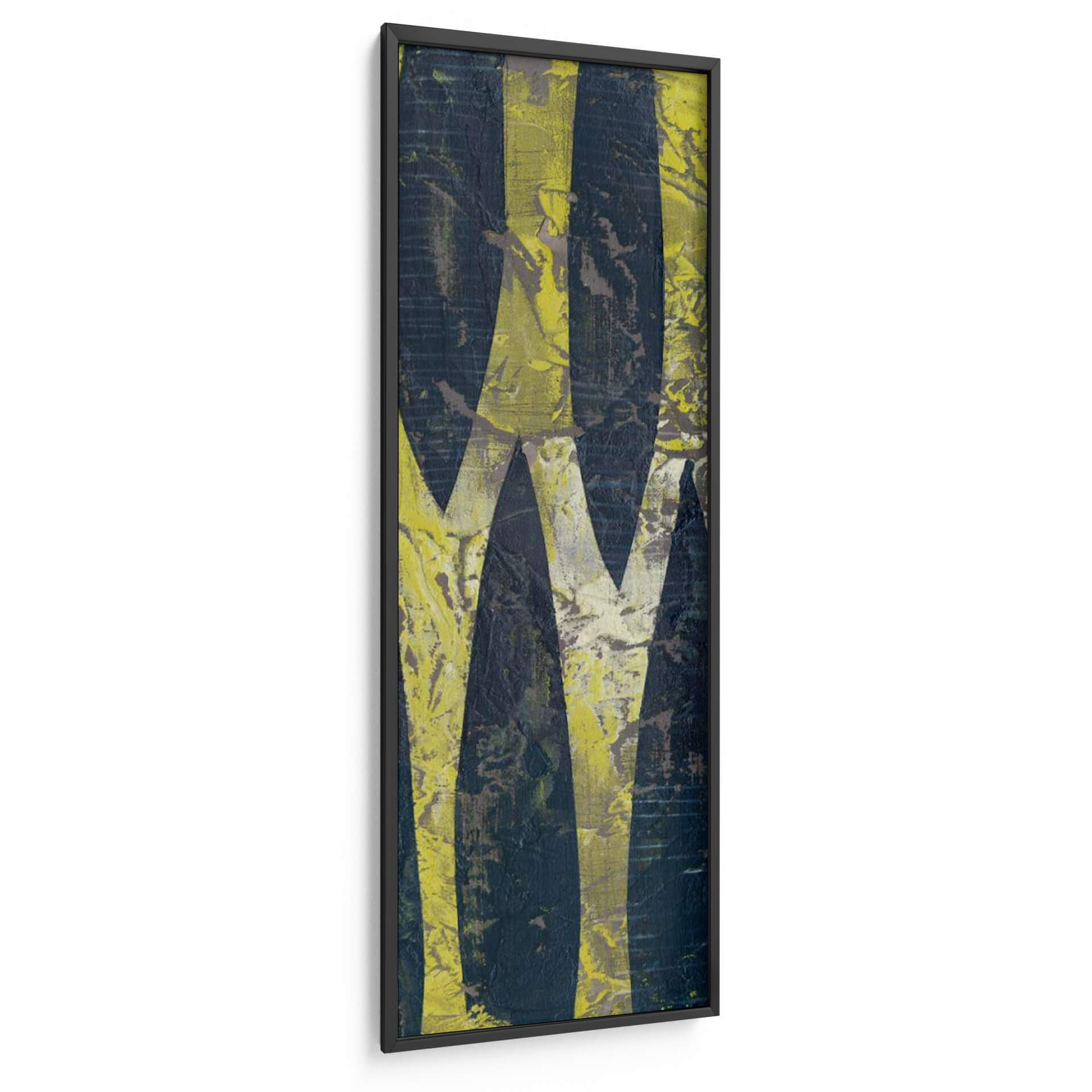Sumérgete en la enigmática profundidad de "Exclusión I", una obra maestra abstracta del artista Jennifer Goldberger. Este cuadro decorativo vertical cautiva con su audaz paleta de colores, donde vibrantes tonos amarillos y dorados se entrelazan con un profundo y texturizado azul marino. Las formas orgánicas y fluidas, reminiscentes de columnas o estandartes abstractos, parecen emerger de un fondo oscuro y misterioso, creando una sensación de movimiento y energía contenida. La técnica de Goldberger, que juega con texturas y capas, añade una dimensión táctil a la pieza, invitando a la contemplación. "Exclusión I" es más que una simple decoración de pared; es una invitación a explorar la dualidad, la fuerza y la elegancia abstracta. Ideal para espacios que buscan un toque de sofisticación contemporánea y un punto focal intrigante. Su formato alargado lo hace perfecto para pasillos, entradas o para realzar paredes estrechas en salones y oficinas, aportando carácter y un aire de misterio moderno. Añade esta pieza única a tu colección y transforma tu entorno con su cautivadora presencia.