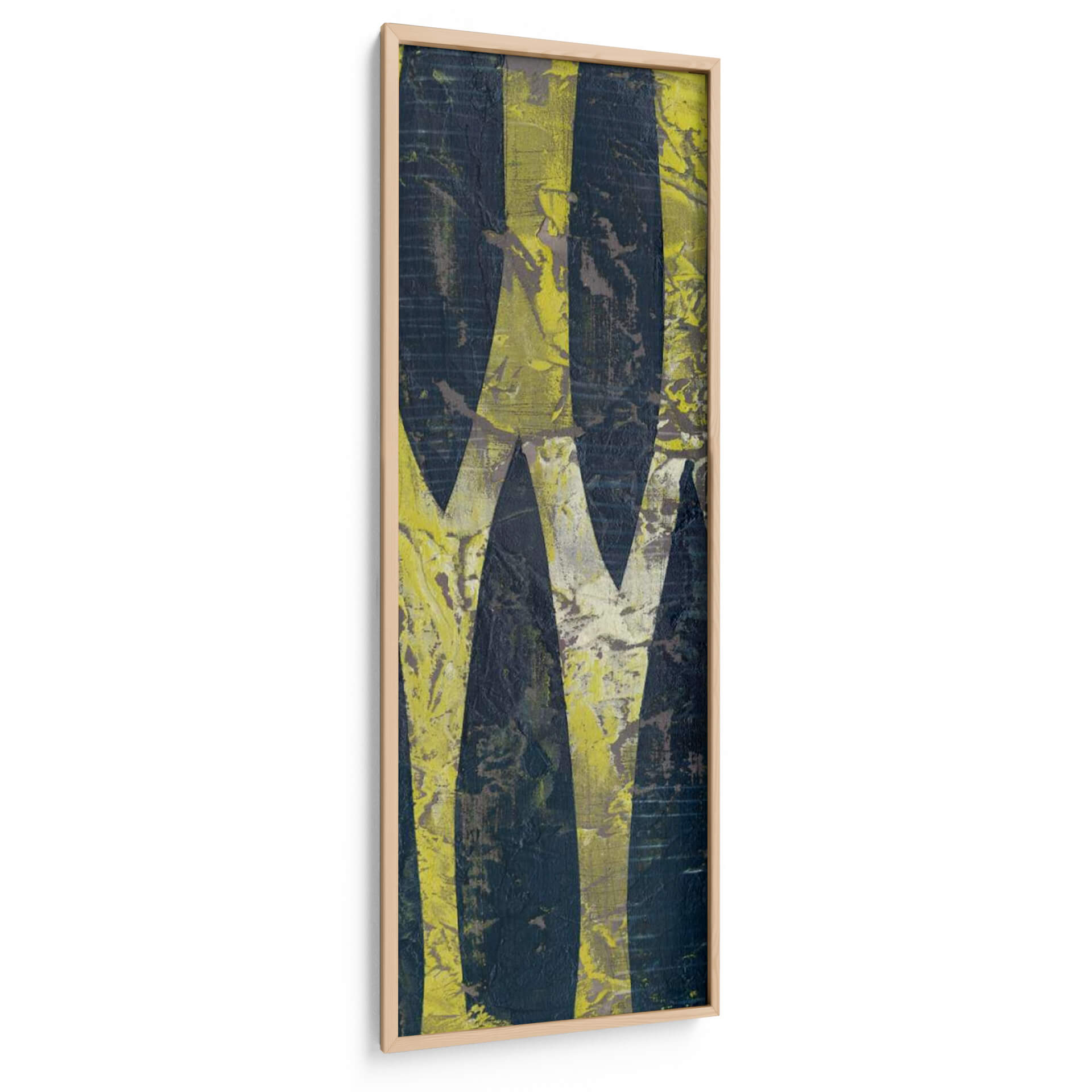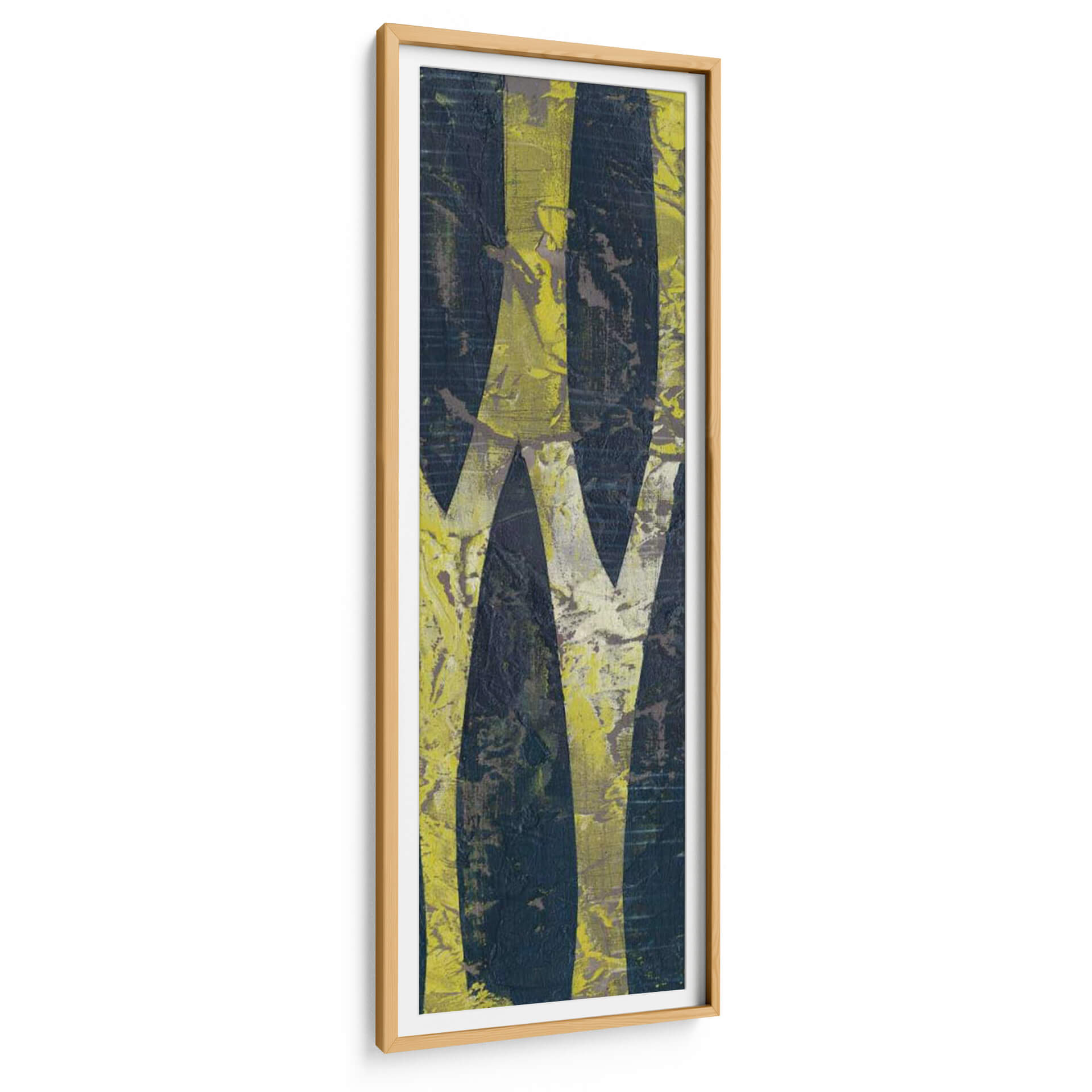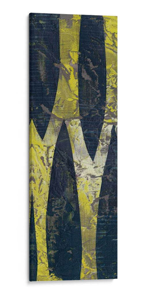 Sumérgete en la enigmática profundidad de "Exclusión I", una obra maestra abstracta del artista Jennifer Goldberger. Este cuadro decorativo vertical cautiva con su audaz paleta de colores, donde vibrantes tonos amarillos y dorados se entrelazan con un profundo y texturizado azul marino. Las formas orgánicas y fluidas, reminiscentes de columnas o estandartes abstractos, parecen emerger de un fondo oscuro y misterioso, creando una sensación de movimiento y energía contenida. La técnica de Goldberger, que juega con texturas y capas, añade una dimensión táctil a la pieza, invitando a la contemplación. "Exclusión I" es más que una simple decoración de pared; es una invitación a explorar la dualidad, la fuerza y la elegancia abstracta. Ideal para espacios que buscan un toque de sofisticación contemporánea y un punto focal intrigante. Su formato alargado lo hace perfecto para pasillos, entradas o para realzar paredes estrechas en salones y oficinas, aportando carácter y un aire de misterio moderno. Añade esta pieza única a tu colección y transforma tu entorno con su cautivadora presencia.