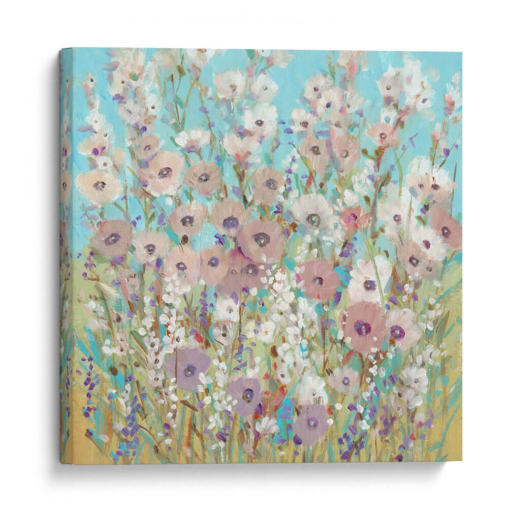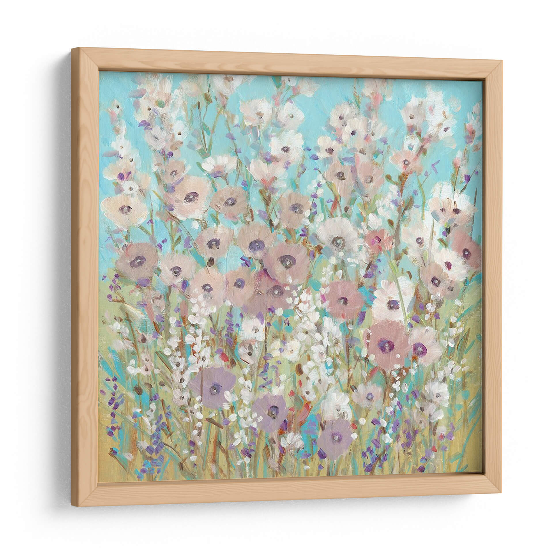 Embellece tu hogar con "Flores Mixtas II", una obra de arte vibrante y etérea del aclamado artista Tim O'Toole. Esta pieza captura la delicadeza de un jardín florido con una paleta de colores que evoca serenidad y alegría. El fondo azul cielo proporciona un contraste luminoso a los pétalos en tonos pastel de rosa, lavanda y blanco, salpicados con toques de verde y amarillo que sugieren la vitalidad de la naturaleza. La técnica impresionista y las pinceladas sueltas de O'Toole dan vida a las flores, creando una sensación de movimiento y frescura. "Flores Mixtas II" es una invitación a la calma y la belleza natural, ideal para añadir un toque de color y sofisticación a cualquier espacio. Su composición, que llena el lienzo con la exuberancia de la flora, la convierte en un punto focal perfecto para salas de estar, dormitorios o incluso espacios de oficina que buscan un ambiente inspirador y relajante. Este cuadro decorativo es una ventana a un prado en plena floración, una pieza que resonará con los amantes de la naturaleza y el arte contemporáneo.