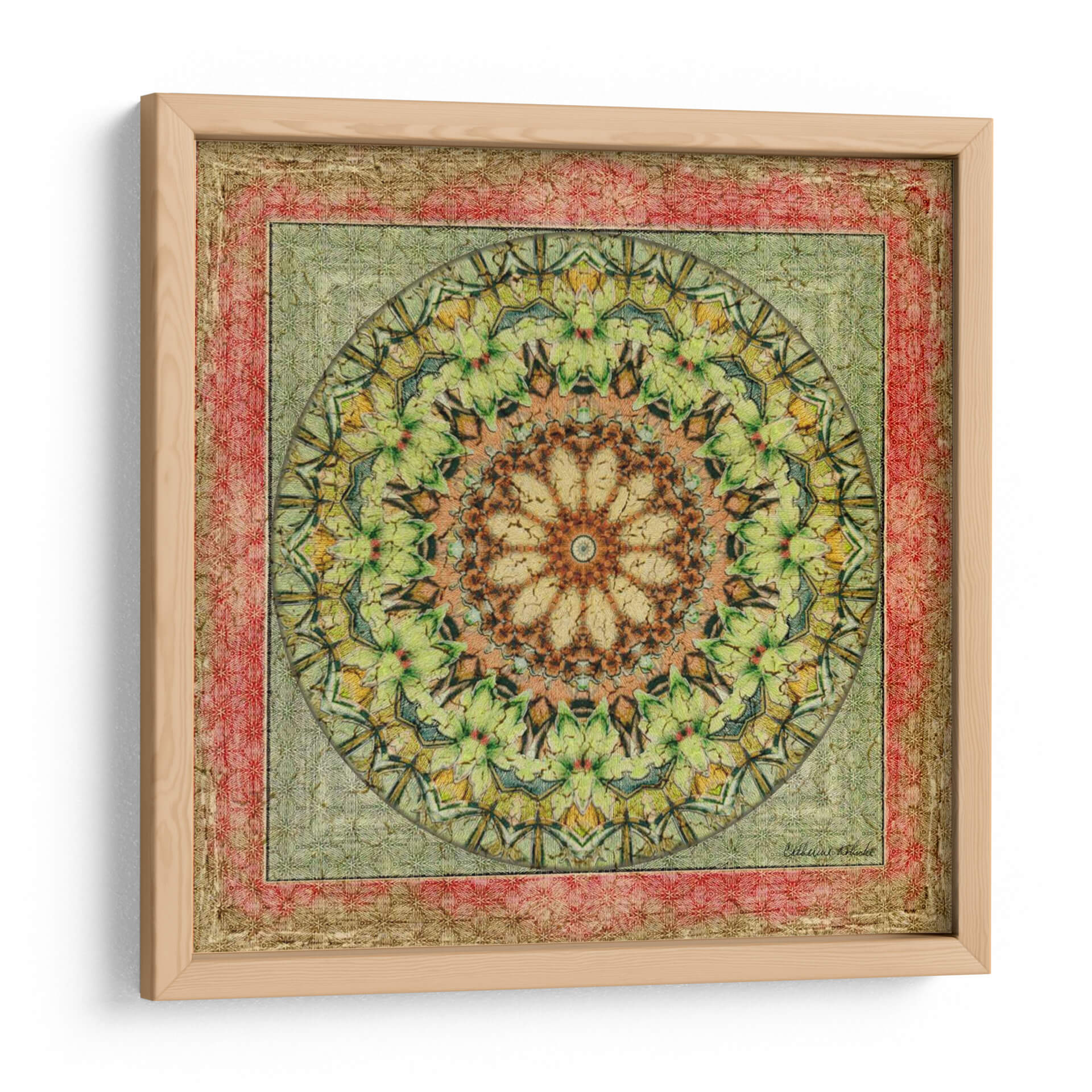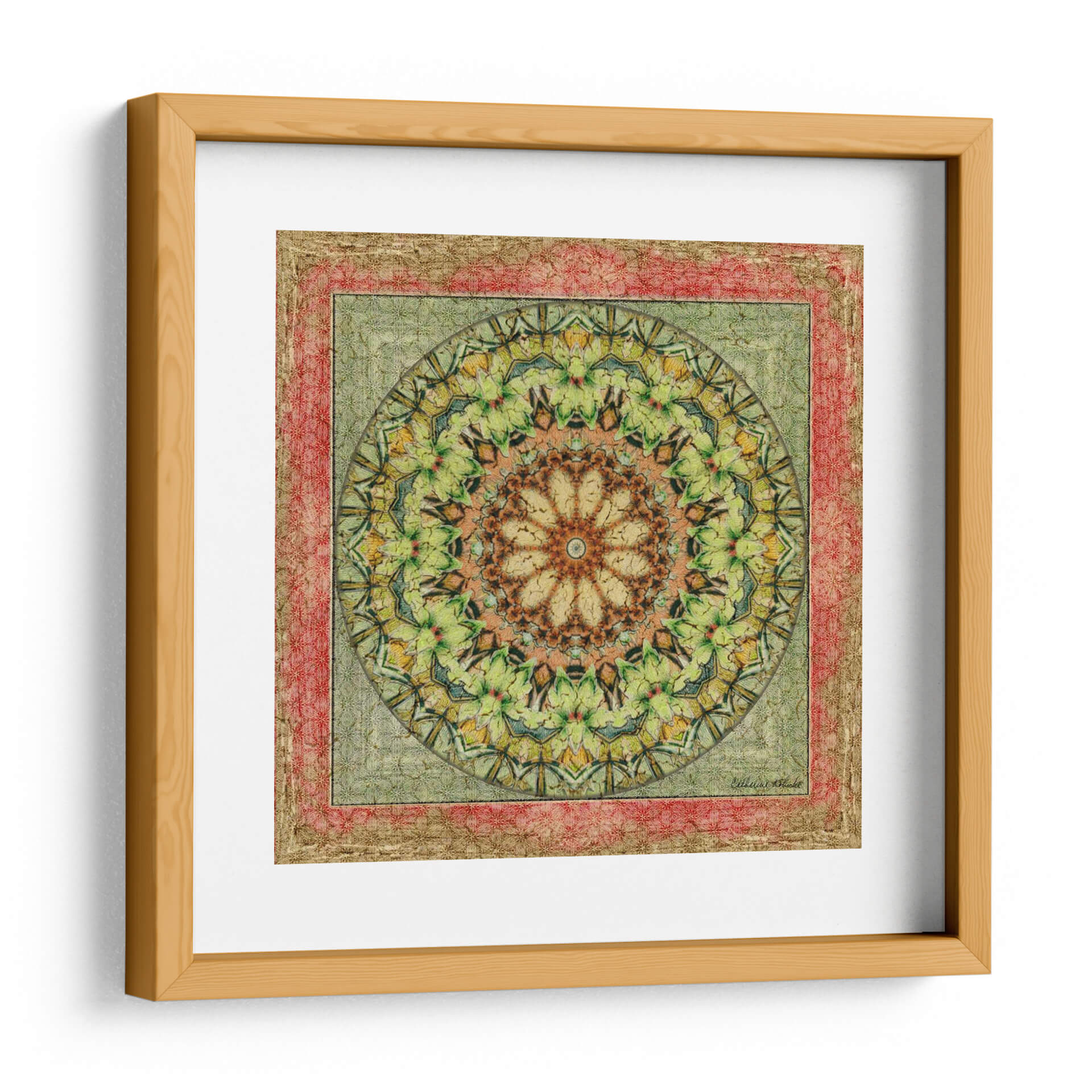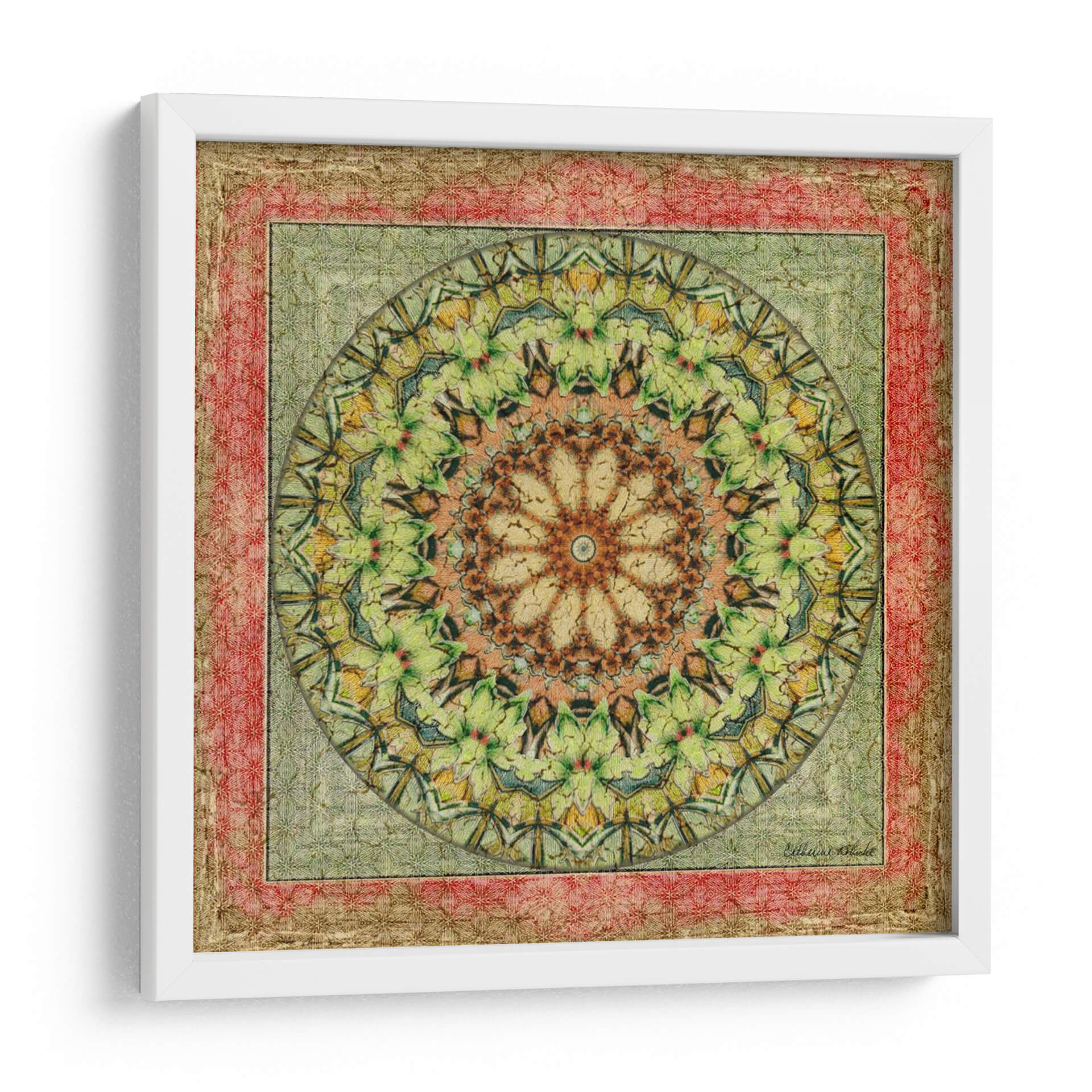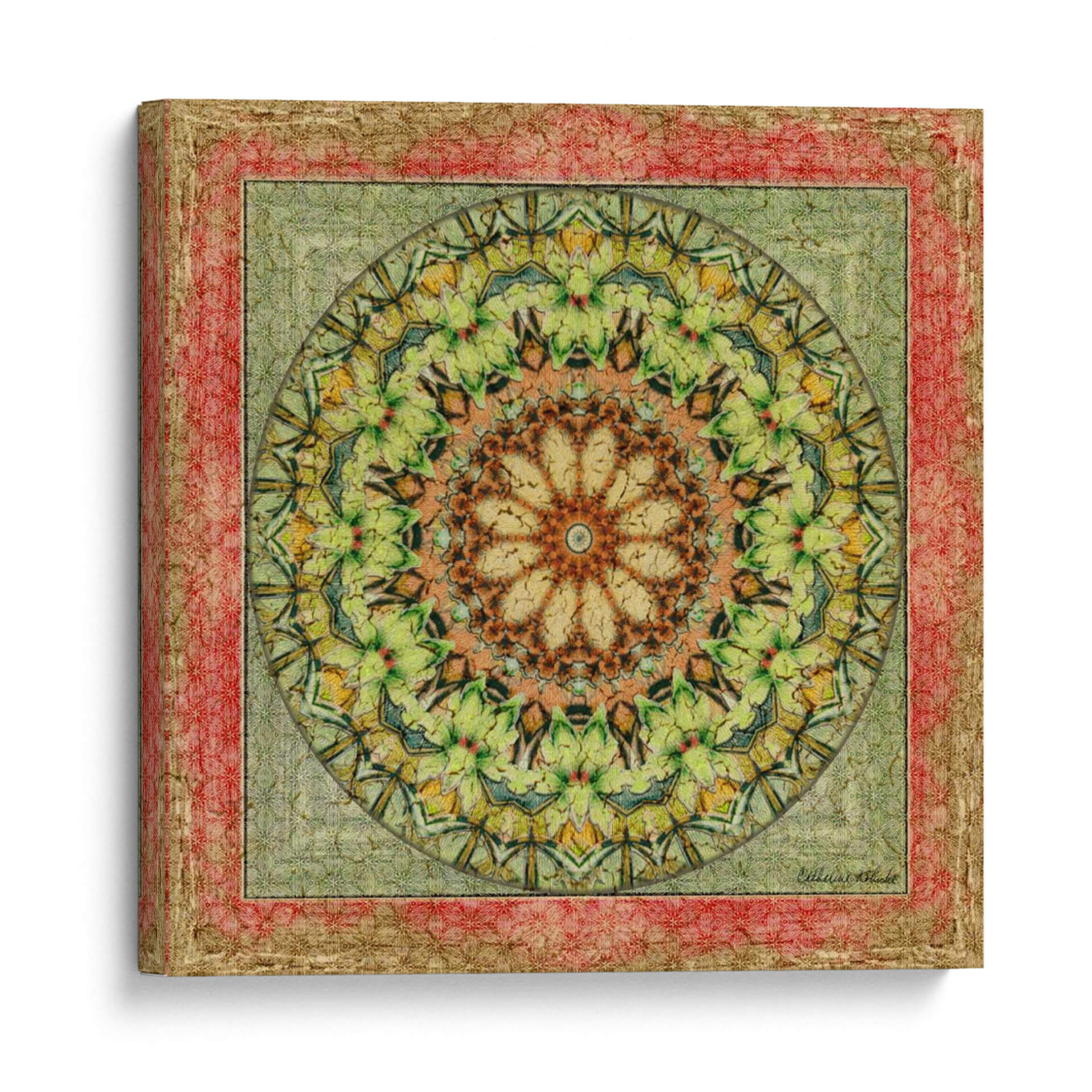 Sumérgete en la intrincada belleza de 'Floresis Mandala III', una obra de arte contemporáneo que evoca serenidad y un profundo sentido de conexión. Diseñada por la talentosa Catherine Kohnke, esta pieza presenta una vibrante mandala central, una explosión de patrones simétricos que recuerdan a flores estilizadas y elementos botánicos. La paleta de colores, dominada por tonos verdes, ocres y toques de rojo terracota, crea una atmósfera terrenal y armoniosa, invitando a la contemplación. Los detalles intrincados y las texturas sutiles añaden profundidad y riqueza visual, haciendo que cada observación revele nuevos matices. El diseño circular de la mandala, enmarcado por un patrón geométrico sutil en tonos verde pálido y bordes texturizados en rojo y dorado, proporciona un equilibrio visual perfecto. 'Floresis Mandala III' es más que una simple decoración; es una invitación a la calma y al equilibrio, ideal para espacios que buscan un toque de espiritualidad y sofisticación. Perfecta para salones modernos, dormitorios que invitan al descanso o estudios donde la concentración es clave, este cuadro decorativo transformará cualquier ambiente en un santuario de paz y estilo, aportando energía positiva y un diseño único.