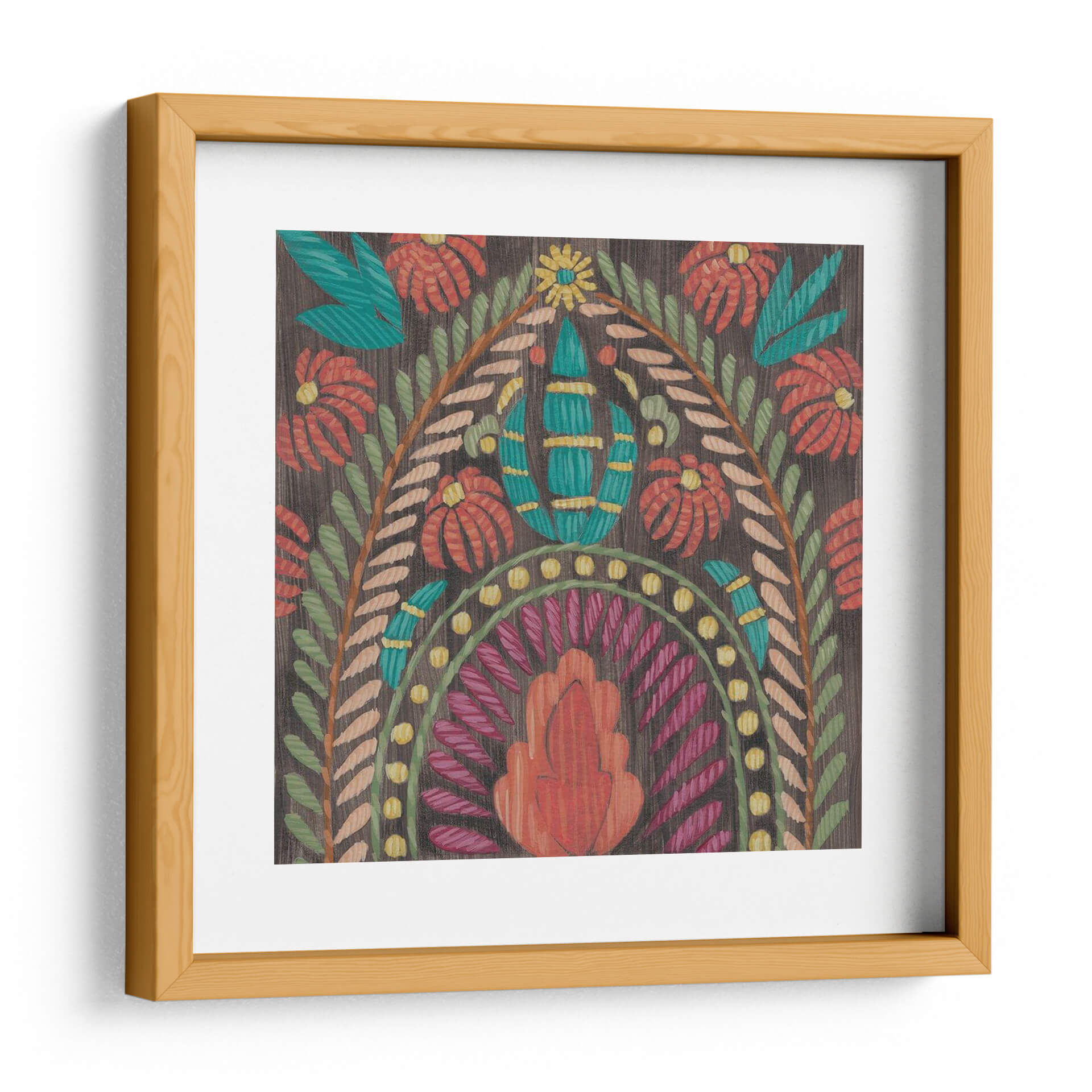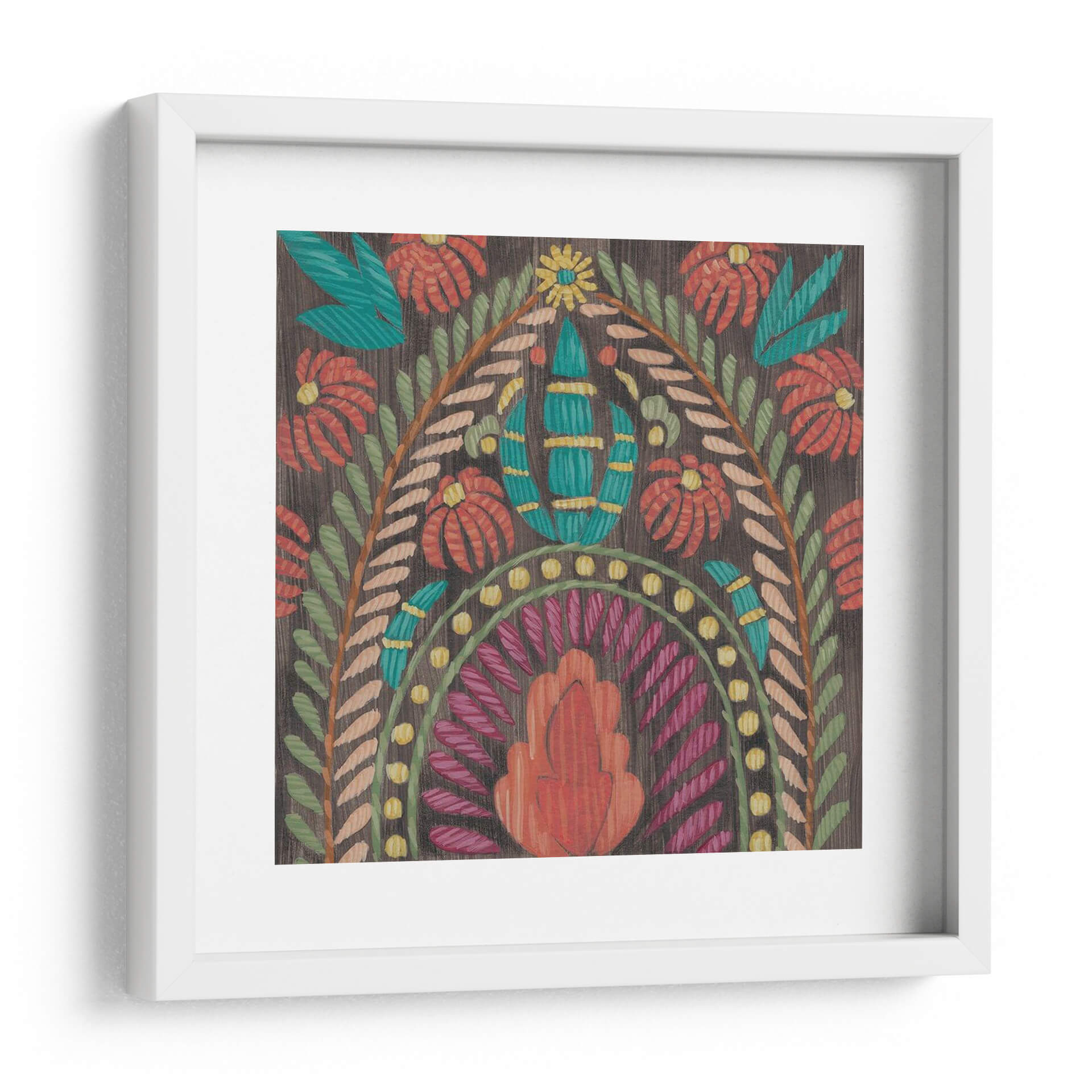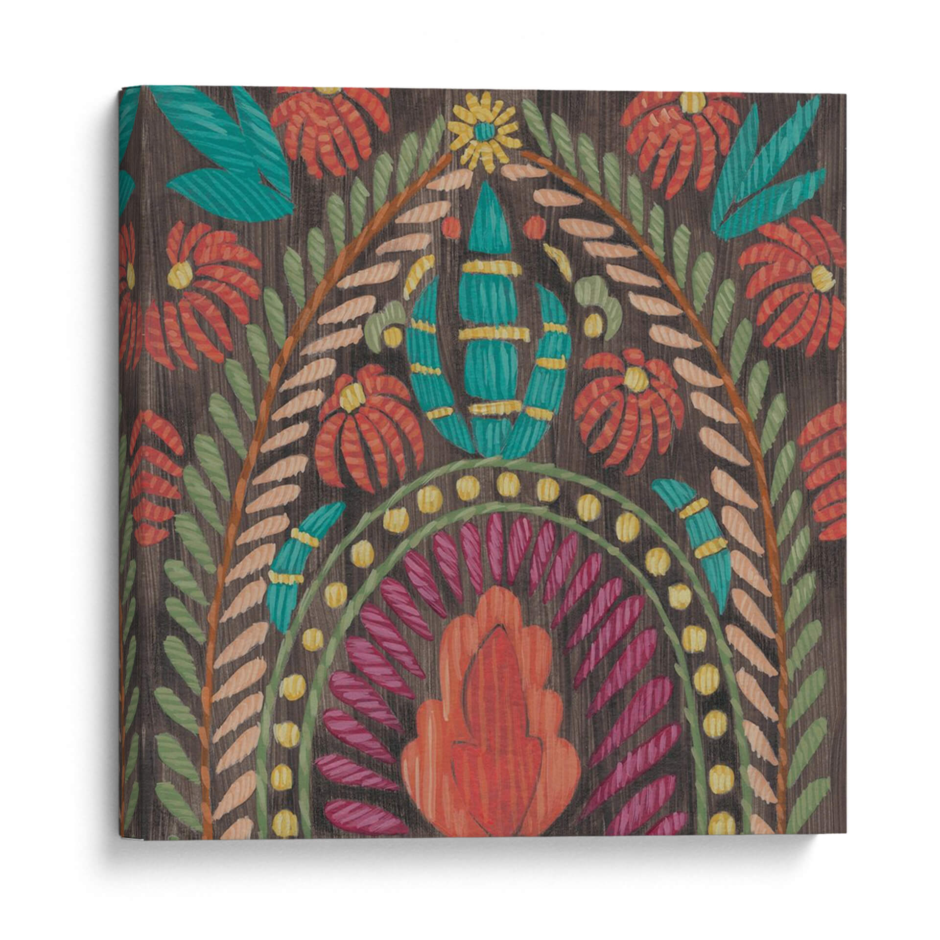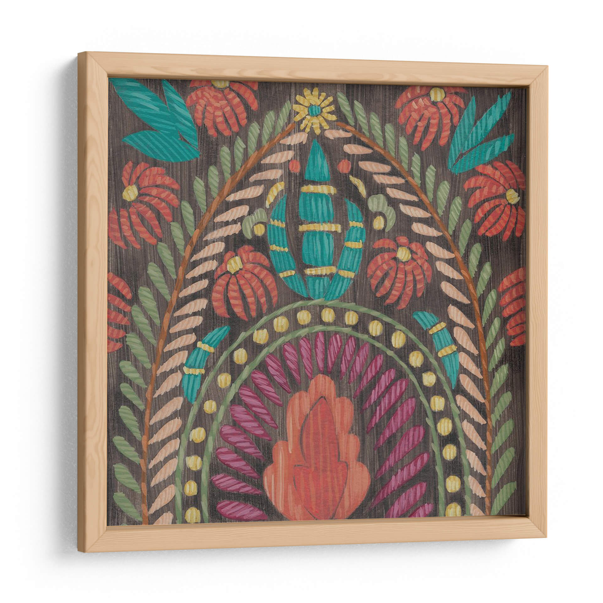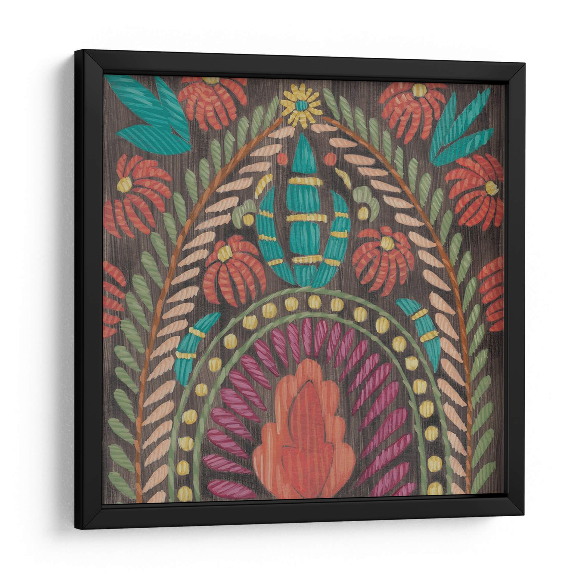 Sumérgete en la rica tapestry cultural de "Folklore Iv", una obra de arte digital que evoca la esencia de las tradiciones y la artesanía. Los vibrantes motivos florales y geométricos se despliegan sobre un fondo oscuro y texturizado que recuerda a la madera, creando un contraste visual cautivador. La paleta de colores, dominada por intensos naranjas, rojos, verdes y toques de turquesa y amarillo, aporta una vitalidad única a la pieza, sugiriendo una celebración de la vida y la naturaleza. El estilo de Chariklia Zarris, con sus trazos distintivos y una composición simétrica que recuerda a mandalas o motivos folclóricos, invita a la contemplación y al aprecio por los detalles. Este cuadro decorativo es ideal para añadir un punto de interés étnico o bohemio a cualquier espacio, ya sea una sala de estar, un comedor o un estudio. Su diseño intrincado y su atmósfera alegre lo convierten en una pieza versátil, perfecta para quienes buscan infundir carácter y calidez en su decoración. Descubre la magia del folklore a través del arte contemporáneo y transforma tu hogar con esta expresión artística única.