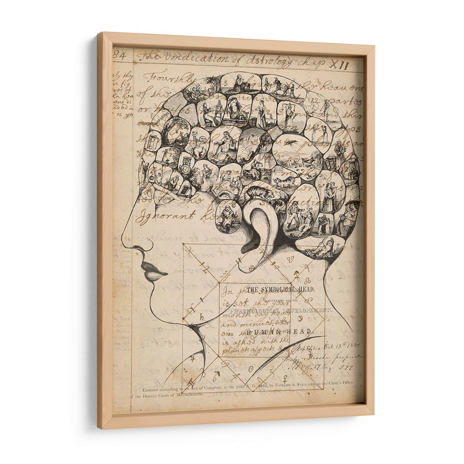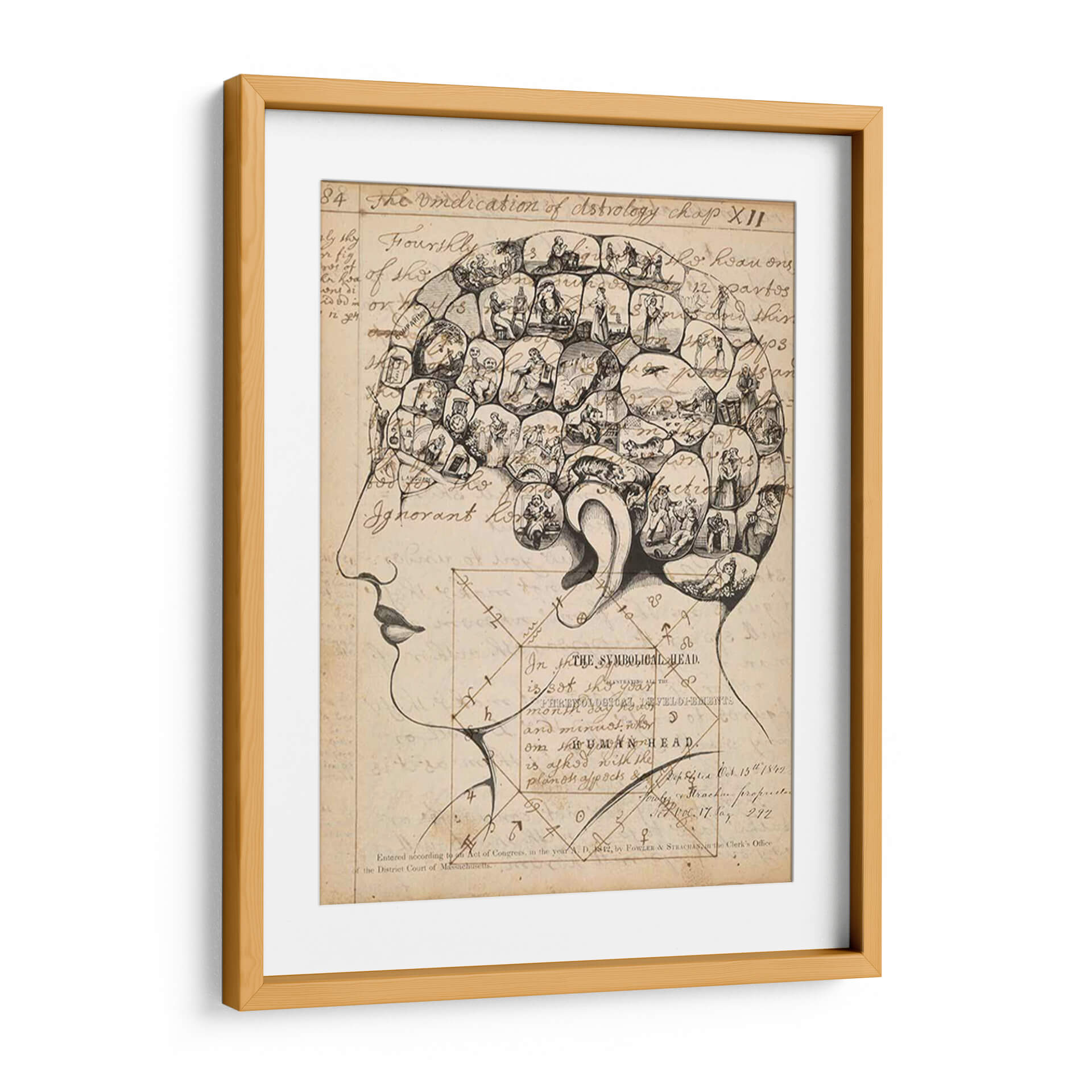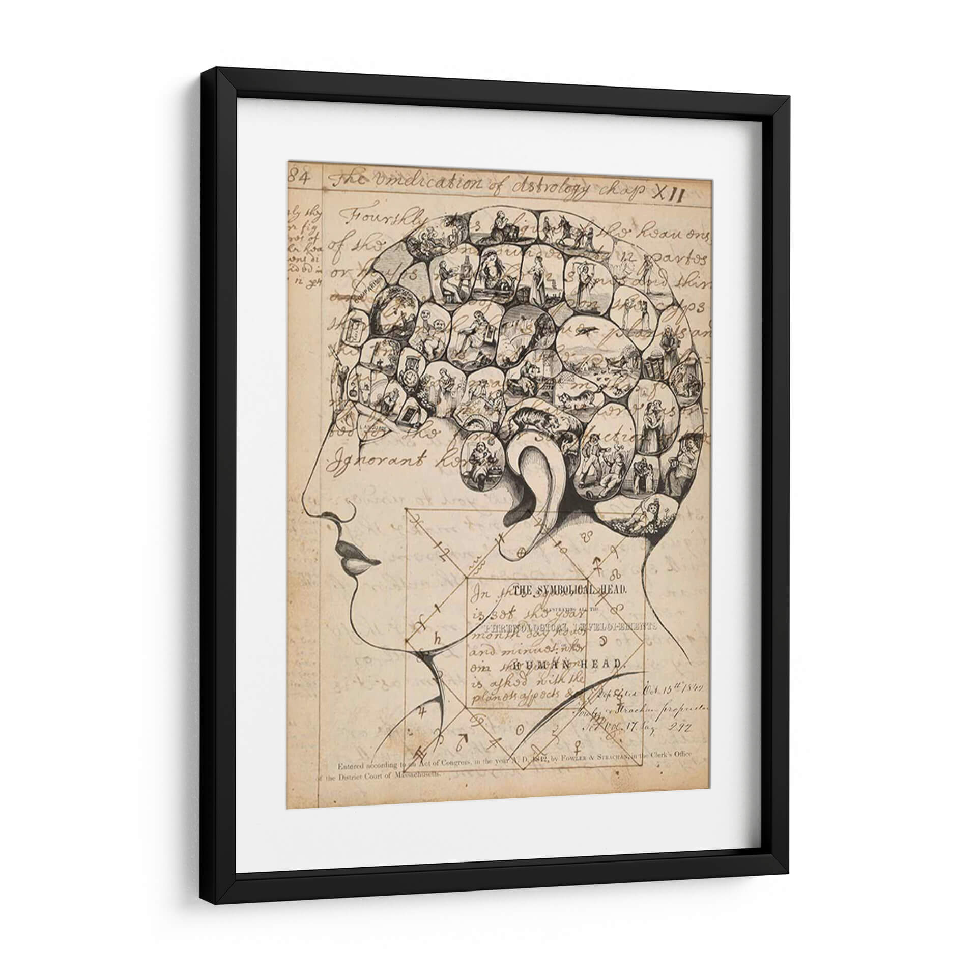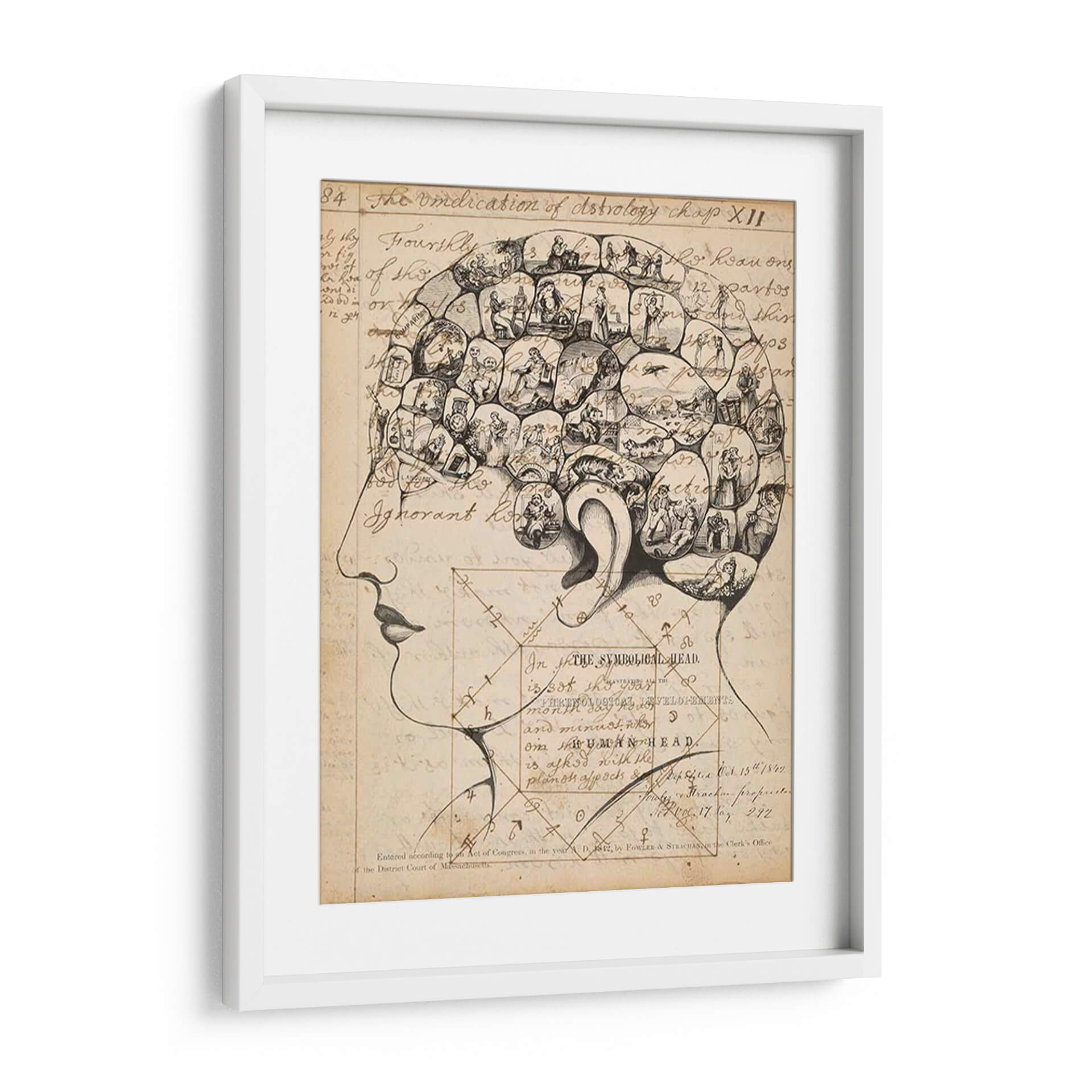 Adéntrate en el fascinante mundo de la frenología con esta cautivadora obra de arte, titulada "Footes De Frenología" del artista Jennifer Goldberger. Este cuadro decorativo es una representación intrincada de la cabeza humana, dividida en secciones que albergan pequeñas escenas y figuras detalladas. La paleta de colores se centra en tonos sepia y beige, evocando una sensación de antigüedad y misterio, similar a los grabados históricos. El estilo, reminiscentes de ilustraciones científicas del siglo XIX, combina el dibujo lineal con elementos de grabado para crear una textura visual rica. La composición, que detalla la silueta de un perfil humano, invita a la contemplación de la mente y sus complejidades. Esta pieza es ideal para quienes buscan un arte con profundidad intelectual y un toque vintage para su estudio, biblioteca u oficina, añadiendo un elemento de conversación y erudición a cualquier espacio. Es una pieza única que desafía la percepción y estimula la imaginación, perfecta para decorar con originalidad.