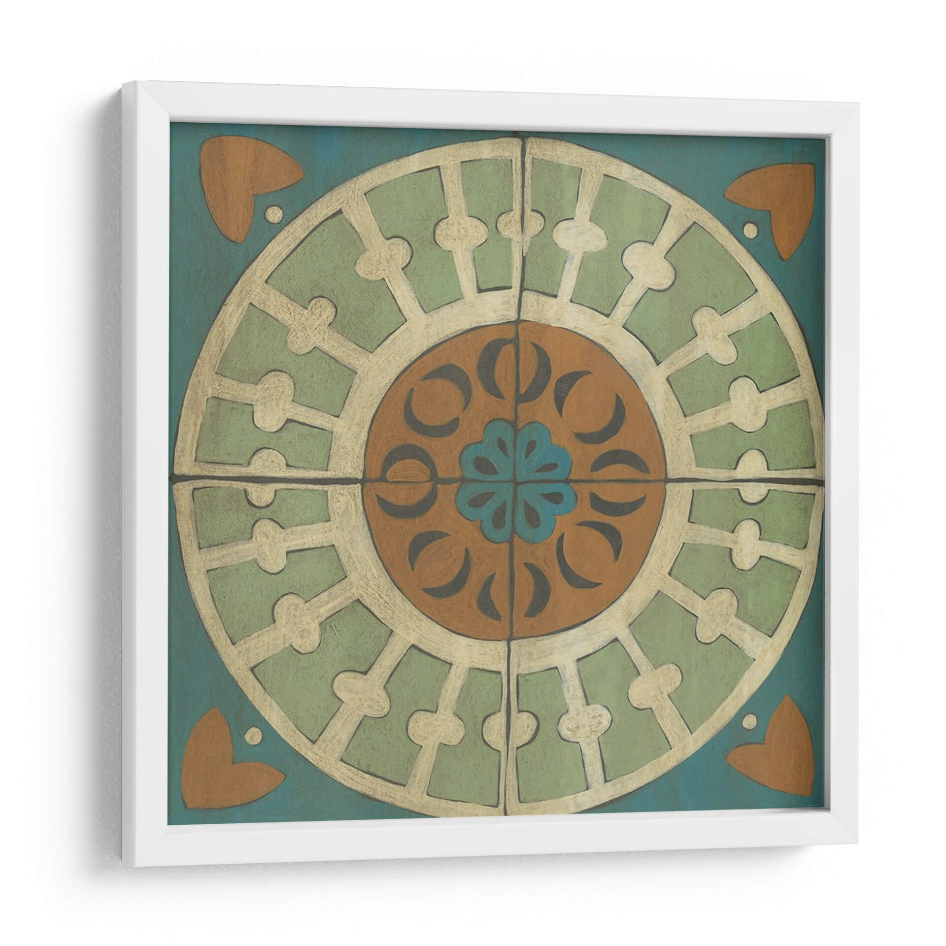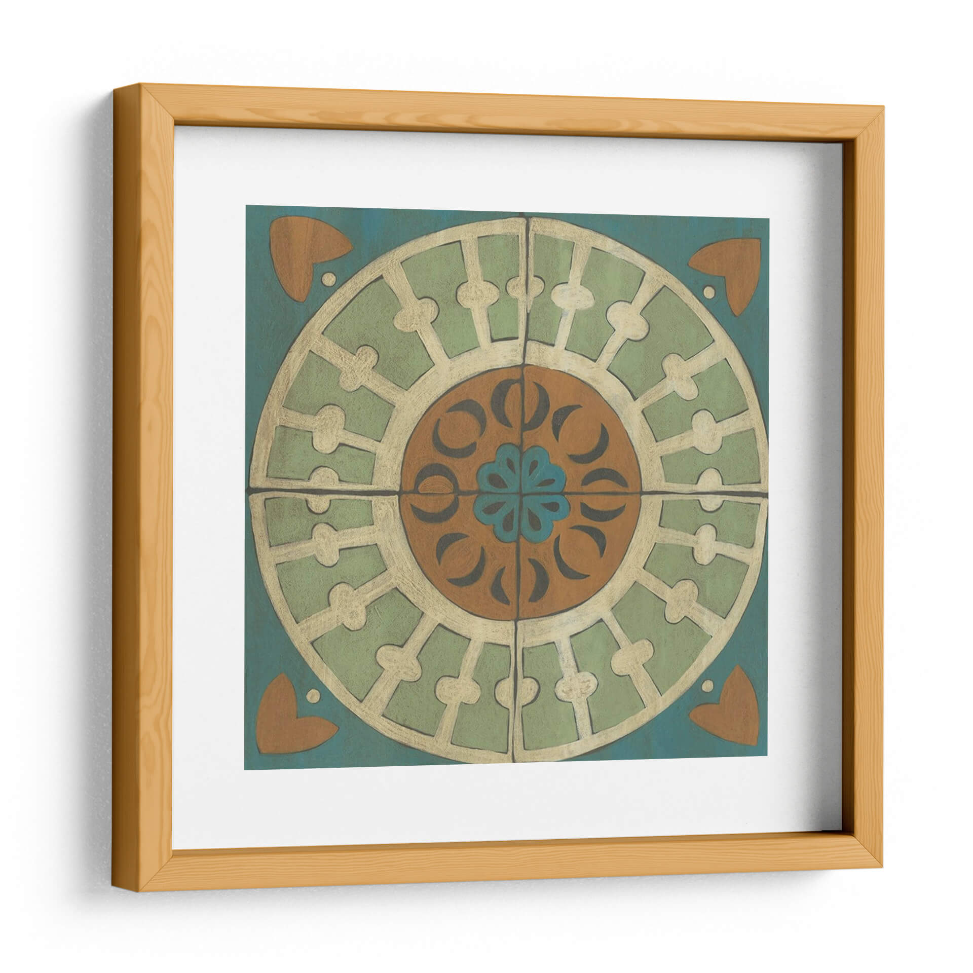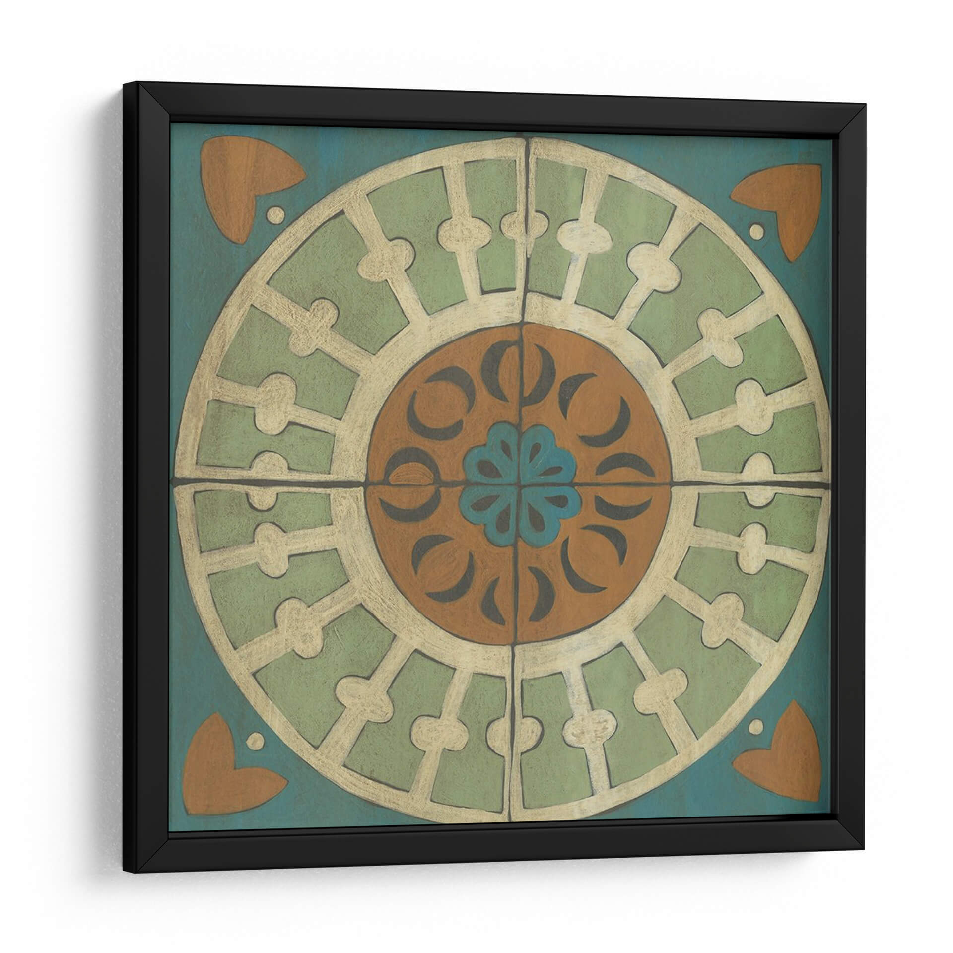 Sumérgete en la elegancia atemporal del cuadro decorativo "Fraser Tile Ix" de Chariklia Zarris. Esta obra maestra visual te transporta a un mundo de patrones geométricos intrincados y una paleta de colores serena que evoca calma y sofisticación. Los tonos verdes musgo, terracota cálido y azul turquesa se entrelazan armoniosamente, creando una composición que recuerda a los azulejos artesanales y los mandalas meditativos. El diseño central, con sus delicadas formas florales y motivos curvos, invita a la contemplación, mientras que los elementos circundantes añaden una sensación de orden y simetría. La textura sutil y el acabado ligeramente desgastado de la obra sugieren una profundidad histórica y un encanto artesanal. "Fraser Tile Ix" es la pieza perfecta para infundir serenidad y un toque artístico distintivo en cualquier espacio, ya sea una sala de estar moderna, un comedor acogedor o un rincón de lectura tranquilo. Su diseño versátil lo convierte en un punto focal que complementa una variedad de estilos decorativos, desde el bohemio hasta el contemporáneo. Añade esta obra de arte única a tu colección y transforma tu hogar en un santuario de belleza y expresión personal, inspirando paz y armonía en tu día a día.