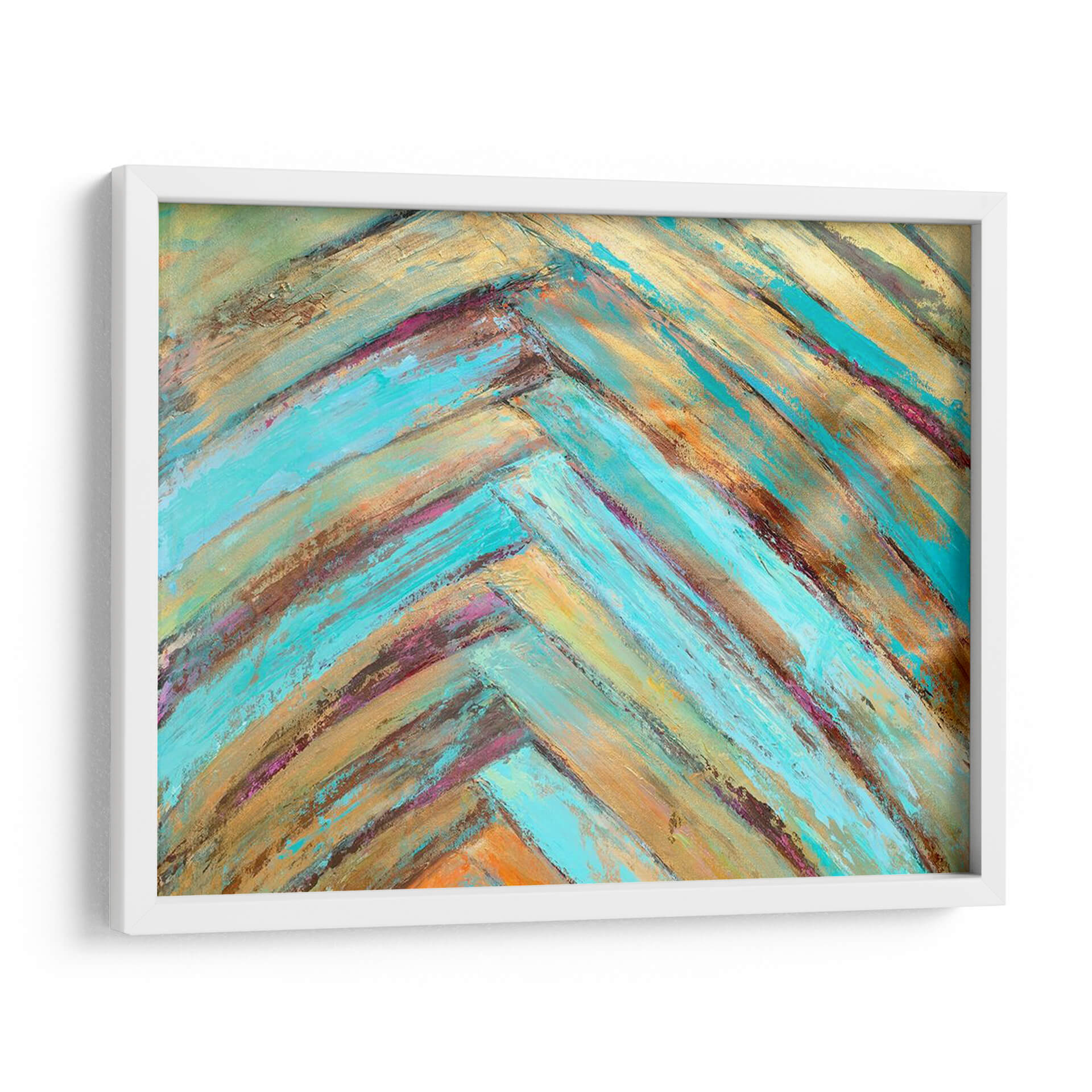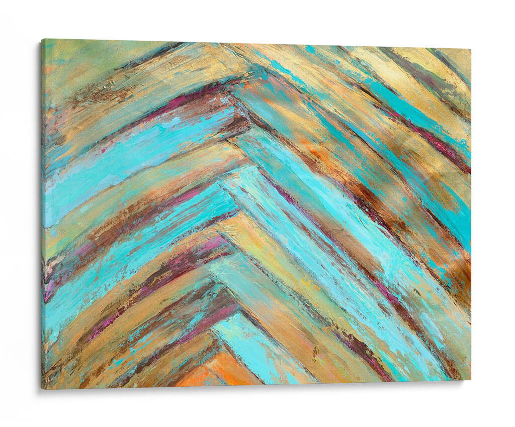 Sumérgete en la vibrante energía de 'Frondas Locas Diptych I', una obra abstracta de Suzanne Wilkins que captura la esencia del movimiento y el color. Este cuadro decorativo presenta una composición dinámica de pinceladas audaces, dispuestas en un patrón que evoca la calidez de la madera o las vetas de las hojas. La paleta de colores, una cautivadora mezcla de turquesas intensos, dorados relucientes, marrones terrosos y sutiles toques de magenta y naranja, crea una atmósfera de vitalidad y sofisticación. Cada trazo de pincel, aplicado con textura y profundidad, invita a la contemplación, ofreciendo una experiencia visual rica y envolvente. Ideal para espacios que buscan un toque de arte contemporáneo y personalidad, 'Frondas Locas Diptych I' es perfecto para salas de estar modernas, oficinas o cualquier lugar donde se desee infundir un sentido de creatividad y optimismo. Transforma tu pared con esta pieza única que combina la abstracción con una conexión palpable a la naturaleza y la textura.