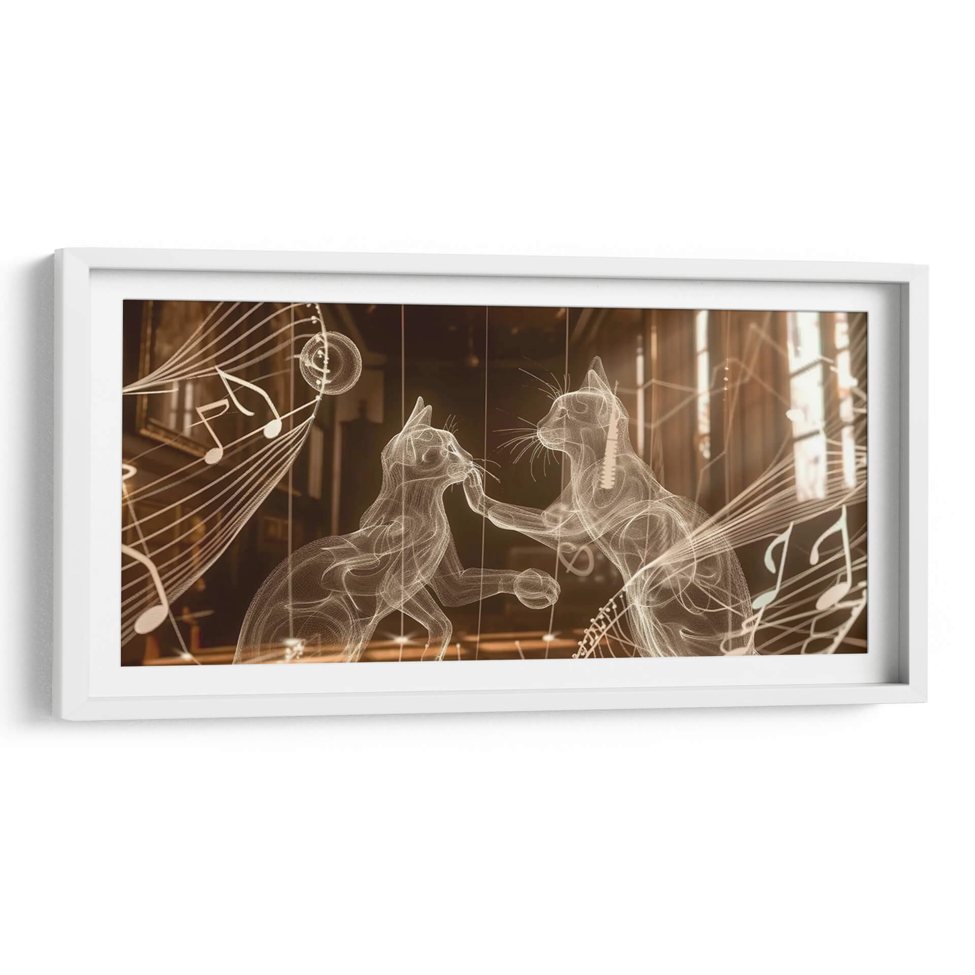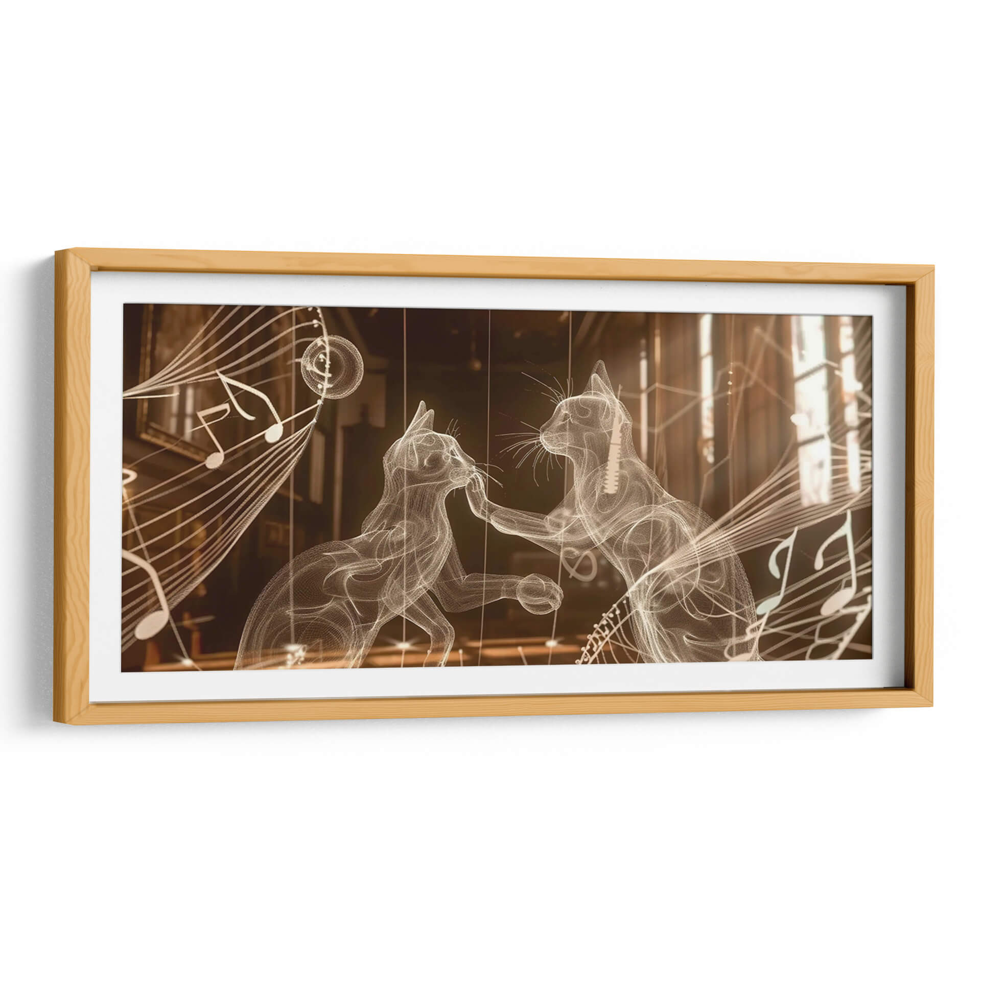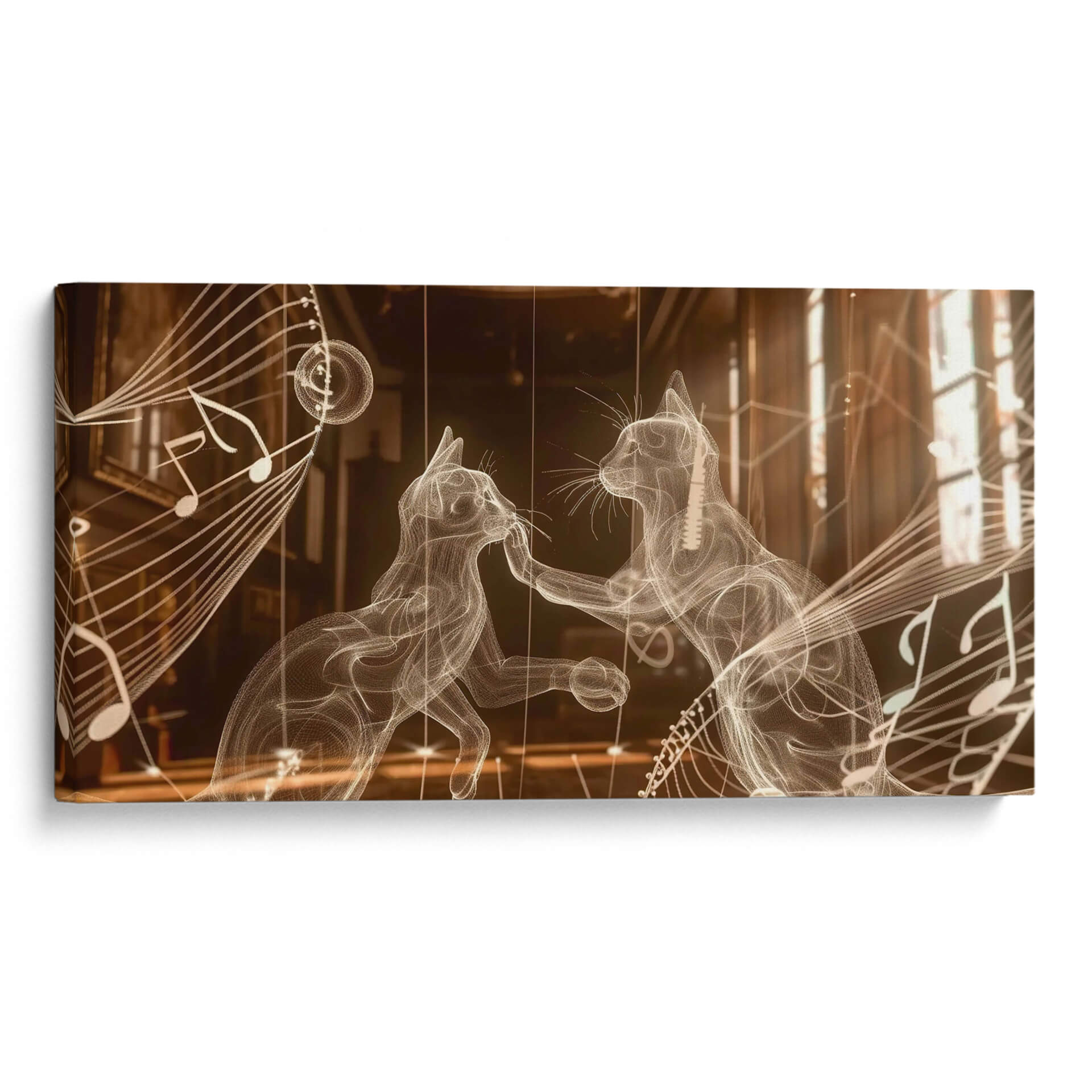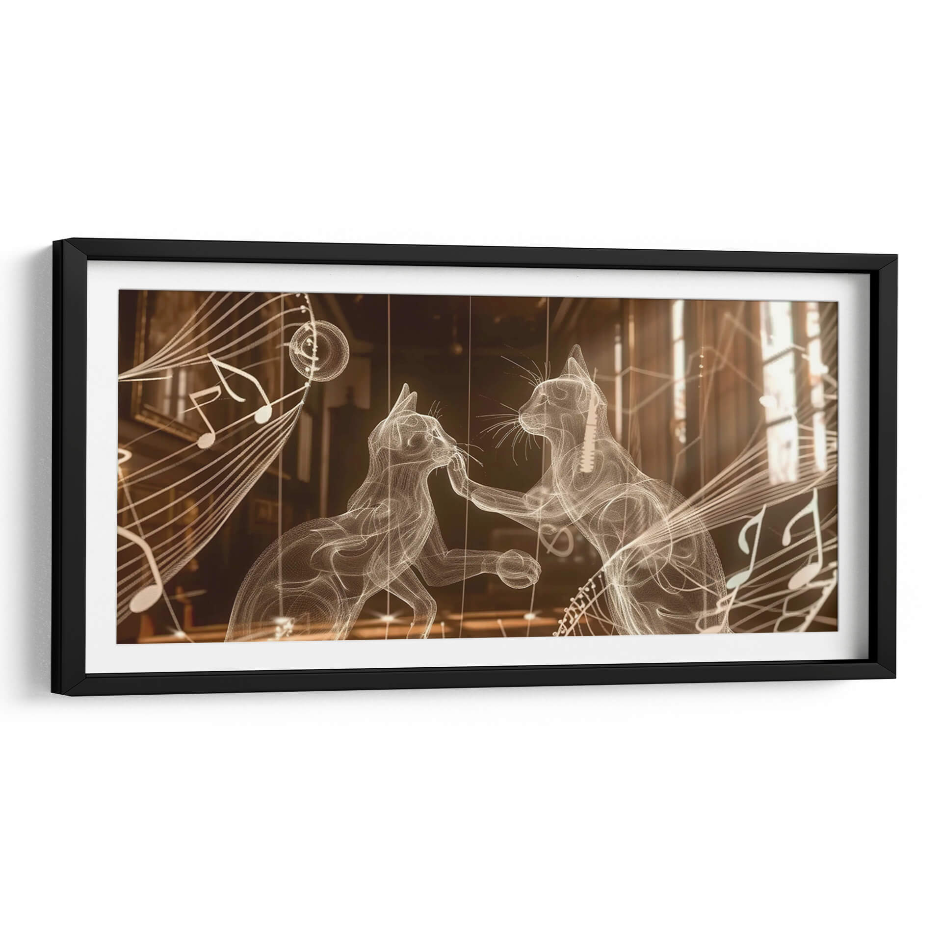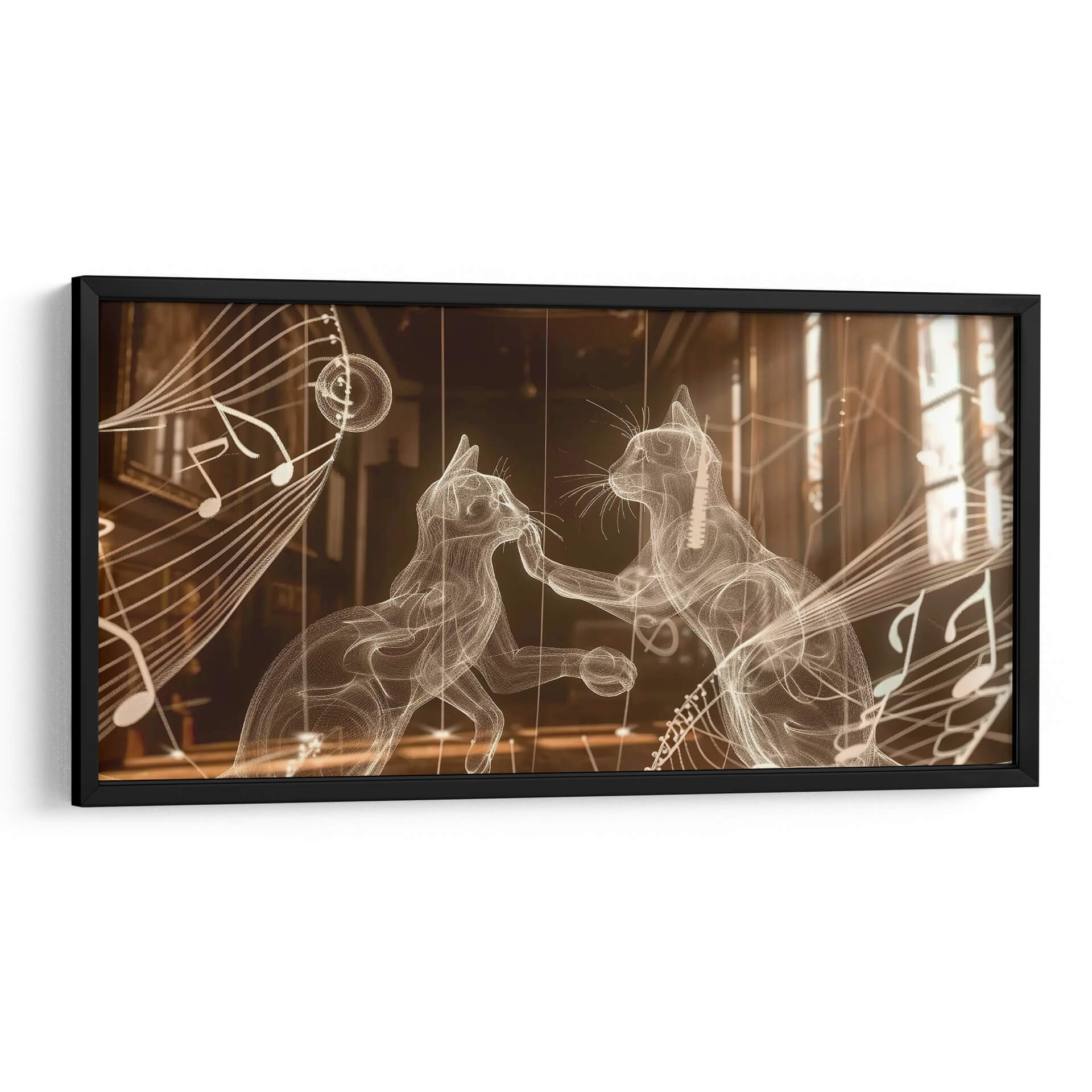 Sumérgete en la armonía visual de "Gatos y Música", una obra de arte contemporáneo que fusiona la elegancia felina con la efusividad de las notas musicales. Cecilia Flores crea una pieza hipnótica donde dos figuras de gatos, representadas con líneas etéreas y luminosas, parecen danzar al compás de una melodía invisible. La paleta de colores se centra en tonos cálidos y dorados, evocando una atmósfera íntima y acogedora, perfecta para añadir un toque de sofisticación y originalidad a tu hogar u oficina. Las líneas fluidas y el diseño delicado de las notas musicales integradas en la composición añaden un ritmo visual cautivador, haciendo de este cuadro decorativo un punto focal que invita a la contemplación. Ideal para amantes de los gatos, la música o simplemente aquellos que aprecian el arte moderno con un toque de fantasía. Este cuadro decorativo es una elección excepcional para quienes buscan infundir sus espacios con una sensación de calma creativa y un encanto singular, transformando cualquier habitación en una galería personal llena de encanto y serenidad.