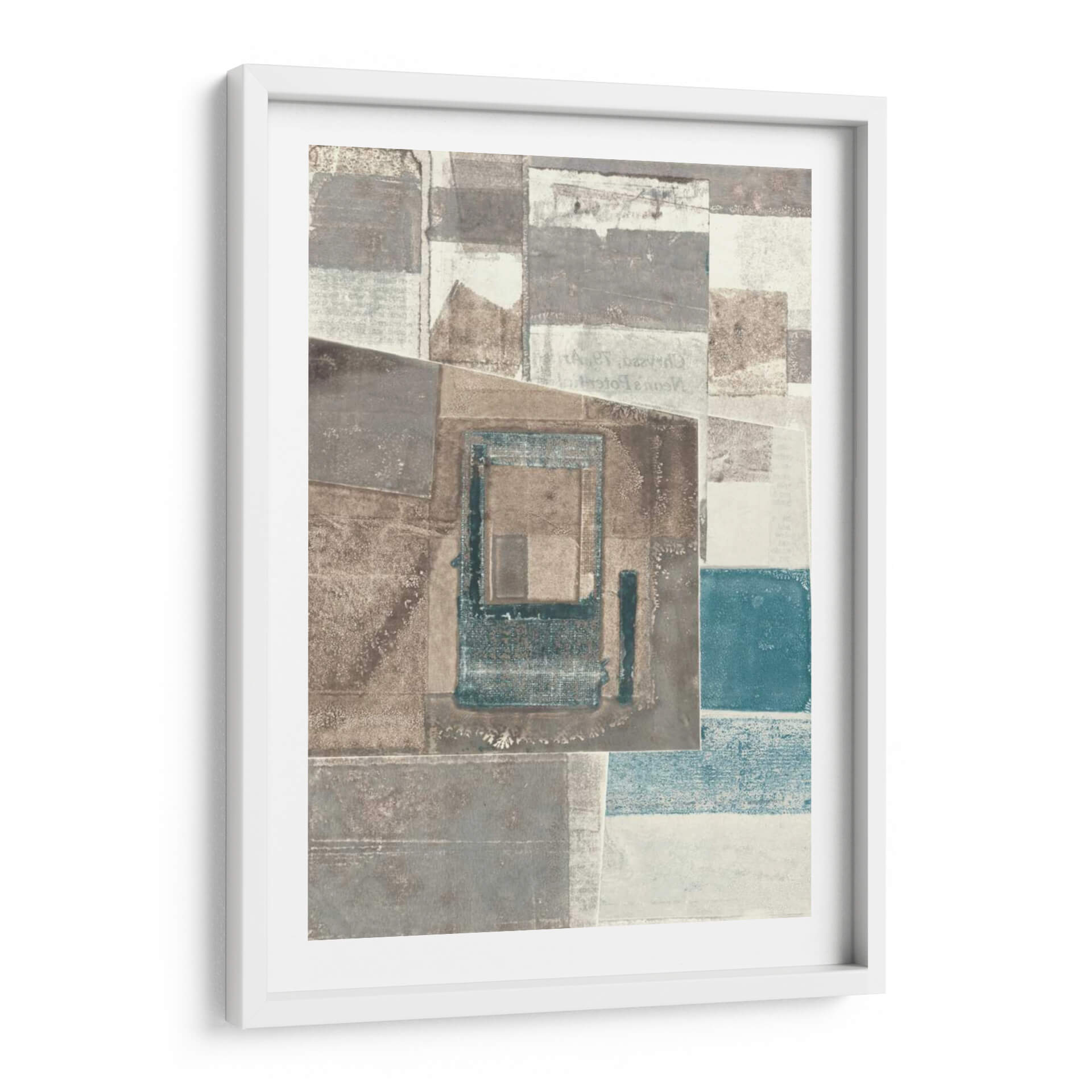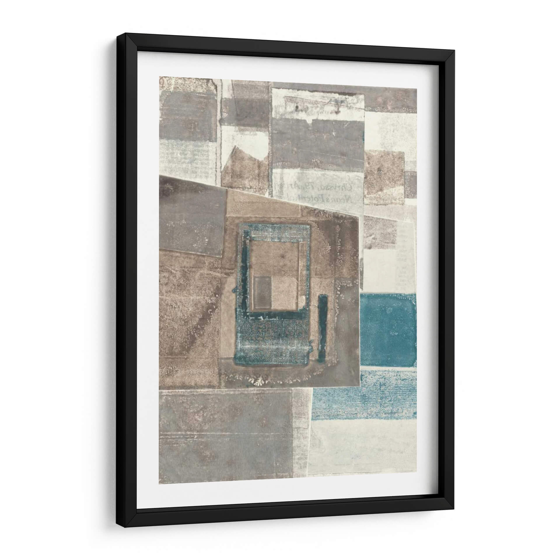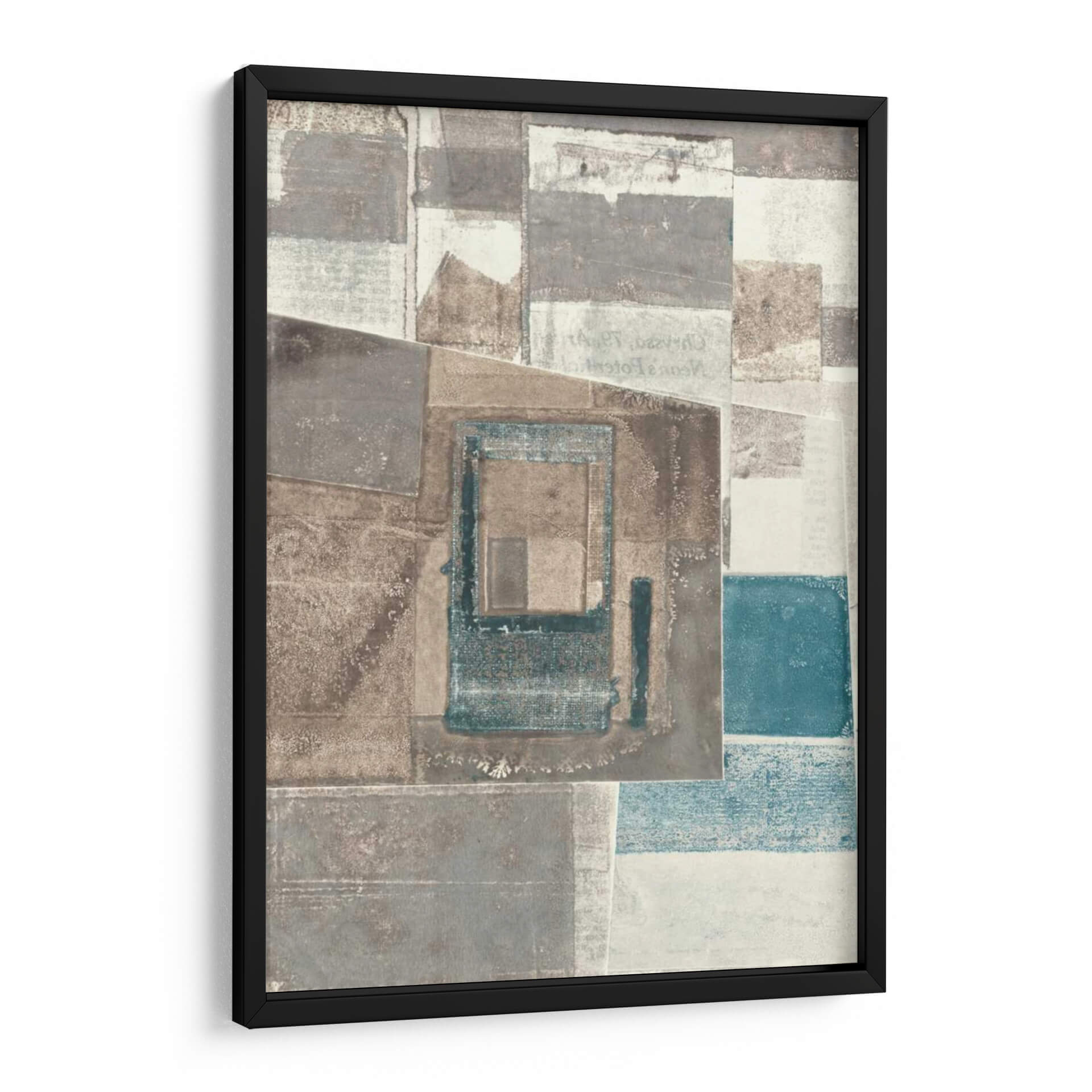 Sumérgete en la textura y la profundidad con este cautivador cuadro decorativo abstracto de Rob Delamater. La obra presenta una composición fascinante de formas geométricas superpuestas y texturas que evocan una sensación de capas de tiempo y memoria. Los tonos tierra, grises y sutiles acentos de azul verdoso se combinan para crear una atmósfera sofisticada y serena, perfecta para cualquier espacio moderno o contemporáneo. Los detalles sutiles, como lo que parecen ser fragmentos de texto o patrones desvanecidos, invitan a una contemplación más cercana, añadiendo un nivel de intriga a la pieza. Este cuadro abstracto es ideal para infundir carácter y elegancia a tu sala de estar, oficina o dormitorio, actuando como un punto focal que inspira tranquilidad y reflexión. Su diseño versátil se adapta a una variedad de esquemas de decoración, aportando un toque de arte refinado y contemporáneo que complementa tanto entornos minimalistas como espacios más audaces. Una elección perfecta para quienes aprecian el arte que combina la audacia geométrica con una paleta de colores armoniosa y evocadora.